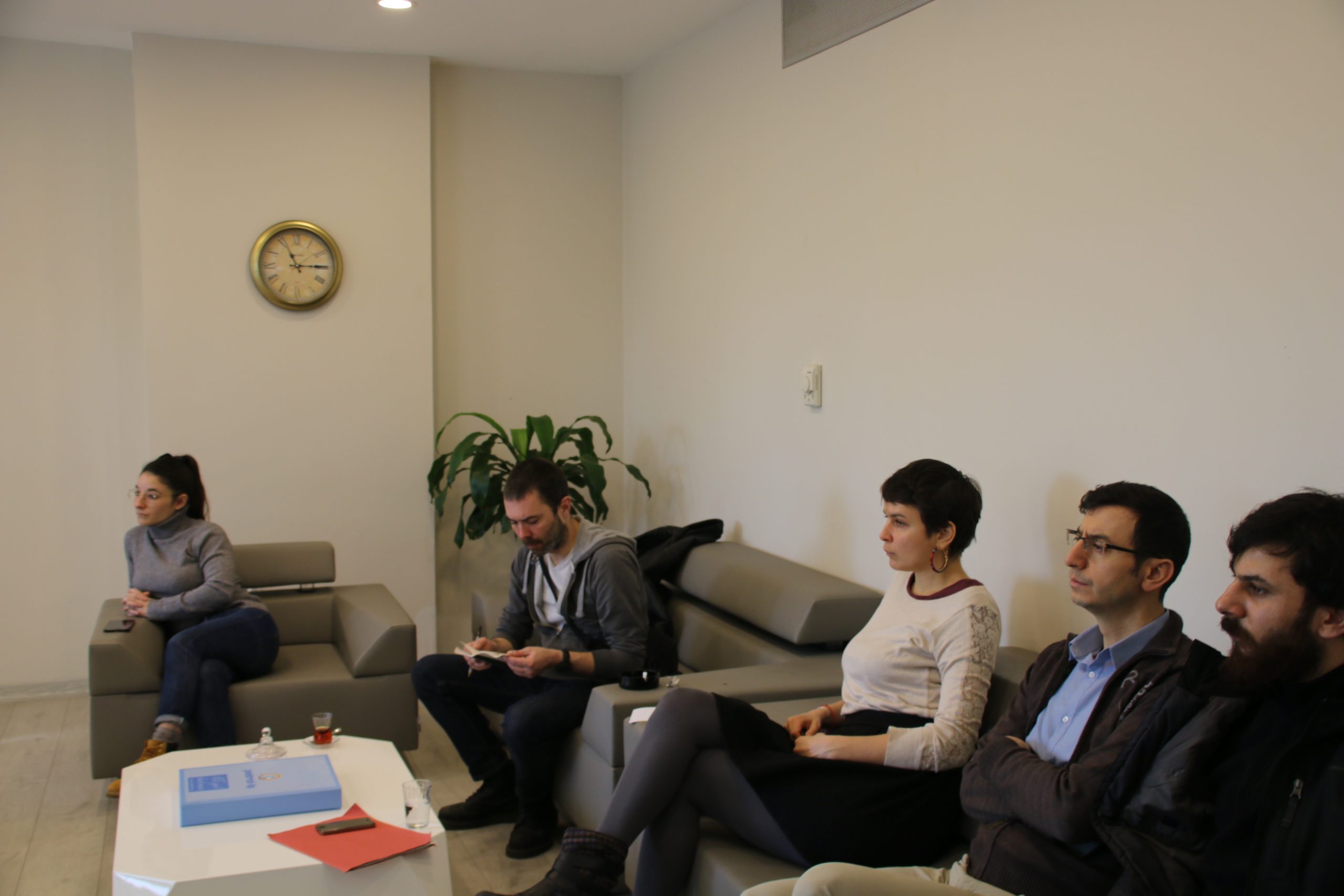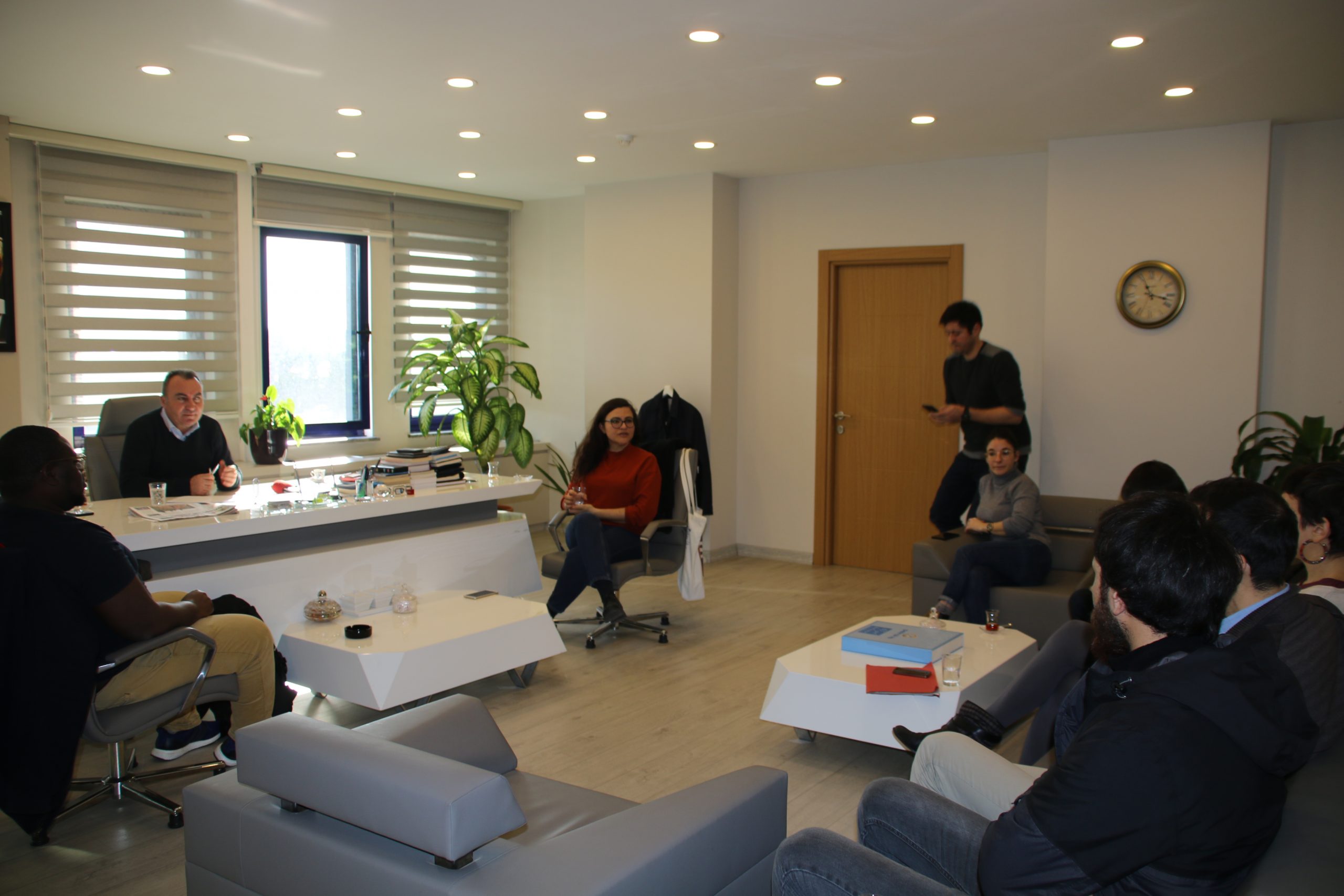 Fransa’dan gelen heyet, Türkiye’de bulunan Fransız gazeteci Alexandre Billette ile birlikte önce Petrol-İş Genel Merkezine geldiler. Burada Petrol-İş Sendikası Genel Mali Sekreteri Turgut Düşova ile Petrol-İş’in ;Yves Rocher/Flormar direnişi üzerine yaklaşık yarım saat süren bir röportaj yaptılar.