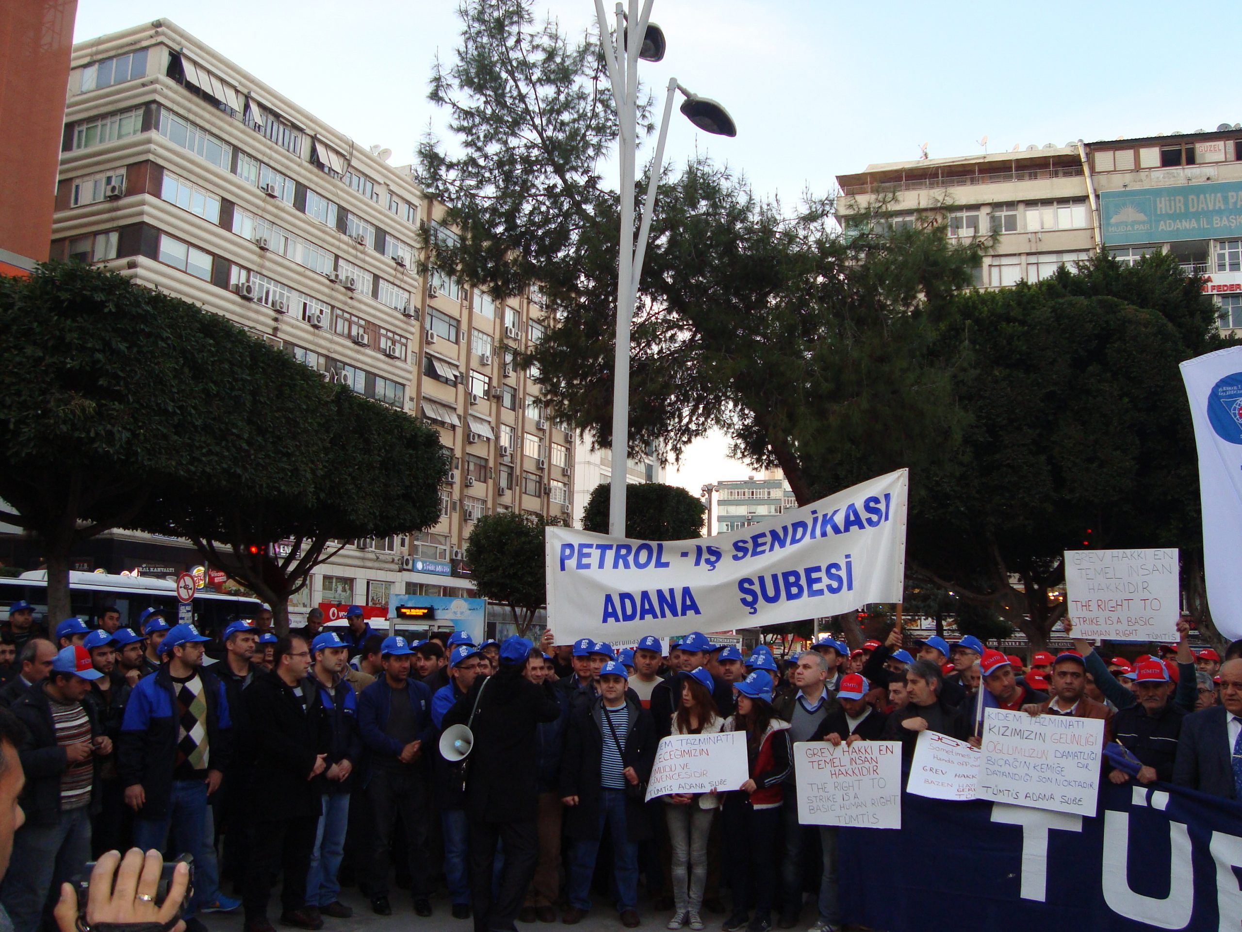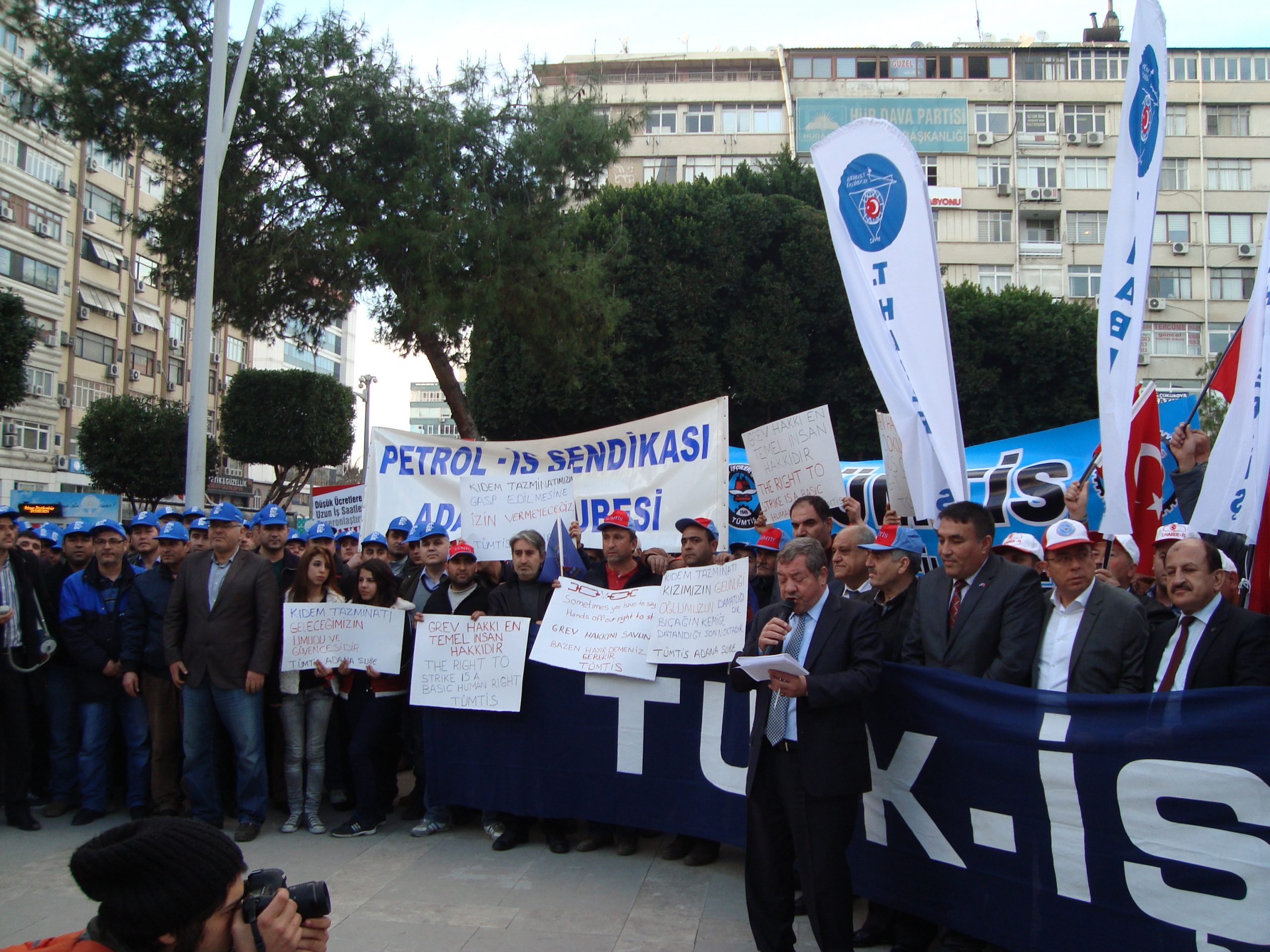 Eyleme, Türk-İş’e bağlı şubeler, diğer sivil toplum örgütleri ve Petrol-İş Sendikası Adana şubemiz katılarak destek verdi.