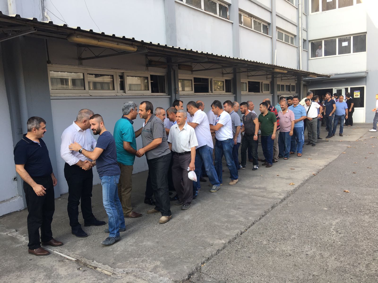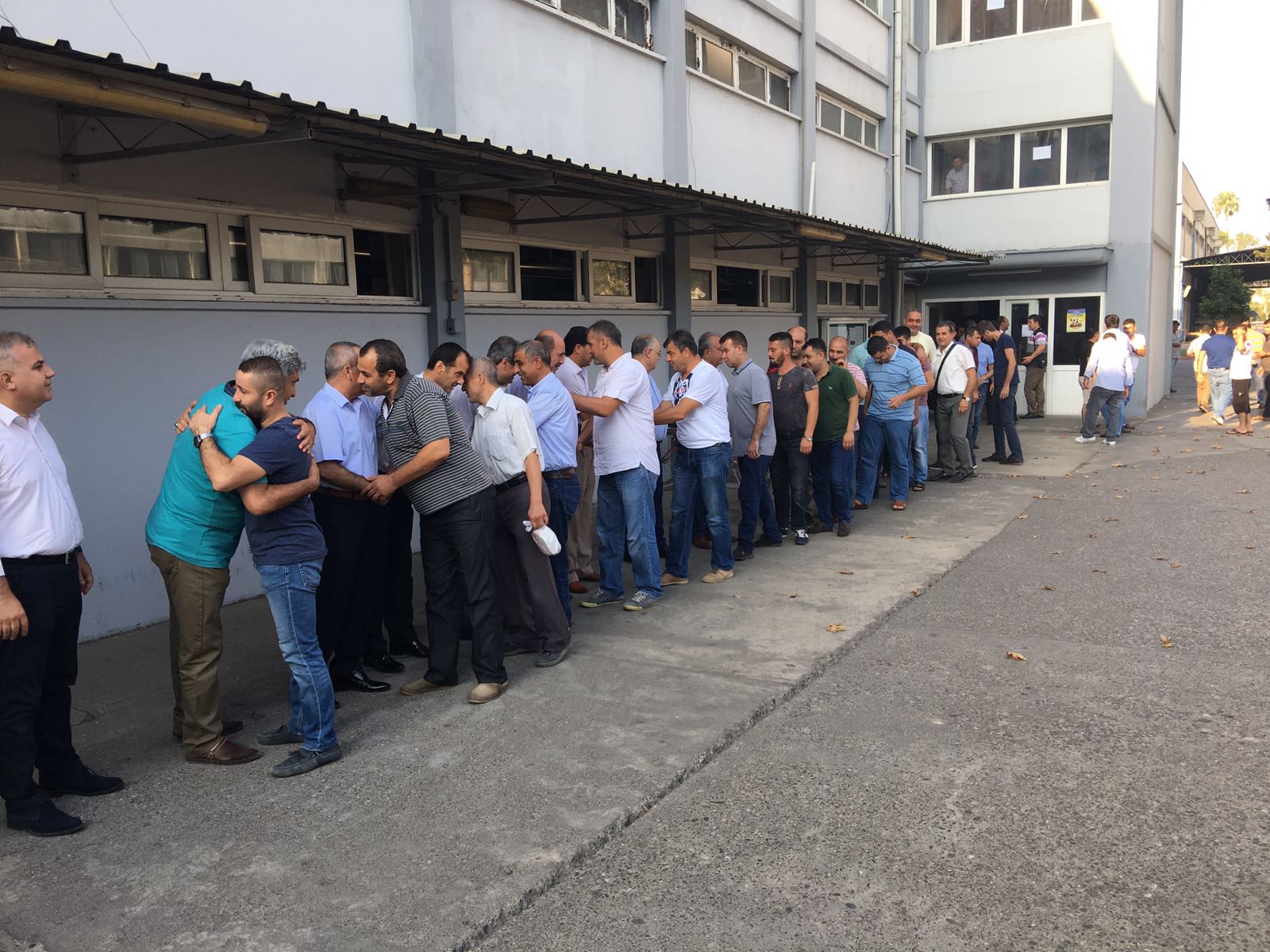 1 Eylül Cuma günü Adana Şubemize bağlı Sa-sa Polyester Sanayi A.Ş. işyerinde Genel Sekreterimiz Ahmet Kabaca, Şube Başkanmız Abdül Mecit Dönmez, Başkan Yardımcımız Cemalettin Çetinkıran, yöneticilerimiz ve işyeri temsilcilerimizin katılımı ile üyelerimizle bayram namazı kılınmasının ardından bayramlaşma merasimi yapıldı.