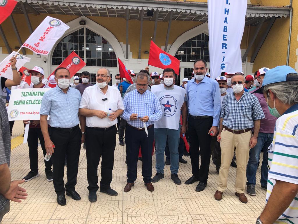 Adana Şubemiz, Türk-İş Adana Bölge Temsilciliği koordinatörlüğünde devam eden kıdem tazminatı eylemlerini sürdürüyor. Bugün, Türk-İş Bölge Temsilciliği ve Adana genelinde kurulu Türk-İş sendikalarının temsilcileri Gar Meydanı’nda biraraya gelerek “Kıdem Tazminatıma Dokunma” dedi. Türk-İş Bölge temsilcisi yaptığı basın açıklamasında kıdem tazminatı haklarına sahip çıkacaklarını bir kez daha yineledi.