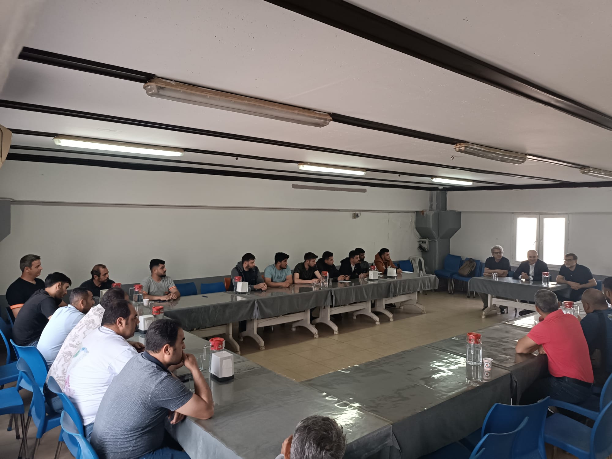 Eğitim programının birinci günü Ceyhan Botaş, BIL Botaş, Toros Tarım Sanayi A.Ş. işyerlerinde Genel Mali Sekreterimiz Mehmet Kaya, Adana Şube Başkanımız Bülent Kılıççıoğlu, Adana Şube Başkan Yardımcılarımız Kemal Bacı ve Muhittin B. Ağca (Mali) ile bu işyerlerinin temsilci, yönetici ve üyelerimizin katılımı ile yapıldı.