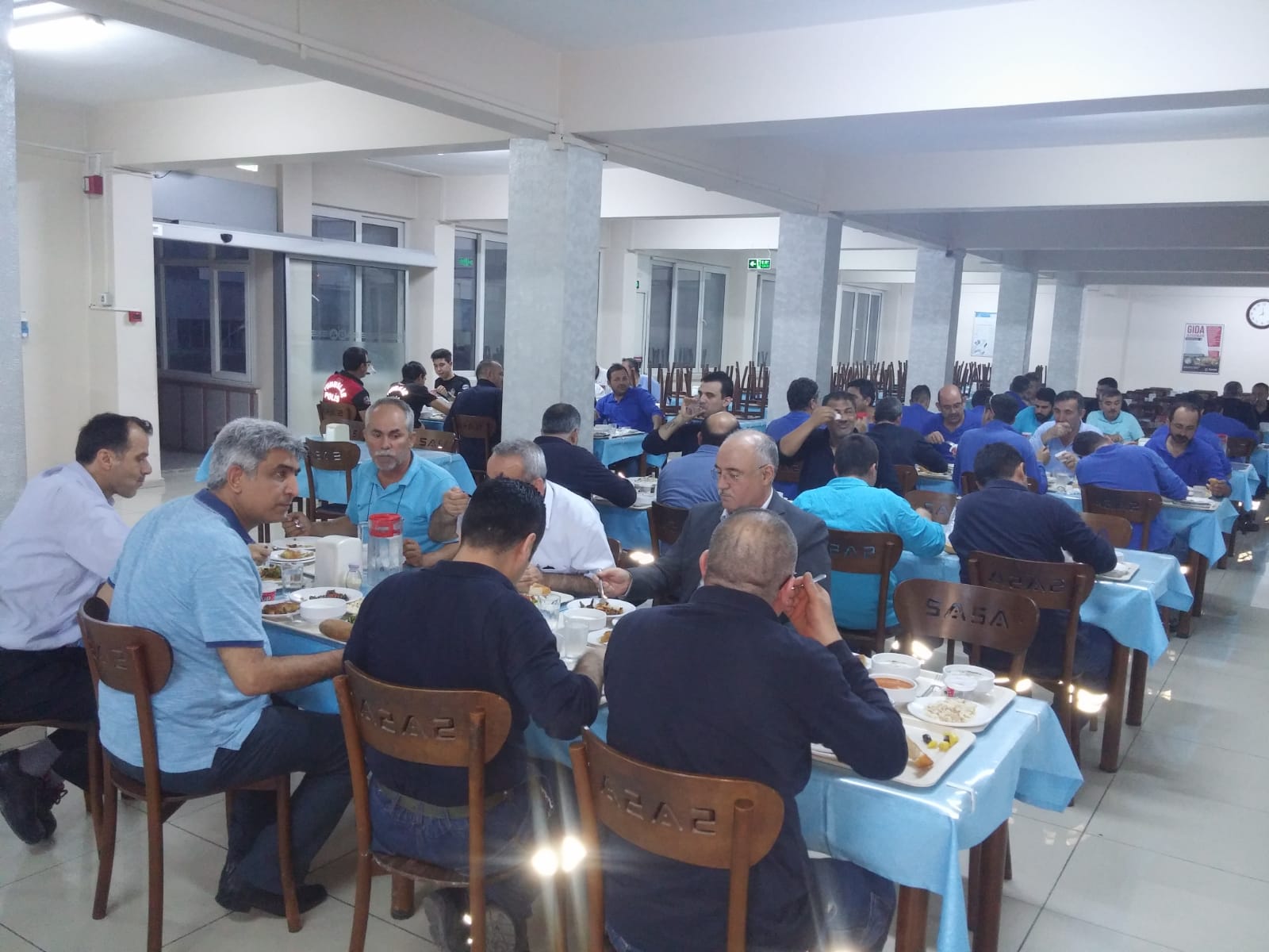 21 Mayıs Pazartesi günü Adana Şube Başkanımız Abdülmecit Dönmez ve Şube Yöneticilerimiz Adana Şubemize bağlı Sasa Polyester Sanayi A.Ş. işyeri B grubu vardiyasını ziyaret ederek üyelerimizle iftar yaptılar.
