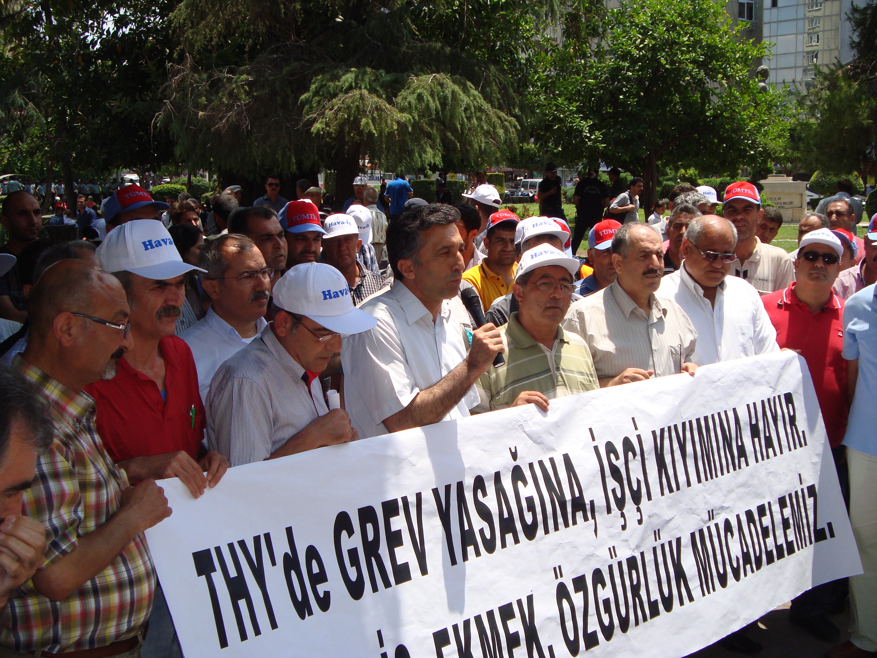 Adana Şubemiz 9 Haziran Cumartesi günü Türk Hava Yollarındaki greve destek ve sonrasındaki işten çıkarılmaları protesto etmek amacıyla Hava-İş’in düzenlemiş olduğu, Türk-İş ve diğer sivil toplum örgütlerinin de katıldığı Adana İnönü Parkında yapılan basın açıklamasına, destek verdi.