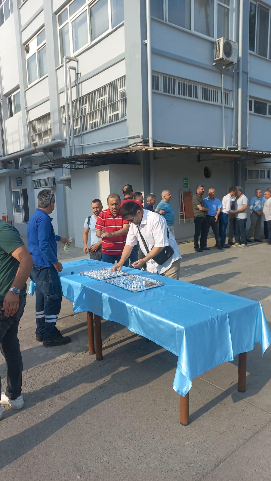 Kurban Bayramının ilk günü üyelerimizle kılınan bayram namazı sonrasında, Adana Şubemize bağlı SASA Polyester Sanayi A.Ş. işyerinde, Adana Şube Başkanımız Abdul Mecit Dönmez, Şube Başkan Yardımcımız Cemalettin Çetinkıran ve işyeri temsilci, yöneticilerimizin katılımıyla üyelerimizle bayramlaşma merasimi yapıldı.