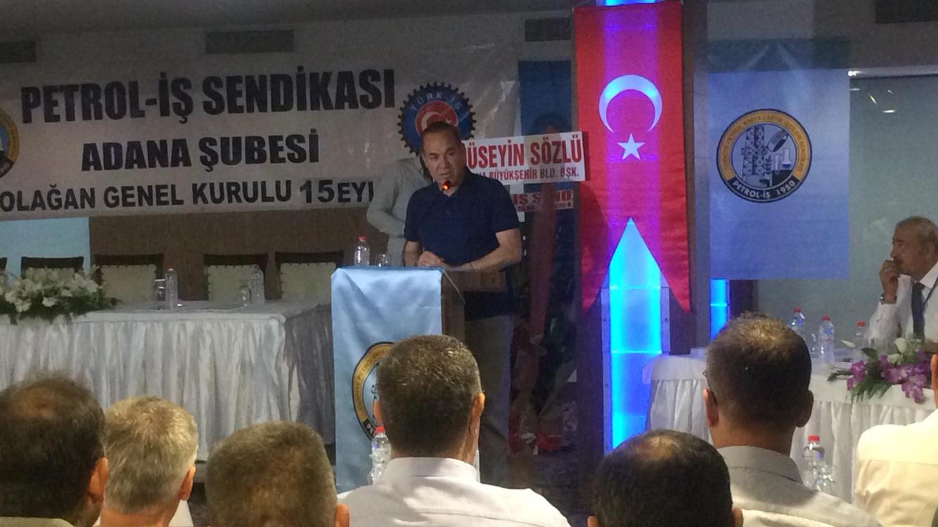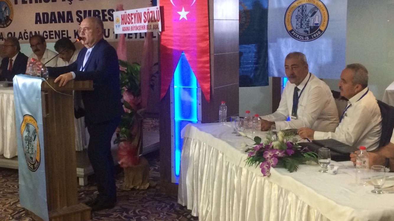 Adana Şube Olağan Genel Kurulu’na Petrol-İş Merkez Yönetim Kurulu üyeleri, Büyükşehir Belediye Başkanı Hüseyin Sözlü, Türk-İş Bölge Temsilcisi Edip Gülnar ve Türk-İş’e bağlı Sendikaların Adana Şube Başkanları, Denetim ve Disiplin Kurulu üyeleri, şube başkanları, şube yöneticileri, şubemizin örgütlü olduğu işyerlerinden temsilciler ve üyelerimiz de katıldı.
