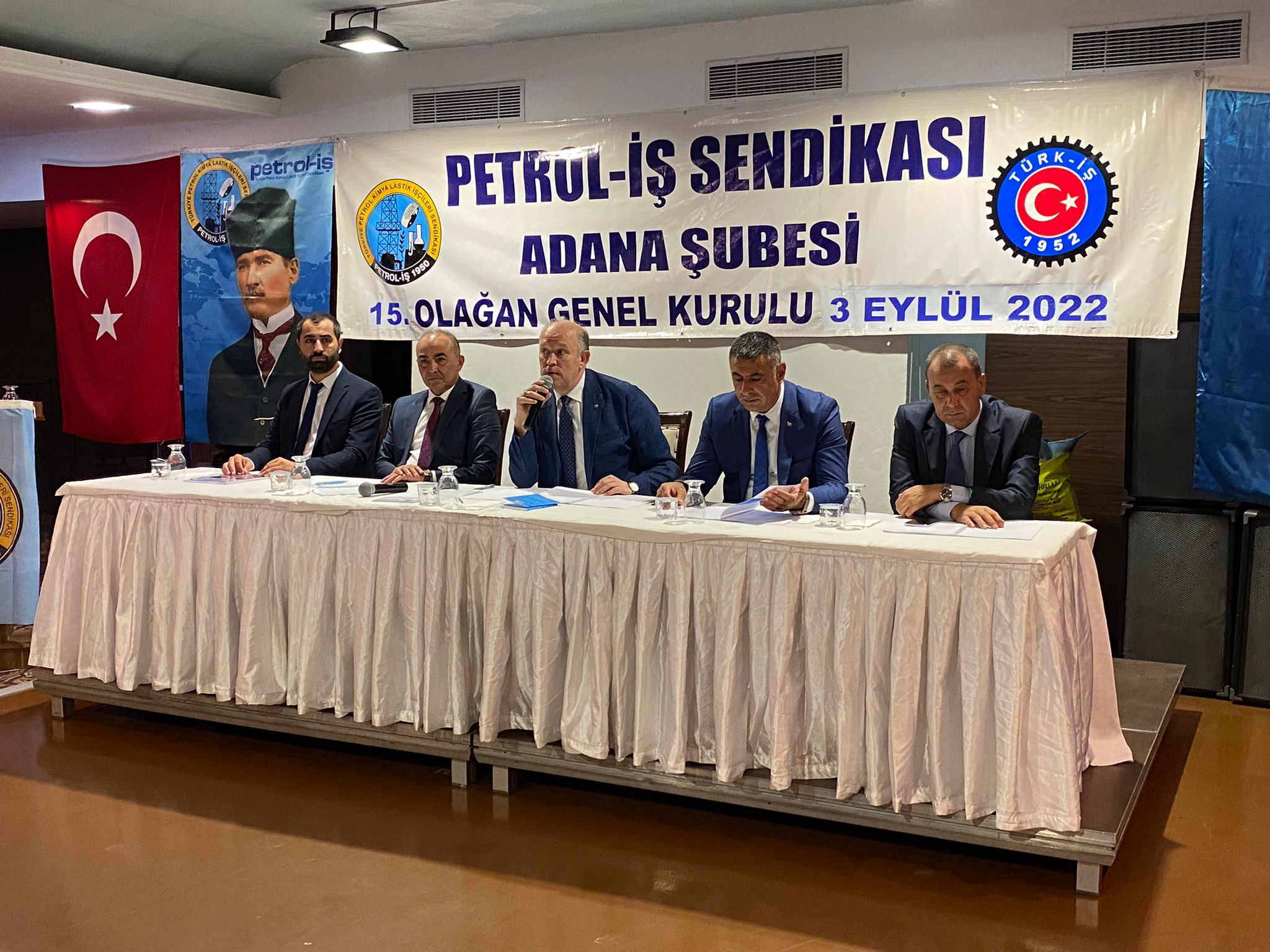Adana Şubemizin 15. Olağan Genel Kurulu 3 Eylül 2022 tarihinde Adana Büyük Sürmeli Oteli’nde yapıldı. Genel Kurula Genel Merkez Yöneticilerimiz, sendikamız şube başkanları ve yöneticileri, Türk-İş Bölge Temsilcisi Edip Gülnar, Türk-İş’e bağlı sendikaların temsilcileri, Kamu-Sen’e bağlı sendikaların şubeleri ile şubemize bağlı işyerlerinden delegelerin yanı sıra üyelerimiz katıldı.