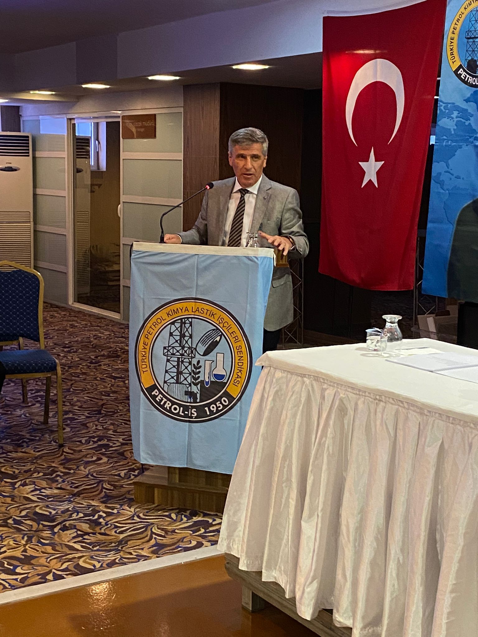 Divanın oluşmasının ardından Genel Başkanımız Süleyman Akyüz konuşmasını yapmak üzere kürsüye davet edildi. Genel Başkanımız konuşmasında Türkiye ve emek gündemine dair değerlendirmelerde bulunduktan sonra kongrenin Petrol-İş Sendikasına ve Türkiye işçi sınıfına hayırlı olmasını diledi.