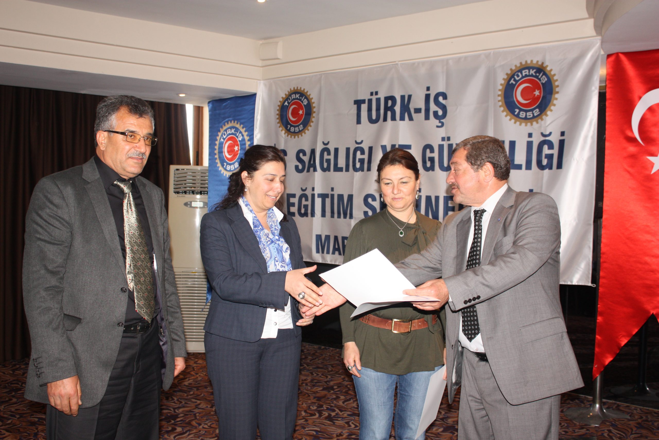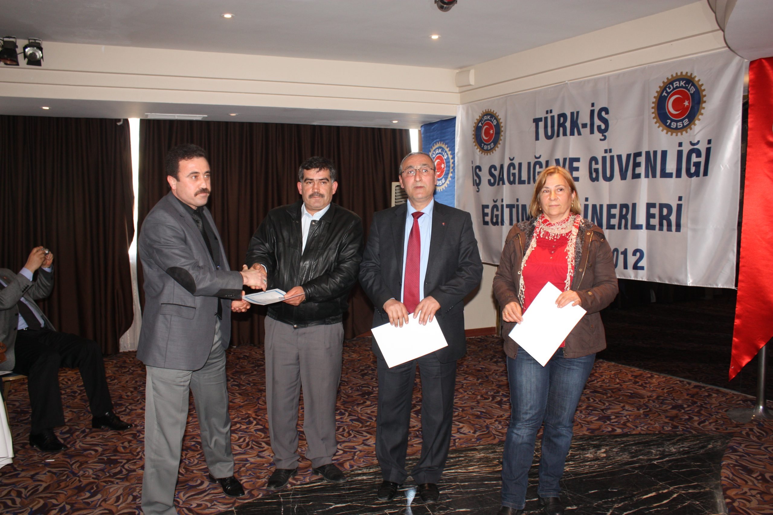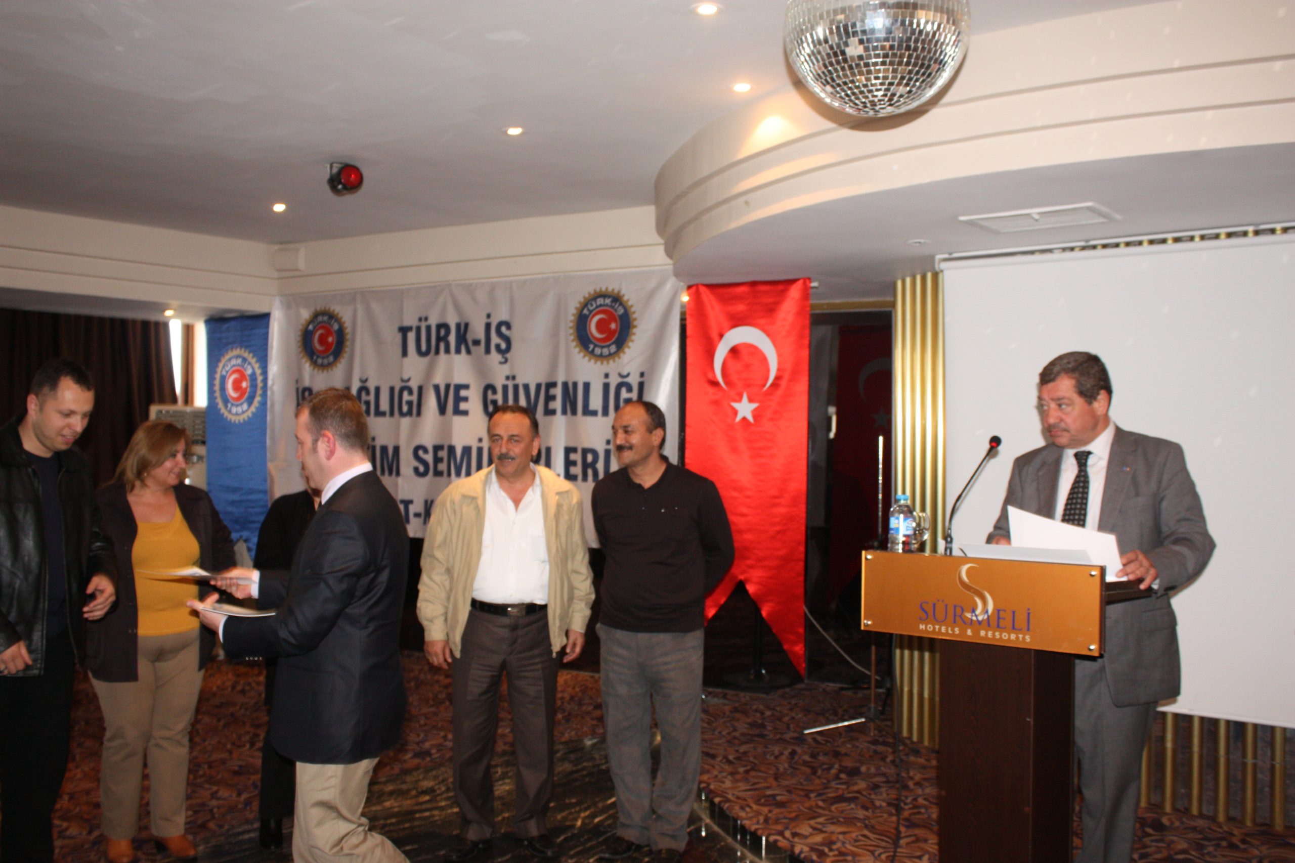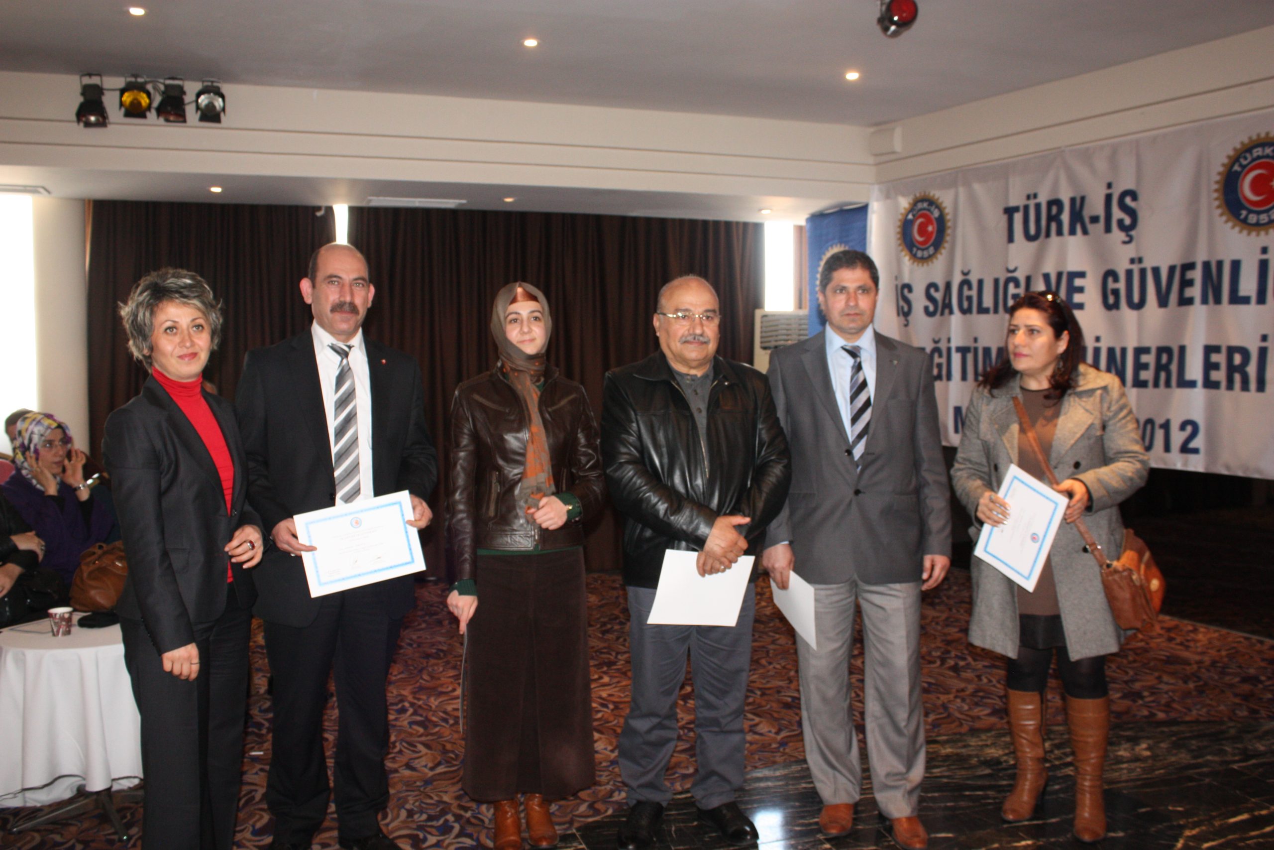 Türk-İş ‘in 8-9 Mart 2012 tarihlerinde Adana’da düzenlemiş olduğu İşçi Sağlığı ve İş Güvenliği Eğitim Seminerine Adana Şubemize bağlı iş yerlerinden temsilci ve yöneticiler katıldılar. Seminer sonunda katılımcılara sertifika töreni düzenlendi.