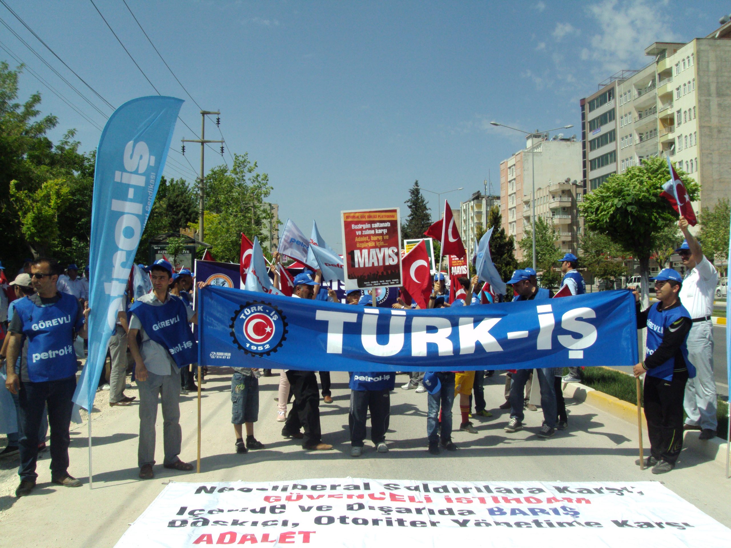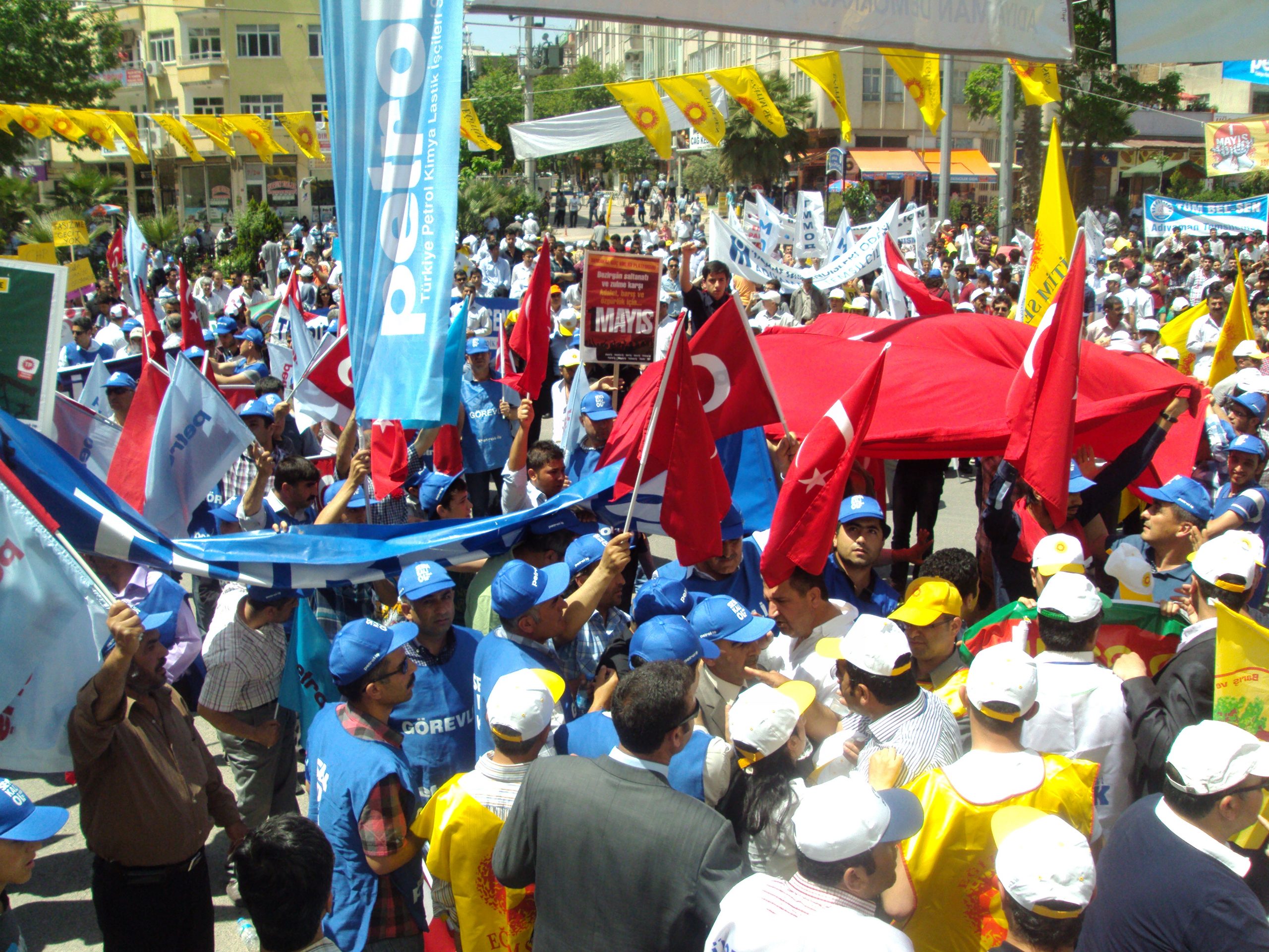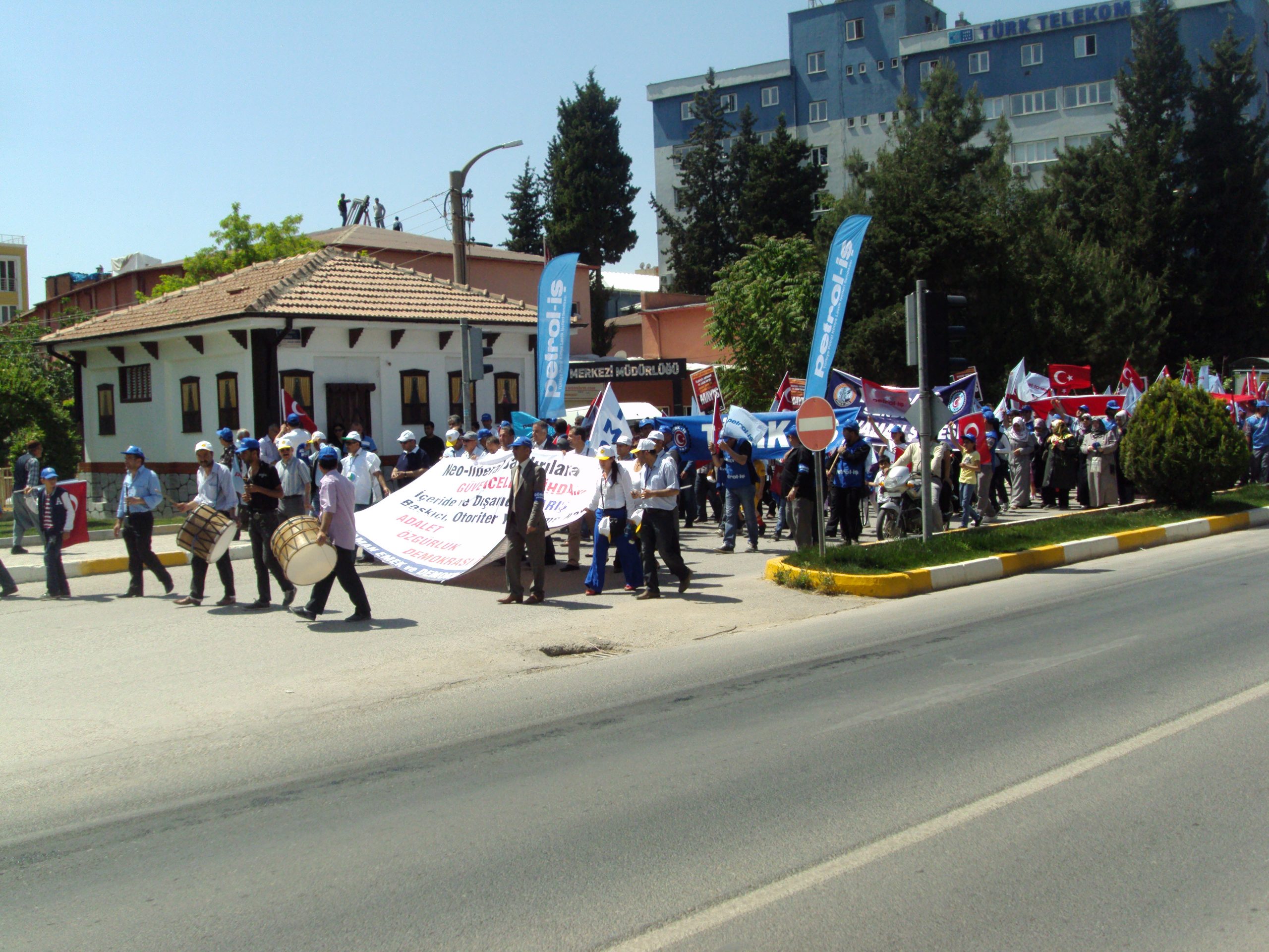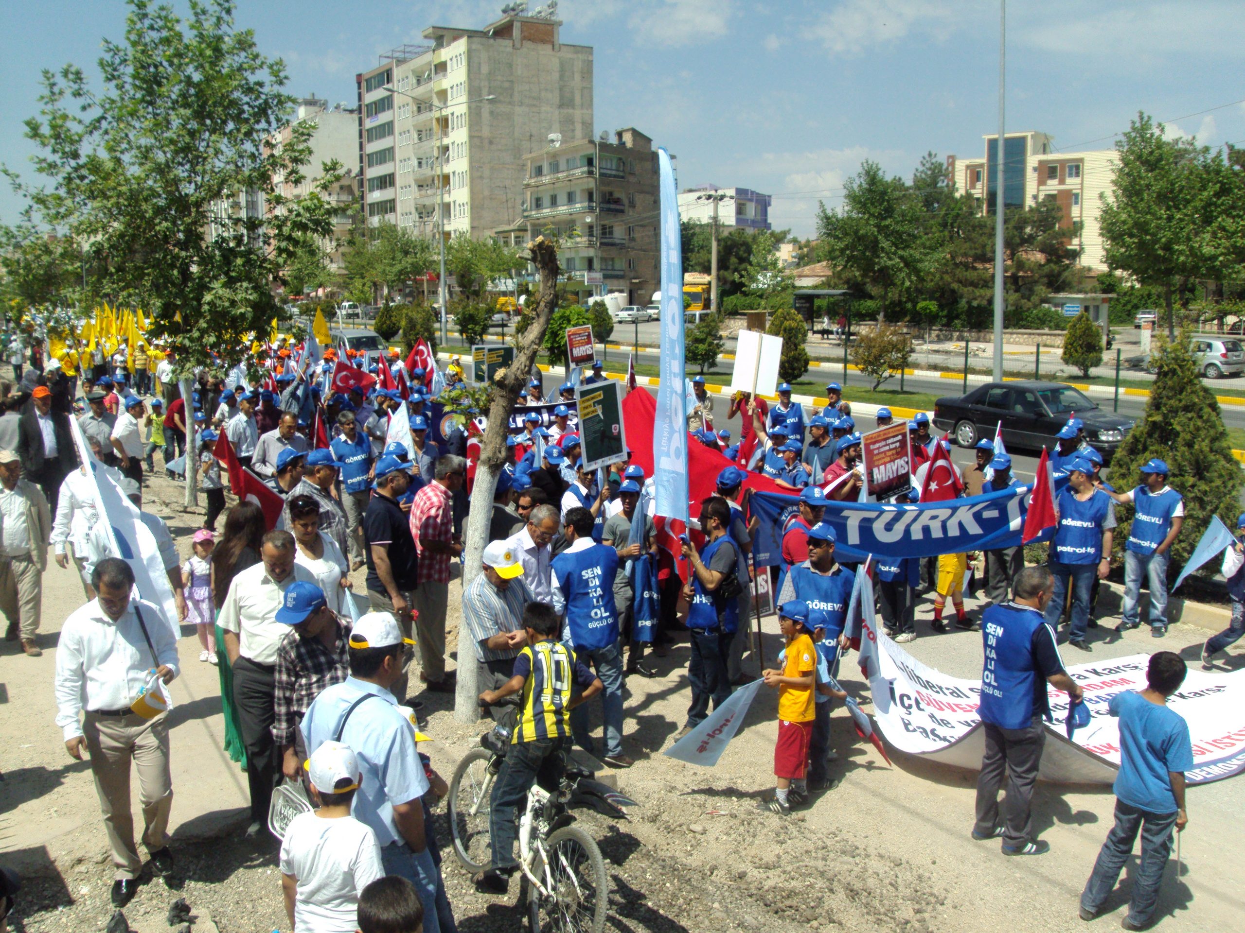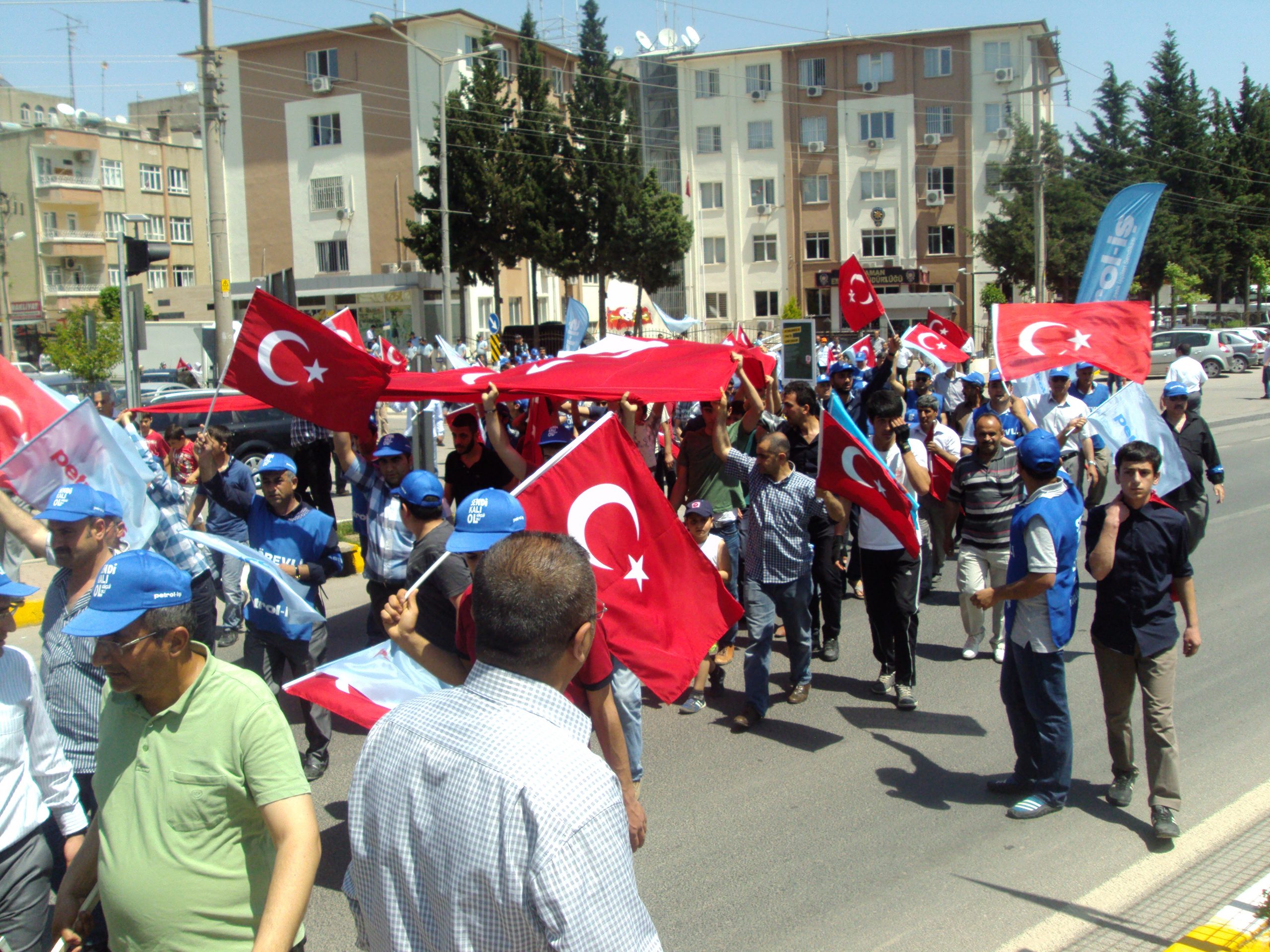 Bu meydanlara hakkı müdaafa günü olan 1 Mayıs’da AVM şantiyelerinde yanan işçileri anmak için, barajlarda boğulan işçileri anmak için, sigortasız işçinin yetim çocuğunun gözyaşını silmek için, işçinin alınteri kurumadan ücretini verin buyuran yüce önderin mesajını iletmek için. Emeğin hesabını sormak için, alınterinin hesabını sormak için ekmeğini yediğimiz vatanın bayrağı ile 1 Mayıs işçi bayramına Adıyaman Petrol-İş Sendikası olarak katıldık.