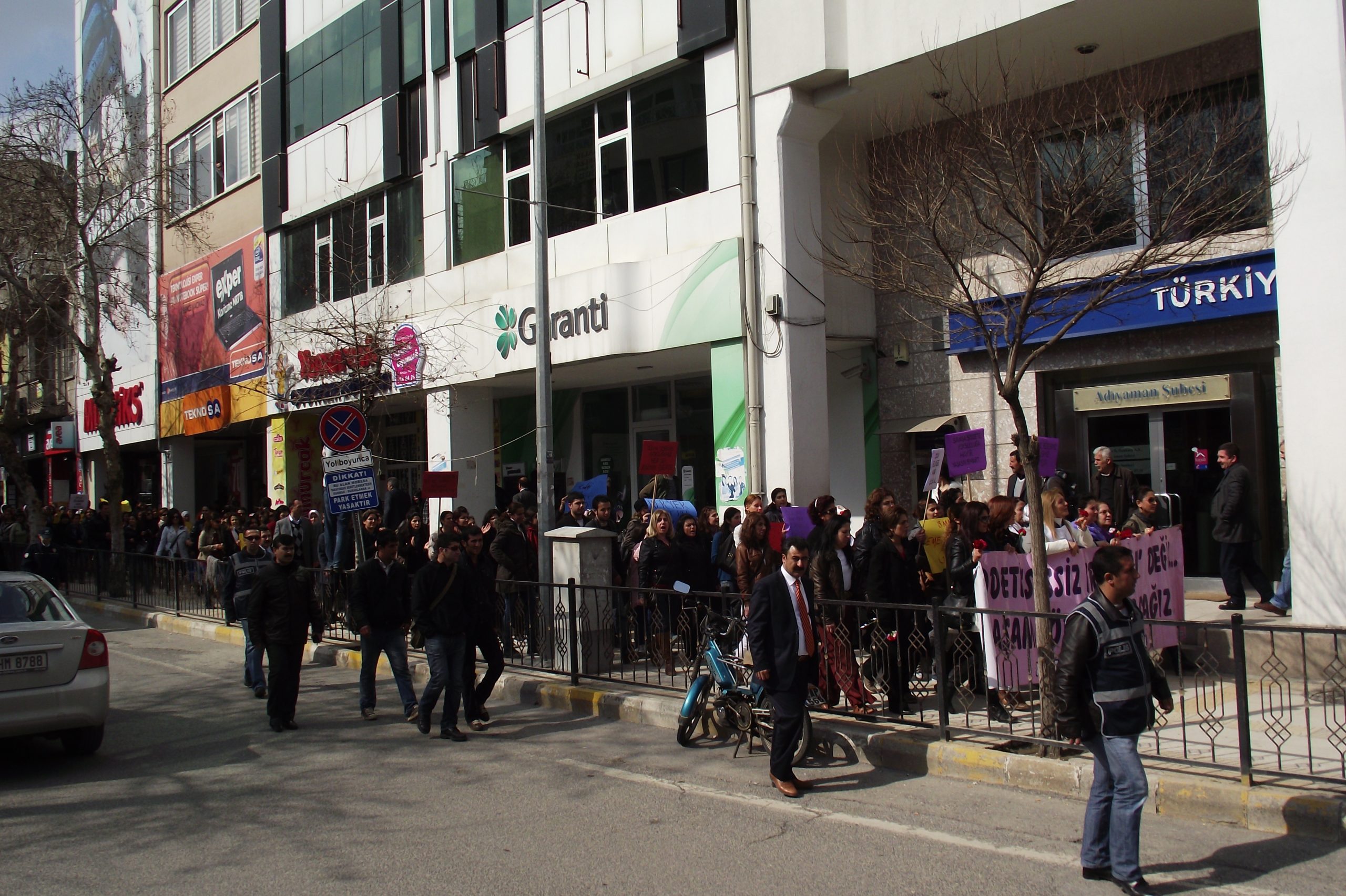 Adıyaman şubemizde 8 Mart Dünya Kadınlar günü etkinliği sabah işyeri ziyaretiyle başladı. Şube Başkanımız Zeynal Eroğlu ve Yönetim Kurulu Üyelerimiz kadın üyelerimize karanfiller dağıtılarak emekçi kadınlar gününü kutladılar. Öğle yemeğinde çiğ köfte partisi verip kadın üyelerimize moral verdiler. Aynı zamanda Adıyaman’da Açılışı yapılan AKAYDER’in (Adıyaman Kadın Yaşam Derneği) açılışına Şube Başkanımız ve Yönetim kurulu üyelerimiz katılım sağladı. Saat 14.00’de Emek ve Demokrasi Platformu ve İl Kadın Platformuyla yaklaşık 1 km. yürüyüş yapılarak Demokrasi Parkında basın açıklaması yapıldı.