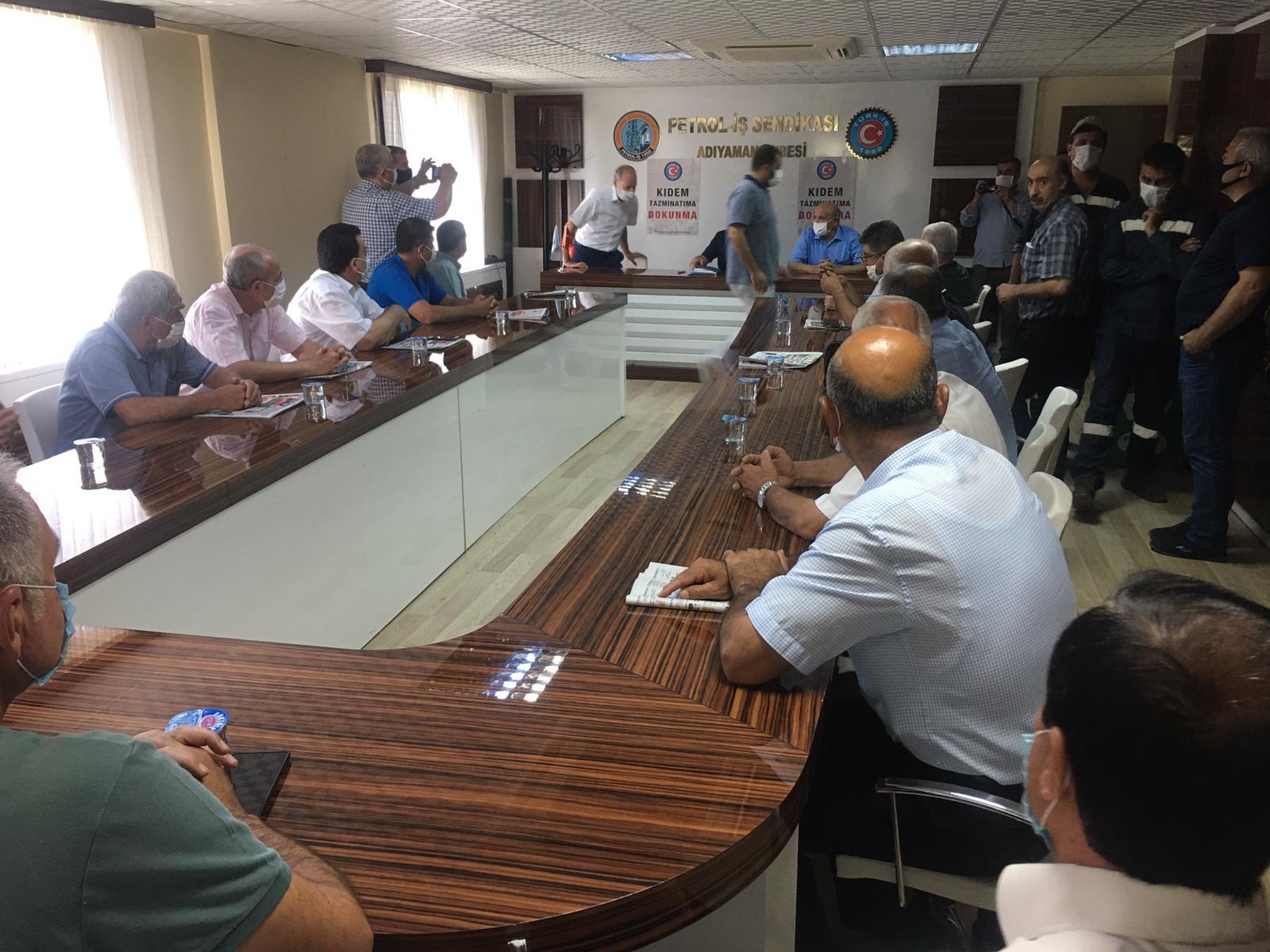Adıyaman Şubemiz binasında yapılan basın açıklamasını, Şube Başkanımız Ali Tirpan okudu. Açıklamada, kıdem tazminatının işçilerin kırmızı çizgisi olduğu belirtildikten sonra, Türk-İş’in son genel kurullarında kıdem tazminatı ile ilgili aldığı genel grev kararı hatırlatıldı.