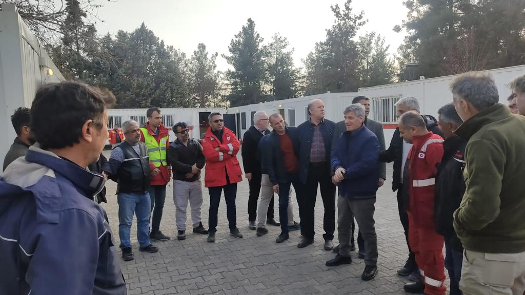 Genel Merkez Yöneticilerimizin deprem bölgesinde örgütlü olduğumuz işyerlerini ziyaretleri devam ediyor. 23 Şubat Perşembe günü sendikamız Genel Başkanı Süleyman Akyüz, Genel Sekreteri Salih Akduman, Genel Mali Sekreteri Erhan Yakışan, Genel Yönetim Sekreteri Ünal Akbulut, Adıyaman Şube Başkanı Mehmet Karaman ve Şube Yönetimi ile birlikte TPAO Adıyaman Bölge Müdürlüğünü ziyaret ederek üyelerimizle biraraya geldiler. Petrol-İş Heyetine IndustriALL Küresel Sendika Genel Sekreter Yardımcısı Kemal Özkan ile IndustriALL Avrupa Genel Sekreteri Luc Triangle de eşlik etti.