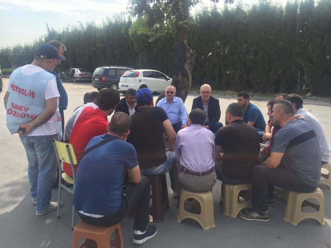 21 Haziran Çarşamba günü İstanbul 2 No’lu Şubemizin örgütlü olduğu Mutlu Akü işyerinde toplu iş sözleşmesindeki yaşanan anlaşmazlıktan dolayı greve çıkan üyelerimize, Genel Yönetim Sekreterimiz Ünal Akbulut, Adana Şube Başkanımız Abdül Mecit Dönmez, İskenderun Gübre İşyeri temsilcilerimiz Bülent Muhittin Ağca ve Ahmet Gökçek bir dayanışma ziyareti gerçekleştirdi.