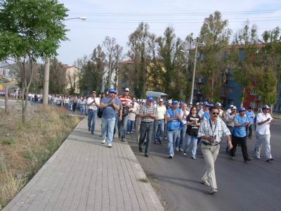 Dün sabah, Petkim işçileri ile birlikte Aliağa’ya yürüyerek, Şube binası önünde kitlesel basın açıklaması yapan Tüpraş işçileri, bugün de (02.06.2004) işbaşı yapmak üzere geldikleri İzmir Rafinerisi giriş kapısında servis araçlarından inerek Aliağa’ya doğru yürüyüşe geçtiler. Çanakkale yolu kavşağına kadar yürüyen Rafineri işçilerine, gece vardiyasından çıkan Petkim işçileri de katıldı.