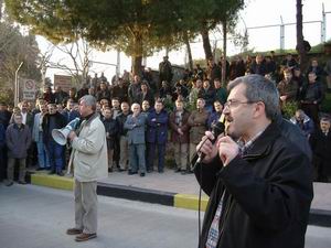 Petkim A kapısı önünde toplanan işçilere, Türk-İş tarafından işyerlerinde okunmak üzere hazırlanan bildiri okundu. Daha sonra Şube başkanı İbrahim Doğangül; 44 gündür işyerini terk etmeyen SEKA işçilerine selam göndererek, “Her yer SEKA, Her Yer Direniş” sloganını hayata geçirdiklerini söyledi. SEKA’ da sembolleşen direnişin bugün bütün ülkeye yayıldığını, daha büyüyerek Özelleştirme karşıtı bir cephenin örülmesinde önemli bir eşik olarak değerlendirilmesi gerektiğini söyledi. Türk–İş tarihinde işyeri kapatmaları ve özelleştirmelere karşı alınan bu önemli ilk karar umudumuzu biraz daha arttırmıştır. SEKA işçilerinin inancını ve direncini biliyoruz. Bu genel eylem kararı onların bu direncinin sonucudur. İstenirse her yer SEKA olabilir dedi.