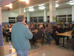 Daha sonra topluca işyeri yemekhanesine geçen yaklaşık 1500 işçi, burada Küresel barış ve adalet koalisyonu sözcüsü Tayfun MATER in, 19 Mart küresel savaş karşıtı eylem ile ilgili bir sunumunu dinlediler. Daha sonra Tüpraş Aliağa işletmesine geçen Tayfun MATER burada 500 işçiye de bir sunum yaptı. İlgi ile izlenen sunum sırasında işçiler sık sık ABD ve işgal karşıtı sloganlar attı.