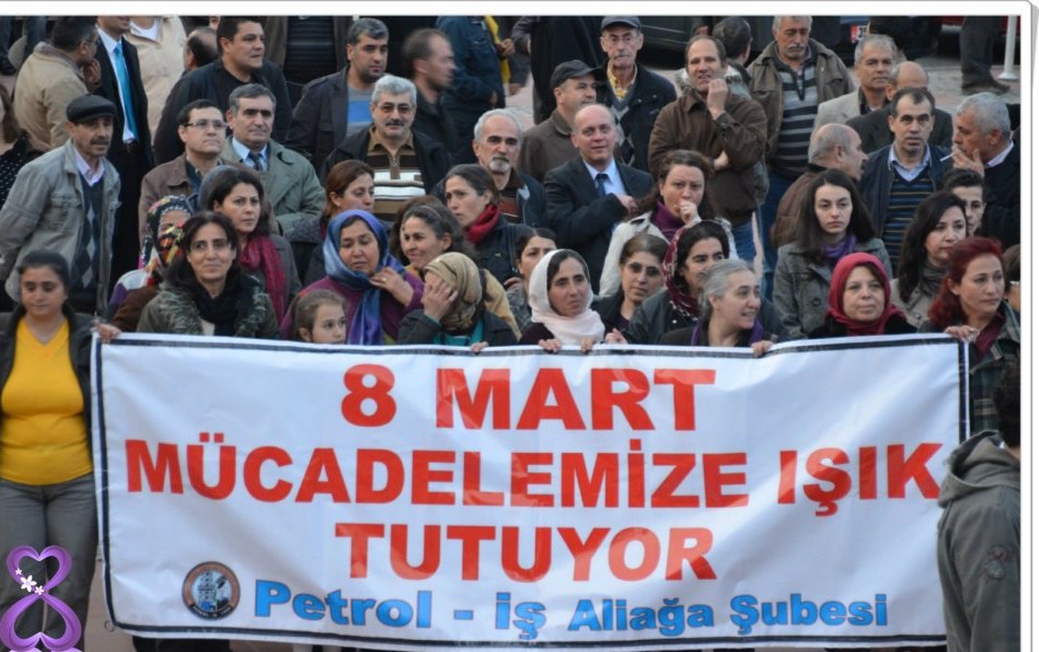 Petrol-İş Aliağa Şubemiz “8 Mart Dünya Emekçi Kadınlar Günü” nü çeşitli etkinliklerle kutladı. 8 Mart sabahı saat: 09.00’da “8 Mart Dünya Emekçi Kadınlar Günü” dolayısıyla şubemizde bir basın toplantısı düzenlendi. Türk-İş 3.Bölge Başkan Yardımcısı Tuncay KİREÇKAYA’nın da katıldığı basın toplantısına Şube Başkanımız İsmail DOĞAN, Sendikamızın kadın komisyonu üyelerinin el emekleriyle yaptıkları mumları kadınlara dağıtacaklarını ifade ederek, “Umarım yapılan mumlar bazı örümcek kafaların aydınlanmasına hizmet eder” diye konuştu.