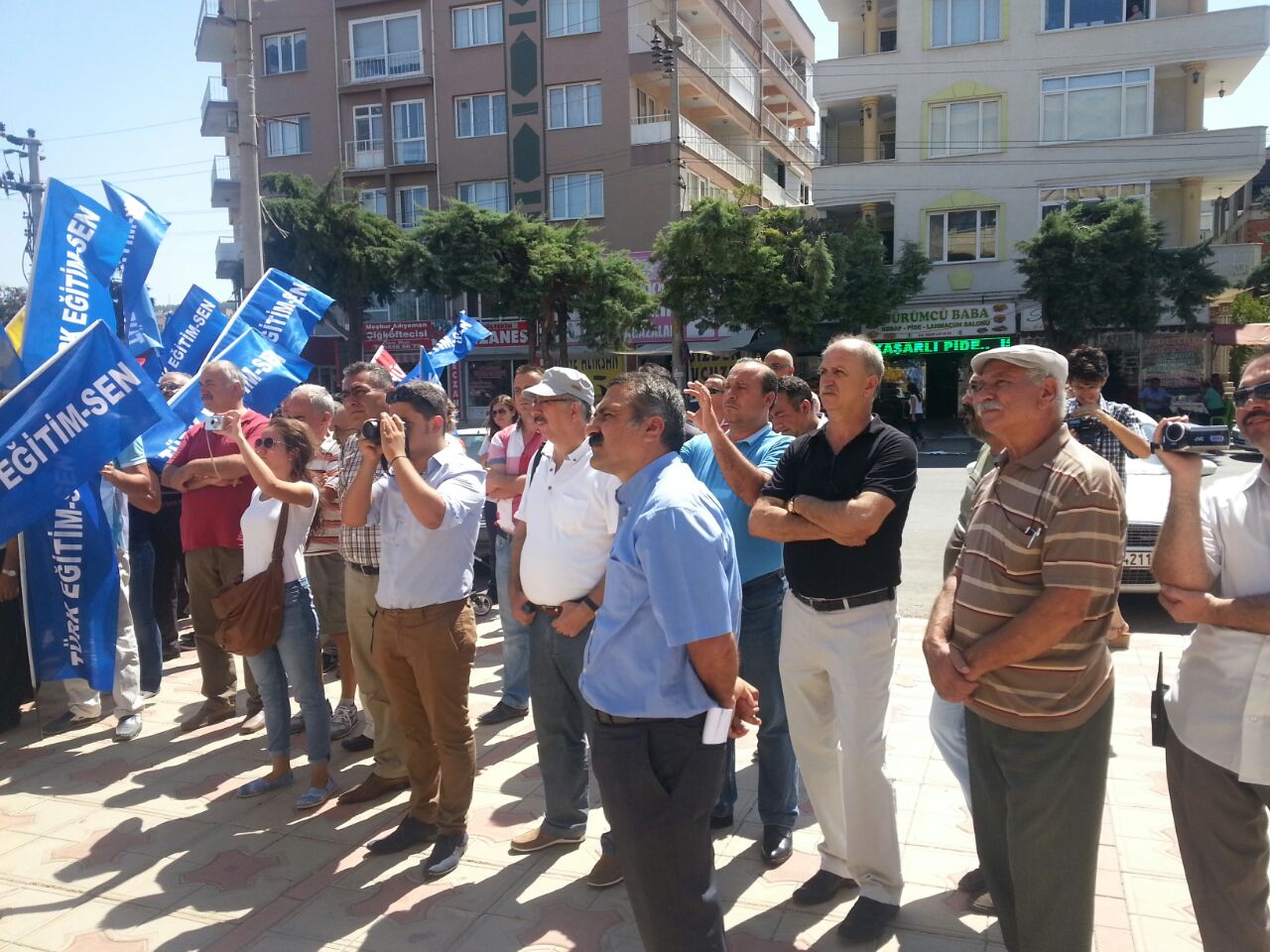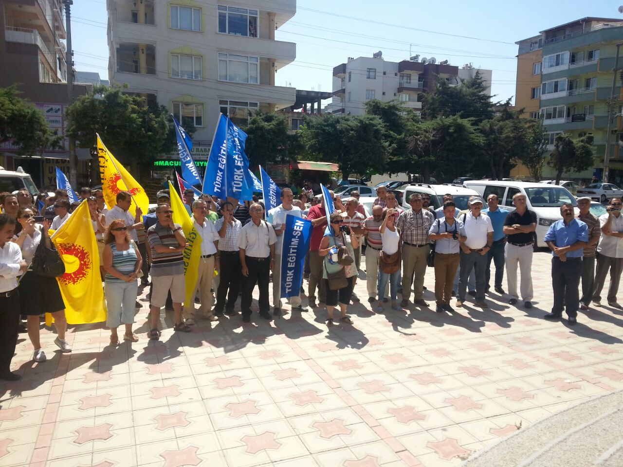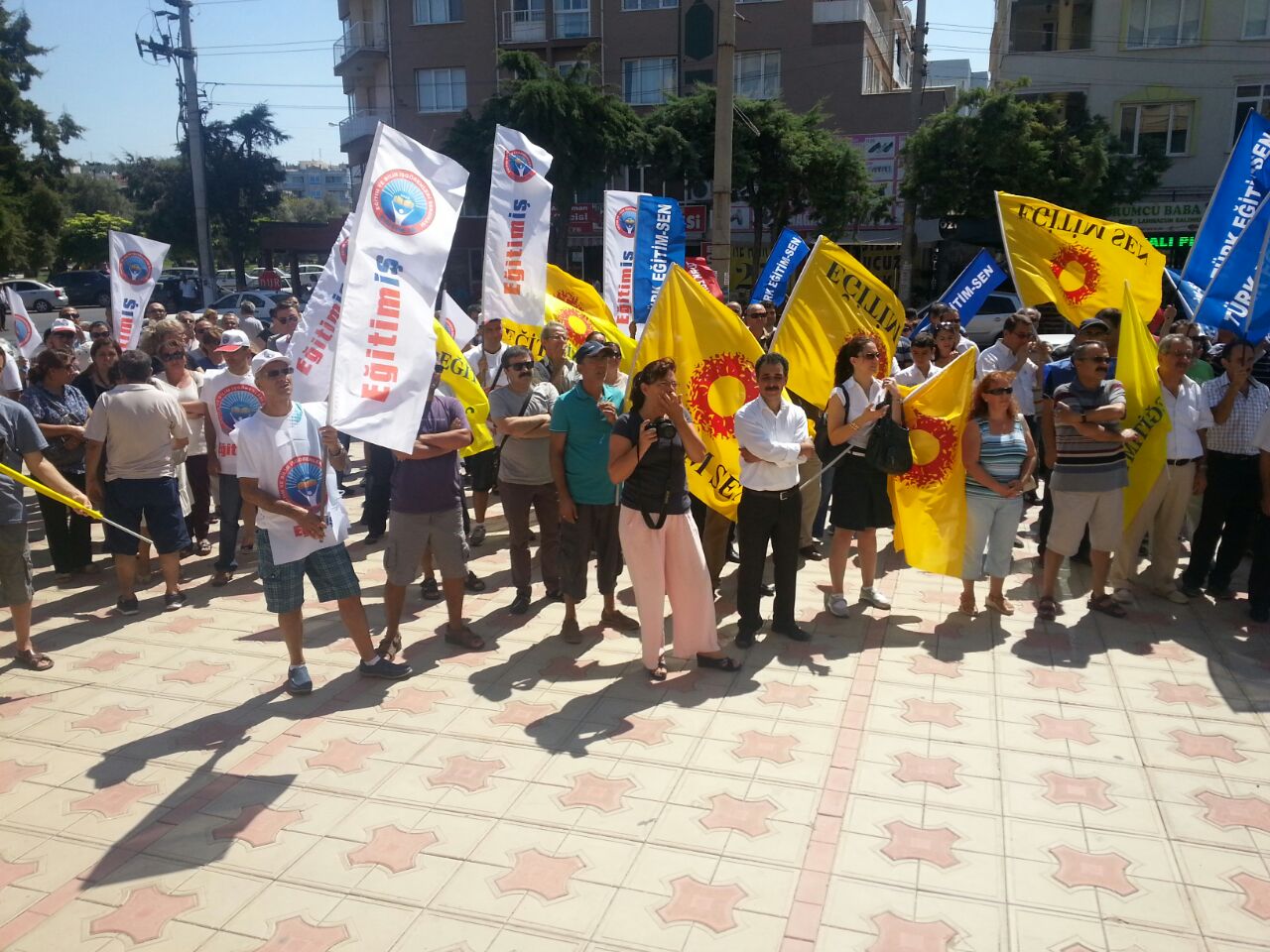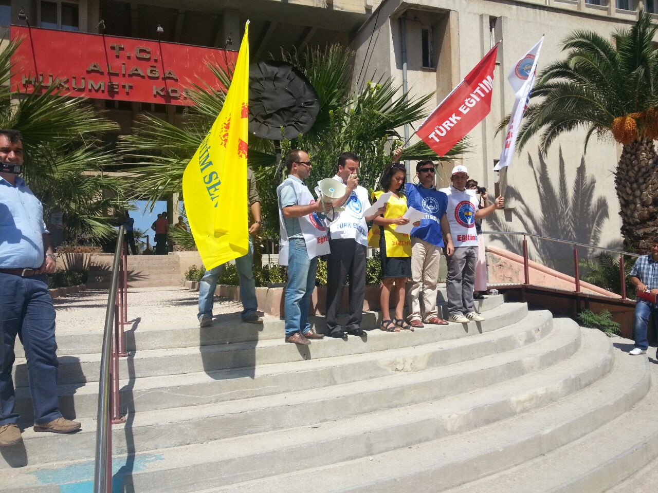 Eğitim-Sen, Türk Eğitim-Sen ve Eğitim-İş’in Aliağa İlçe Temsilcilikleri 25 Ağustos Pazartesi günü saat 12.00’de Aliağa Hükümet Konağı önünde bir basın açıklaması yapıldı. Milli Eğitim Bakanlığına Bağlı Eğitim Kurumları Yöneticilerinin Görevlendirilmelerine İlişkin Yönetmeliğin yayınlanması ile 4 yıl görev süresini dolduran okul müdürlerinin görevden alınmasıyla ilgili yapılan basın açıklamasına, Aliağa şube de katılım sağladı.