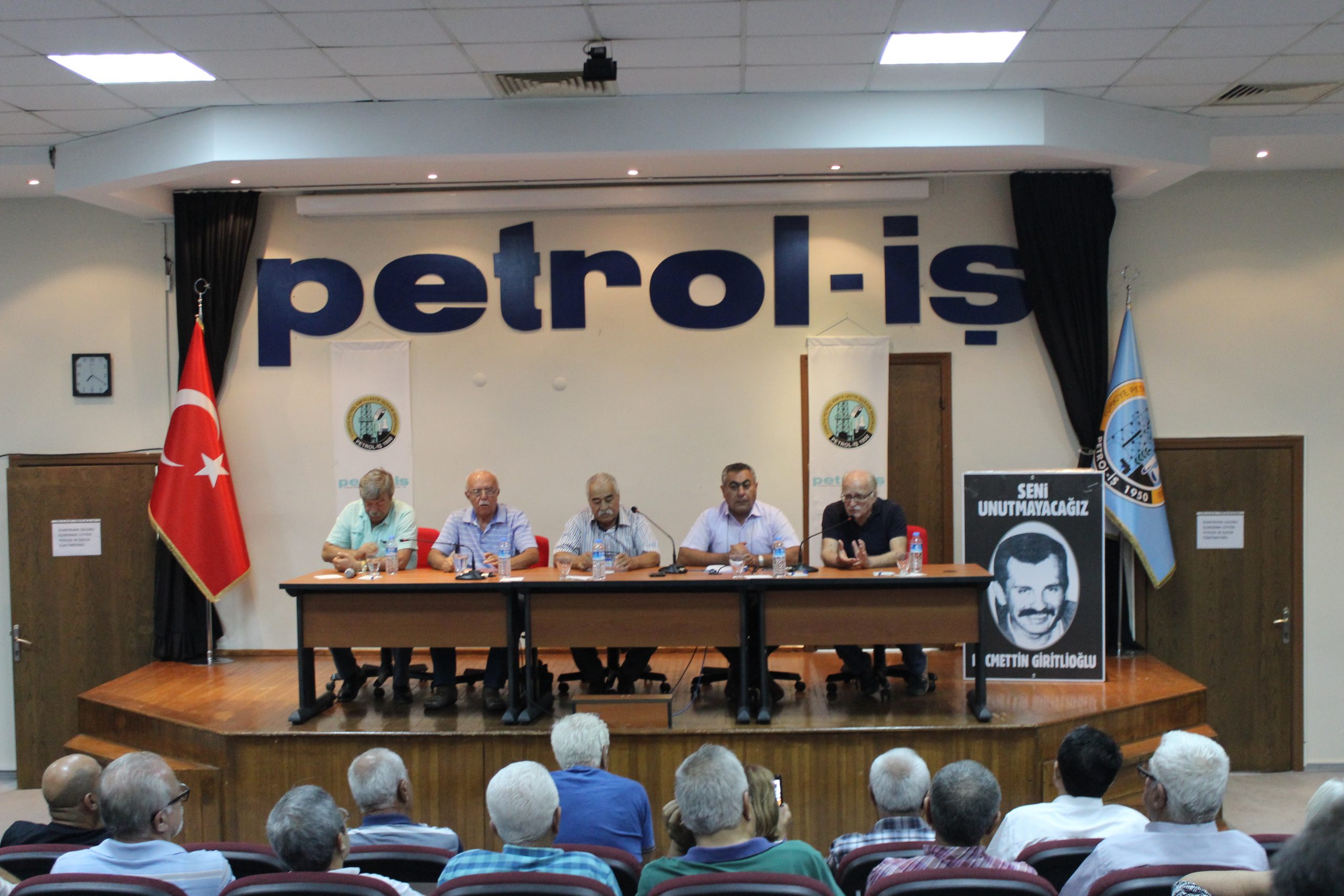 Aliağa Şubemiz, Aliağa Rafinerisin’de faaliyet yürüten Rus firmasına ait ve Yapı-Yol İş Sendikası üyesi işçiler grevdeyken işverenin kiralık katili tarafından 22 Ağustos 1970 tarihinde katledilen Yapı Yol-İş Sendikası Genel Başkanı Necmettin Giritlioğlu’nu katledilişinin 47.Yıl dönümü anısına Aliağa Emek ve Demokrasi Platformu Bileşenleri olarak 22 Ağustos 2017 tarihinde bir panel düzenlendi. Panelde Türkiyede sendikal hareketin değerlendimeleri yapıldı.
