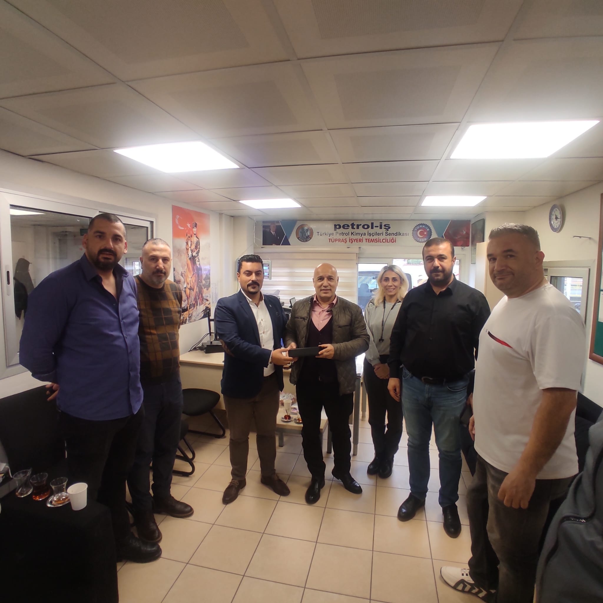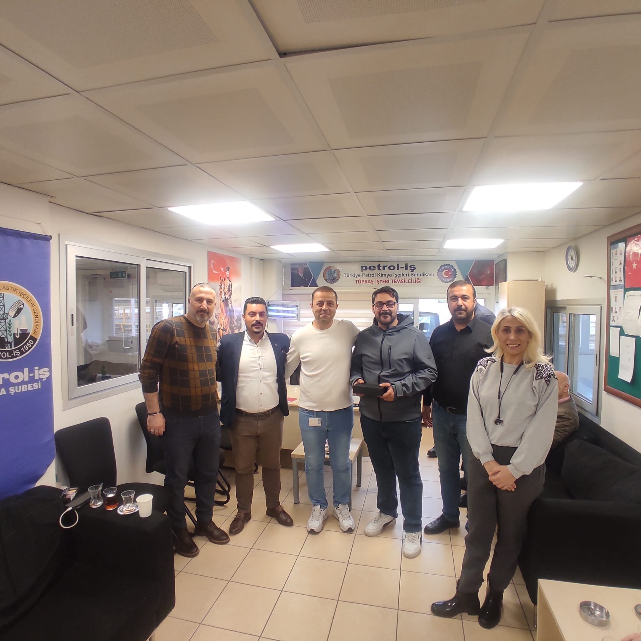 3 Aralık Dünya Engelliler Günü dolayısıyla sendikamız Aliağa Şube Başkan Yardımcısı Gökhan Karataş, Tüpraş işyeri baştemsilcisi Çetin Bedel, işyeri temsilcileri Hale Kaymak Arif Tekdikmen, Aycan Meriç, Özer Kirik ve Mustafa Dadak Tüpraş İzmir Rafinerisi’nde çalışan üyelerimizle bir araya geldi.