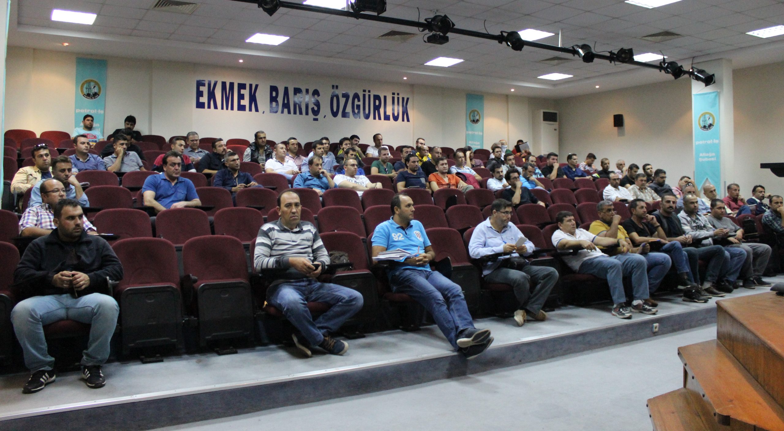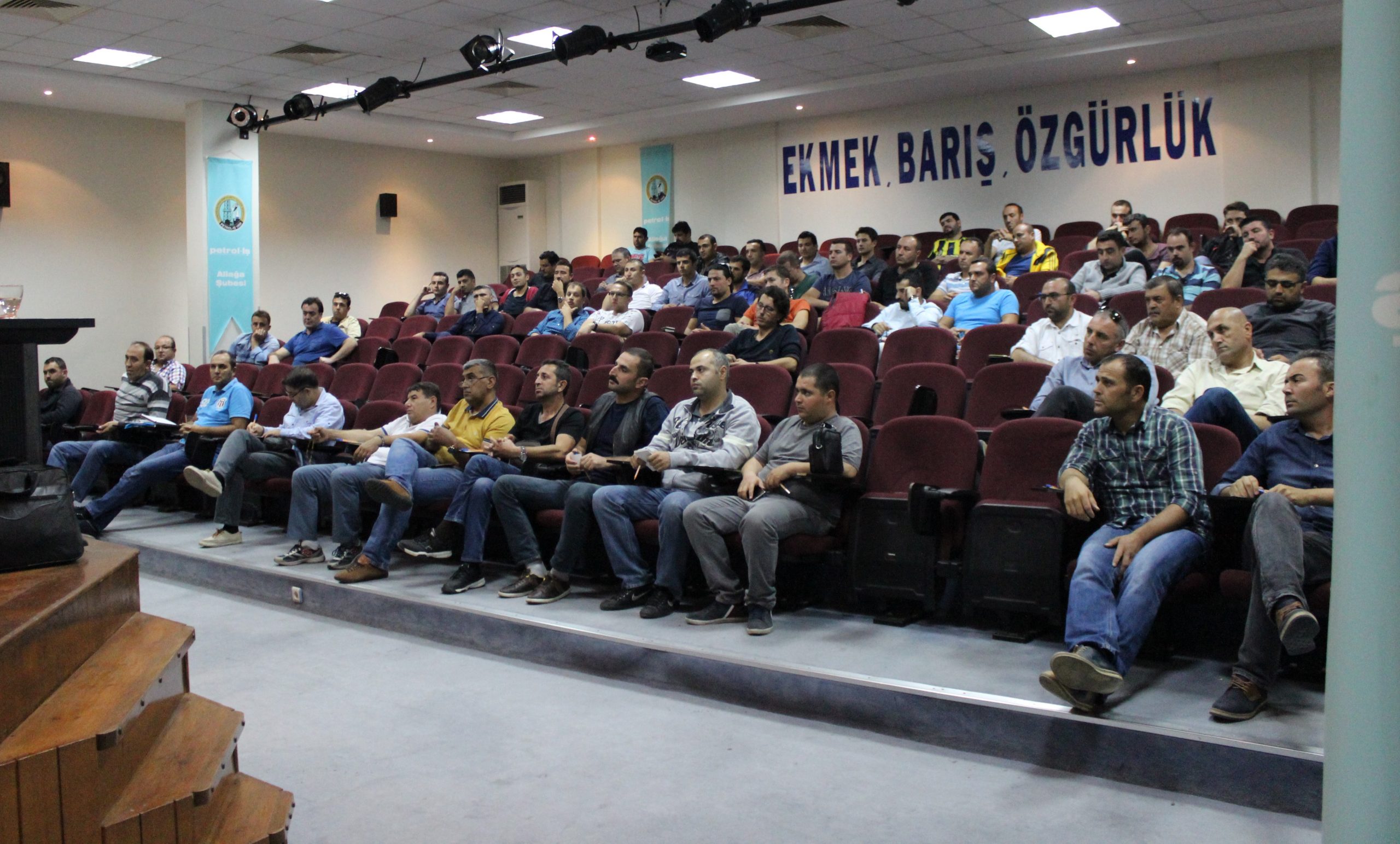 Aliağa Şubemizin örgütlü olduğuTüpraş İzmir Rafinerisi işyerinde çalışan üyelerimizle 29 Eylül Perşembe günü Aliağa Şubemizin Konferans Salonu’nda geniş katılımlı bir toplantı yapıldı.Toplantı esnasında Tüpraş işyerinde yaşanan sorunlar ve 2017-2018 dönemini kapsayacak olan toplu iş sözleşmesi süreci değerlendirildi.