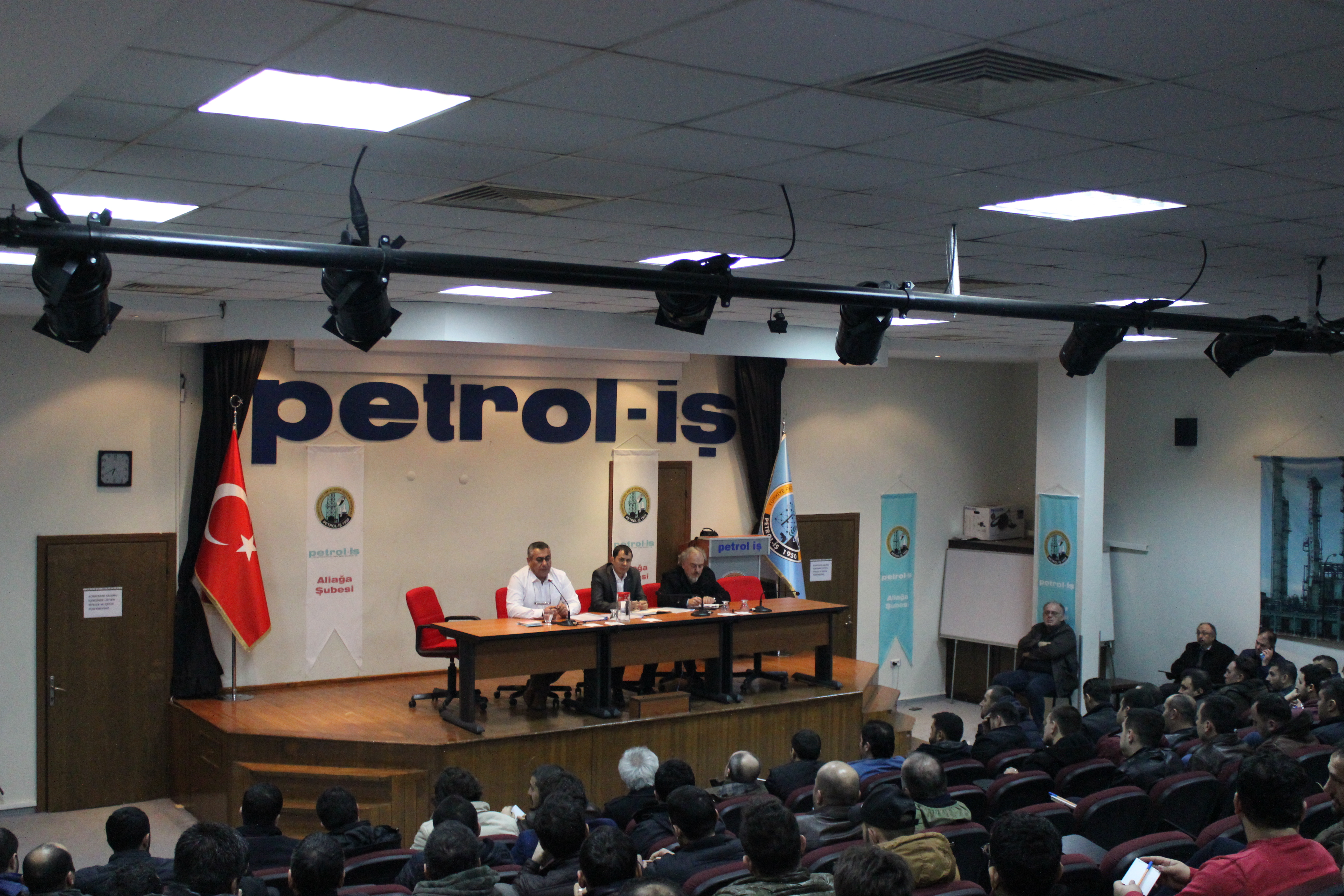 Aliağa Şubemizin örgütlü olduğu Petkim Petrokimya Holding A,Ş işyerinde çalışan üyelerimizle 30 Ocak Pazartesi günü, şubemizin konferans salonunda geniş katılımlı bir üye toplantısı yapıldı. Verimli geçen toplantıda devam eden toplu iş sözleşme süreci hakkında değerlendirilmeler yapıldı.