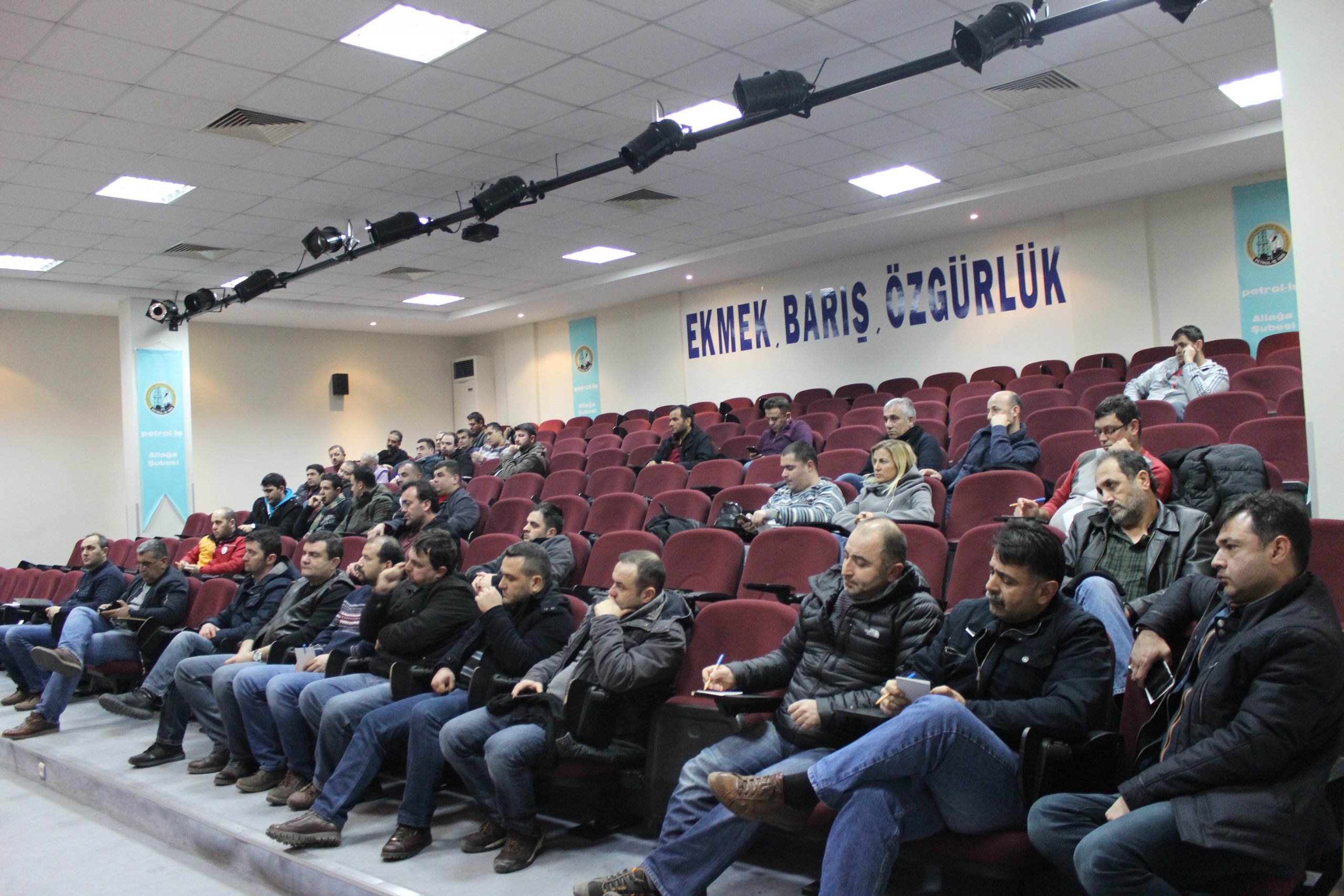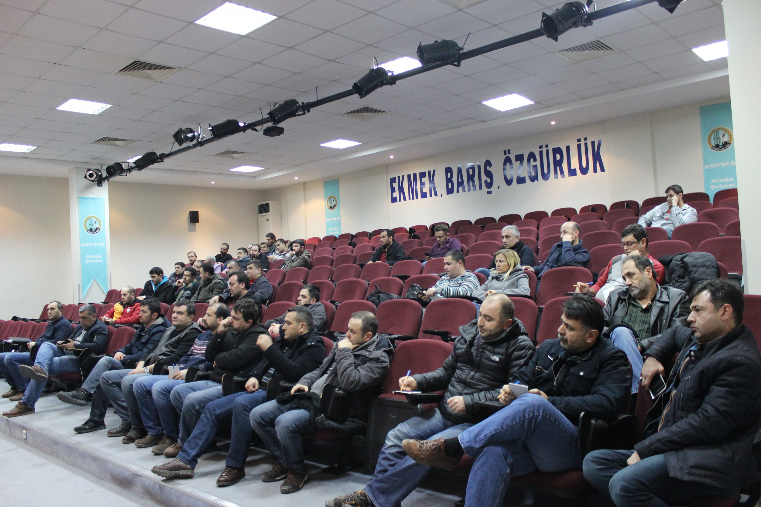 Aliağa Şubemiz kapsamında bulunan Tüpraş işyerimiz için devam eden TİS görüşmeleri ile ilgili değerlendirme toplantısı Şube Başkanımız Ahmet Oktay, Şube Başkan yardımcılarımız, işyeri temsilcilerimiz ve üyelerimizin geniş katılımı ile 27 Ocak Cuma günü şubemizin konferans salonunda yapıldı.
