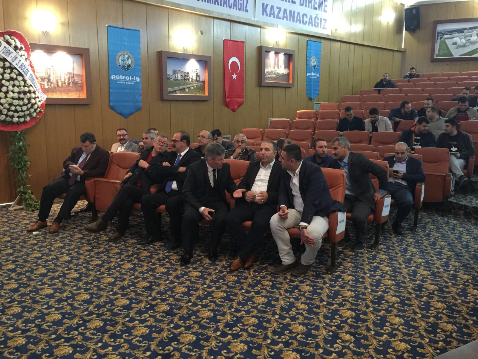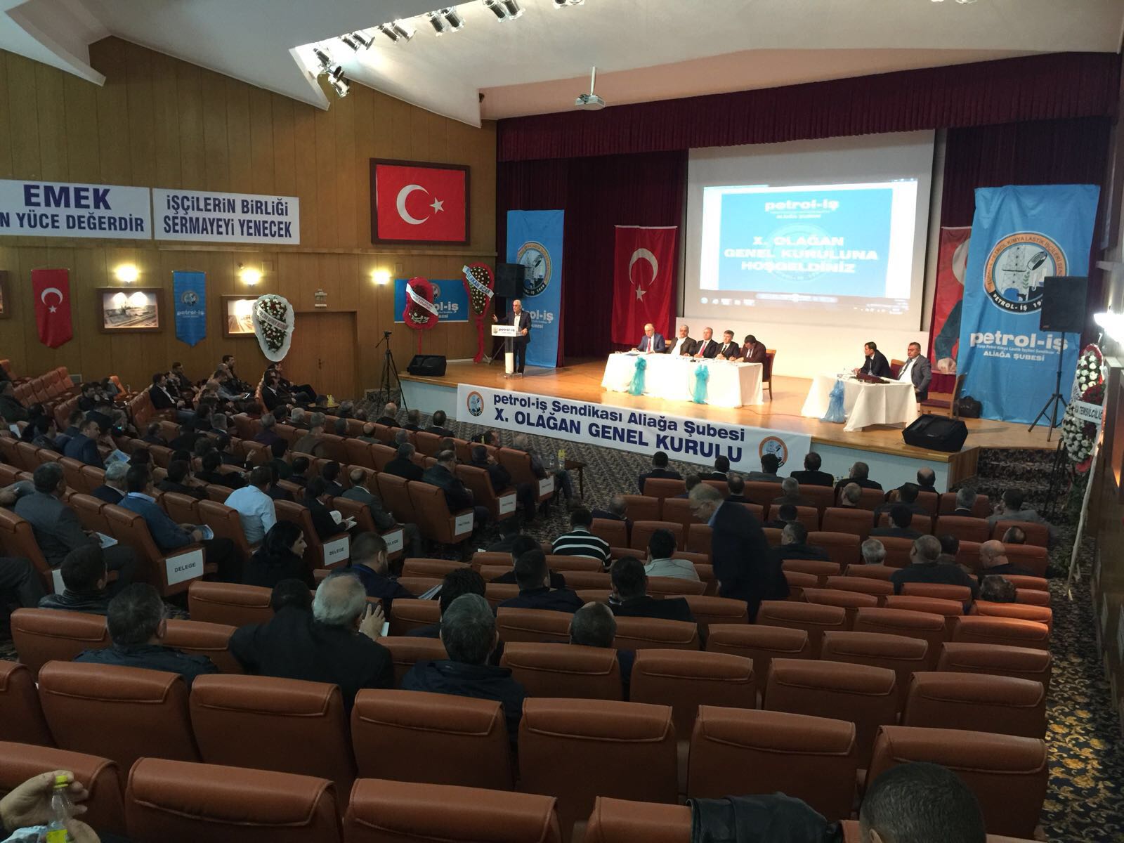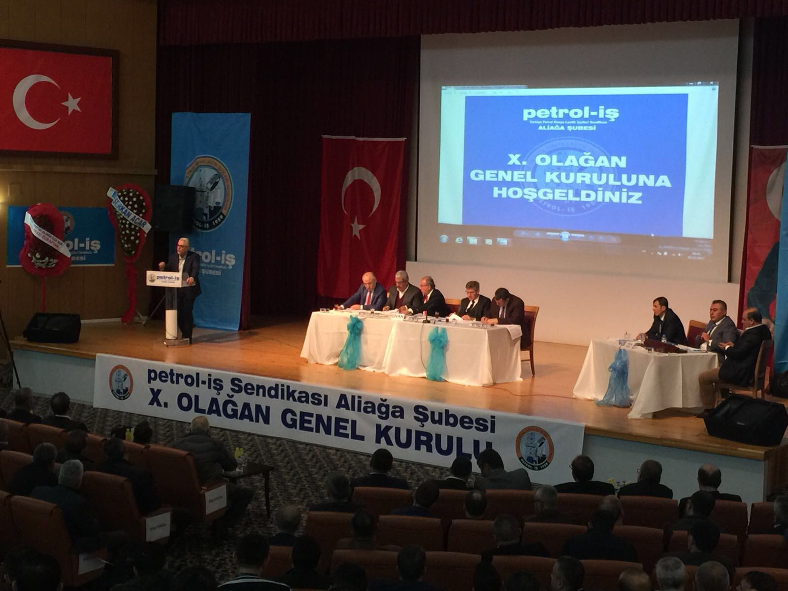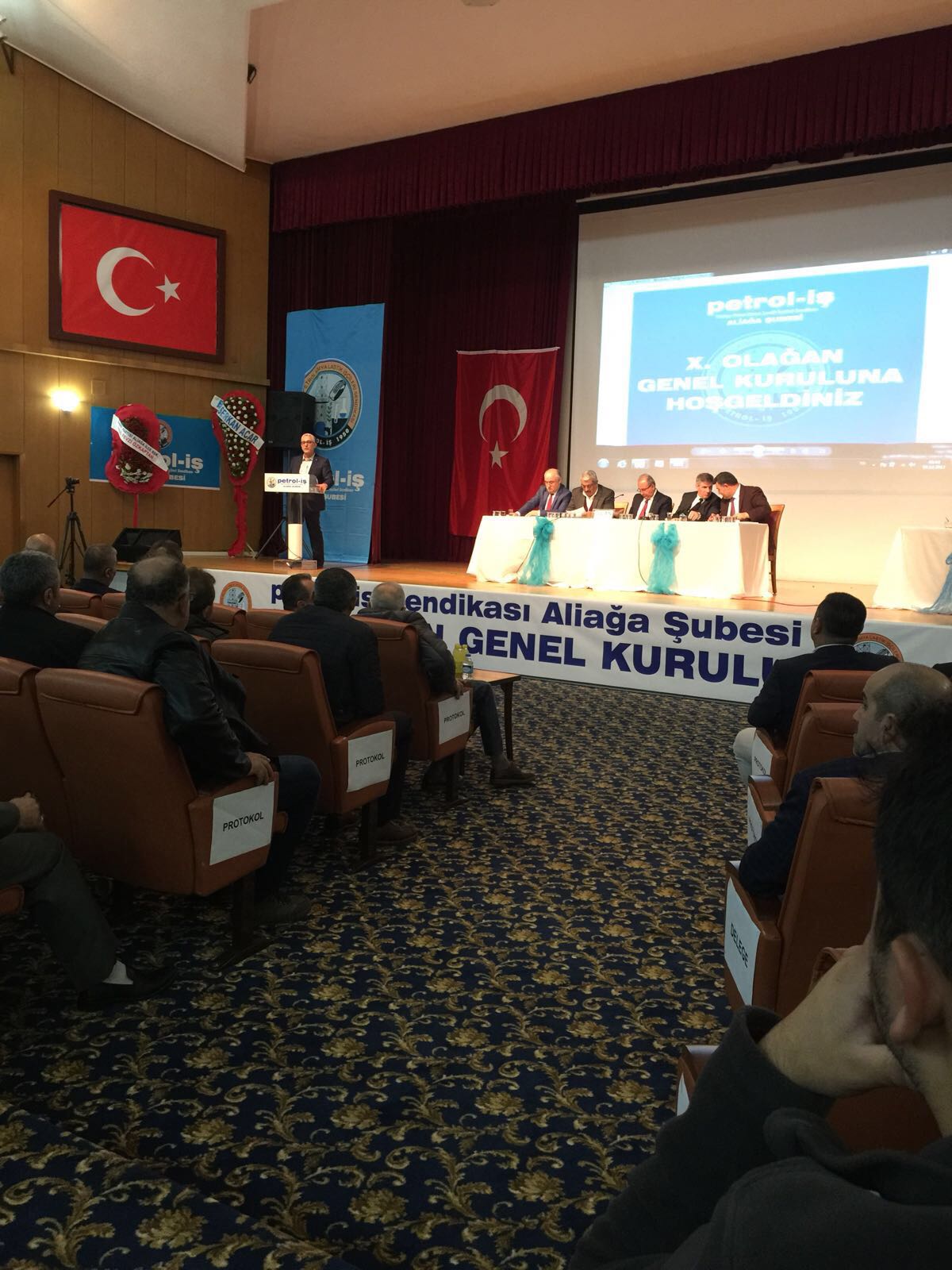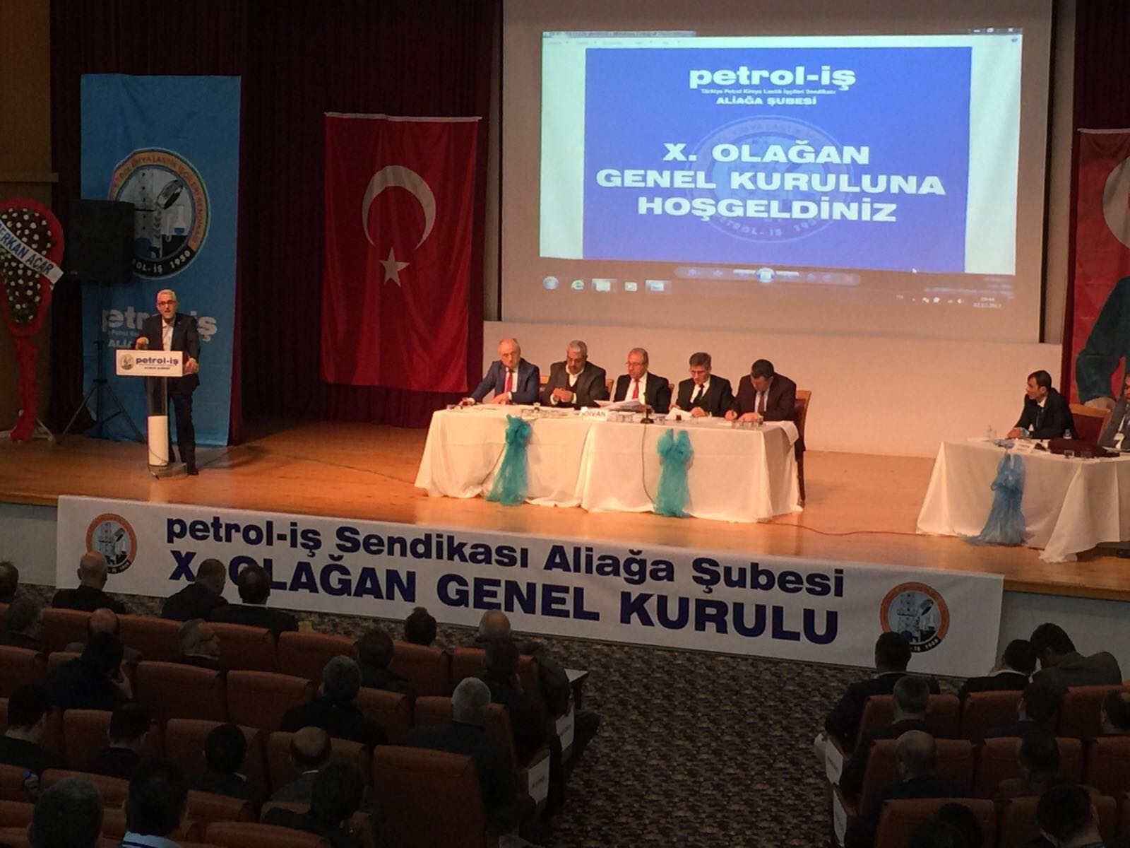 Aliağa Şubemizin 10.Olağan Genel Kurulu’na Petrol-İş Merkez Yönetim Kurulu üyeleri, Denetim ve Disiplin Kurulu üyeleri, şube başkanları, şube yöneticileri, şubemizin örgütlü olduğu işyerlerinden temsilciler ve üyelerimiz de katıldı.