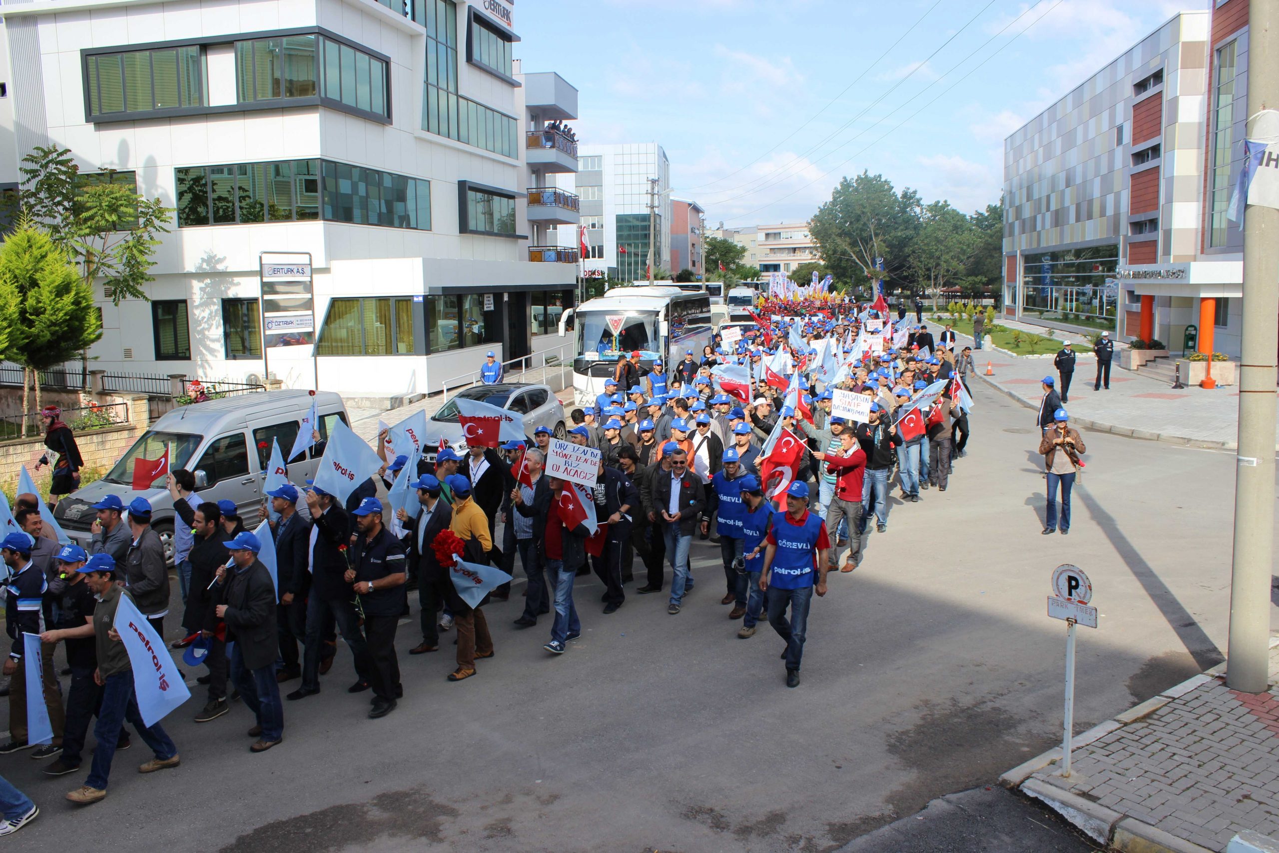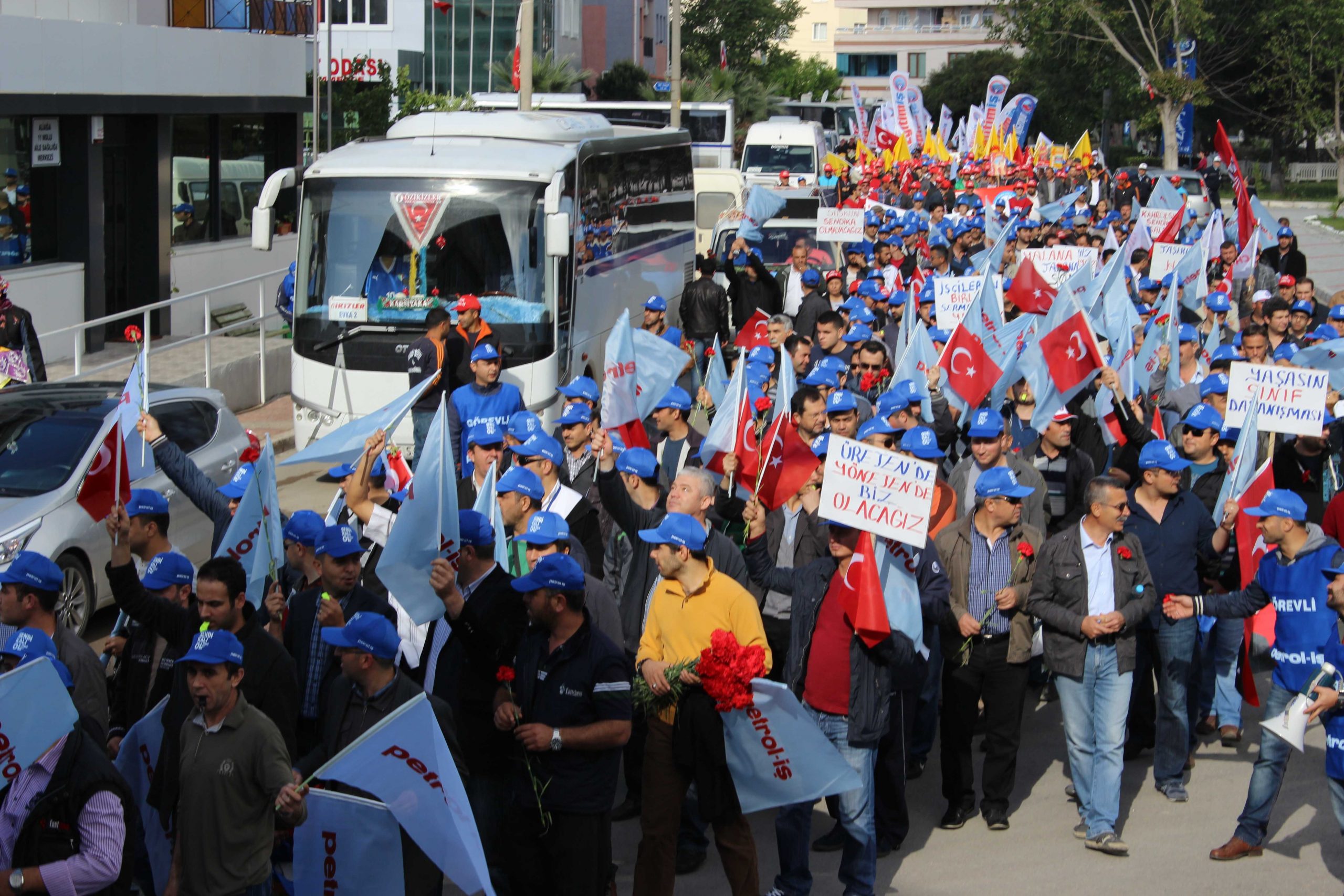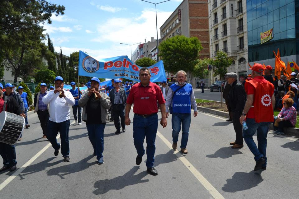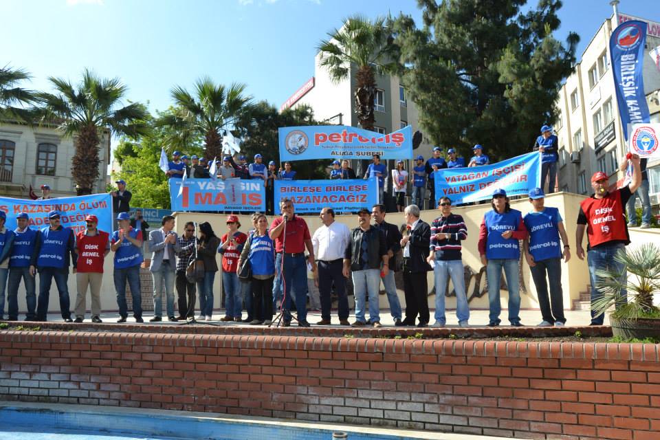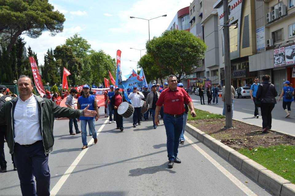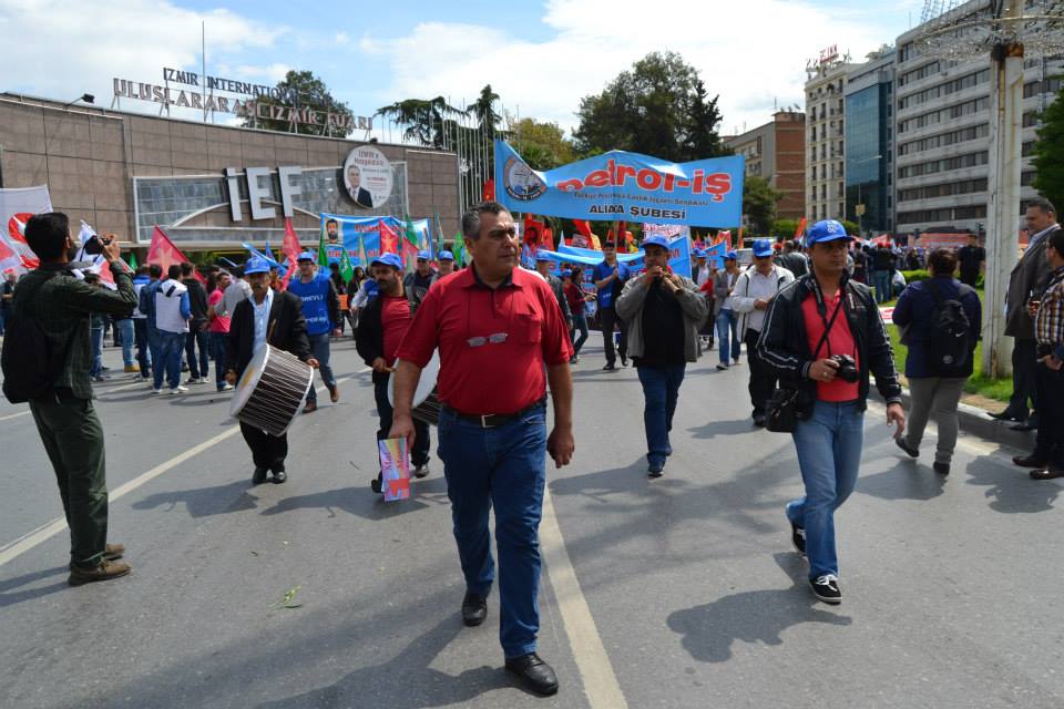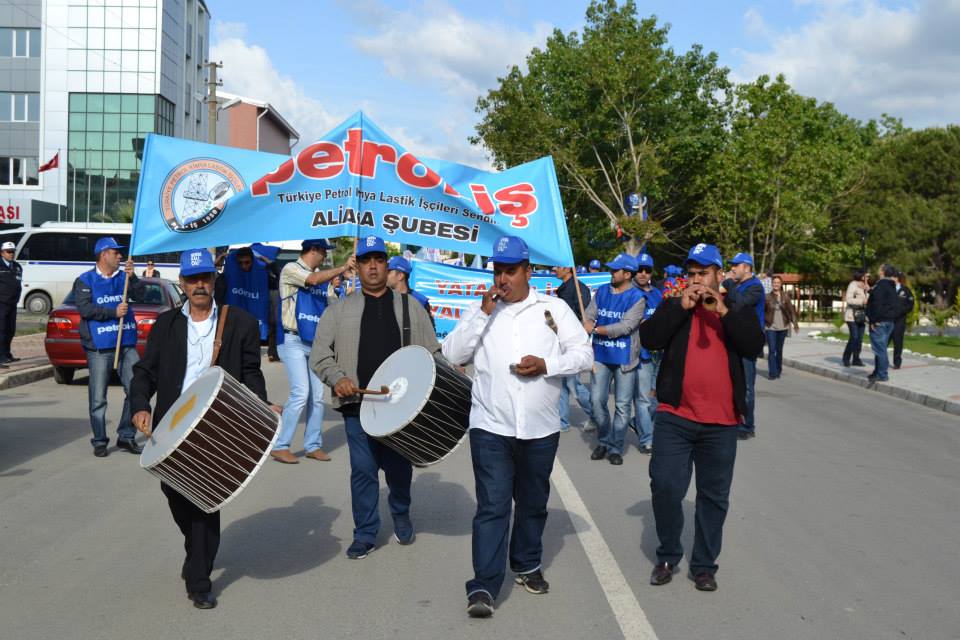 Daha sonra vardiyadan çıkan Petrol-İş üyeleri şube önünde Emek ve Demokrasi Platformu bileşenleriyle buluşarak, “Yaşasın İş-Emek-Özgürlük Mücadelemiz, İşte 1 Mayıs Alanlardayız, Taşeronlaşmaya Hayır” sloganları eşliğinde Atatürk Caddesi önünden Aliağa Demokrasi Meydanı’na doğru yürüyüşe geçti.