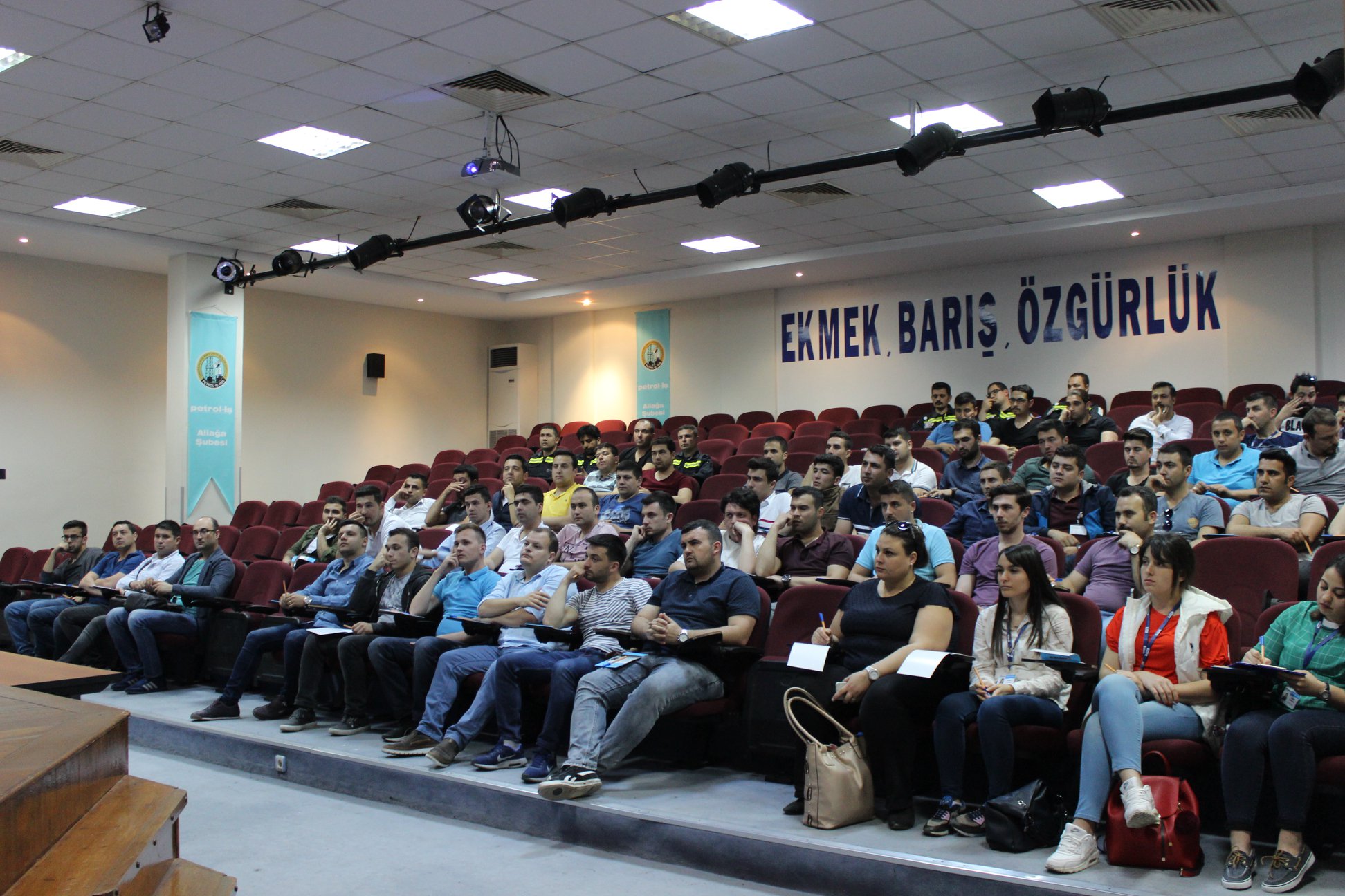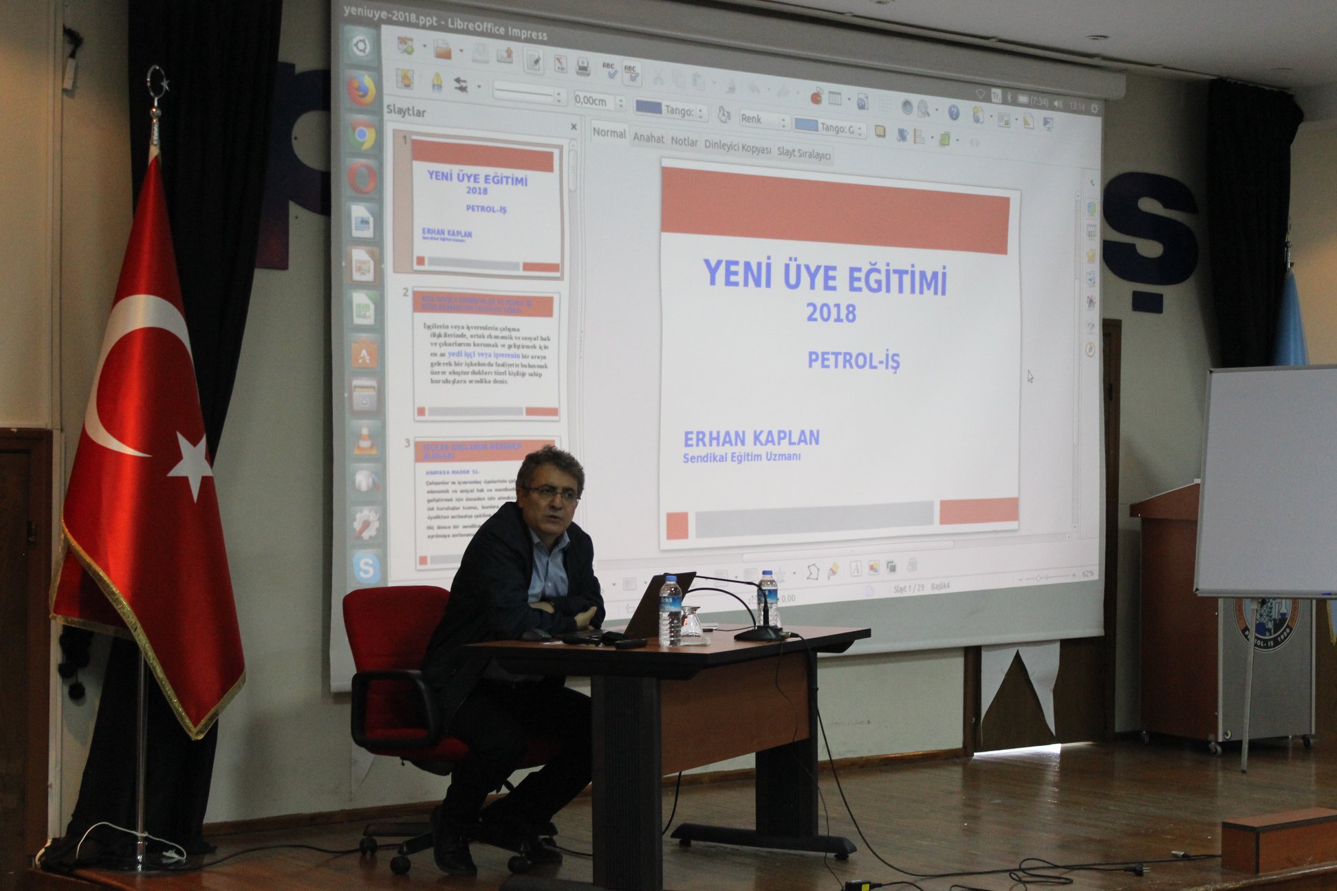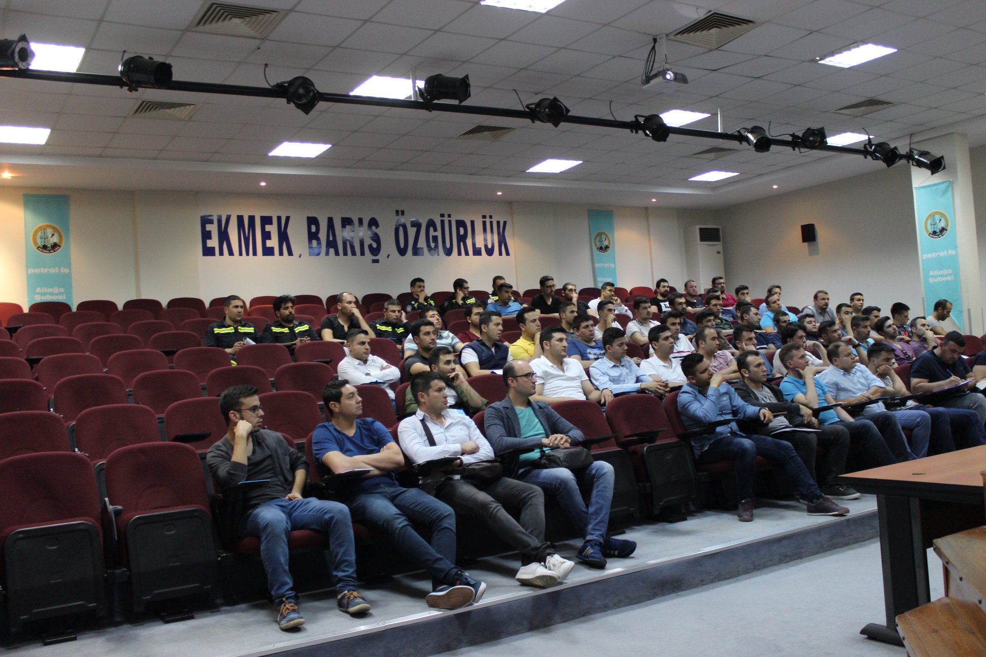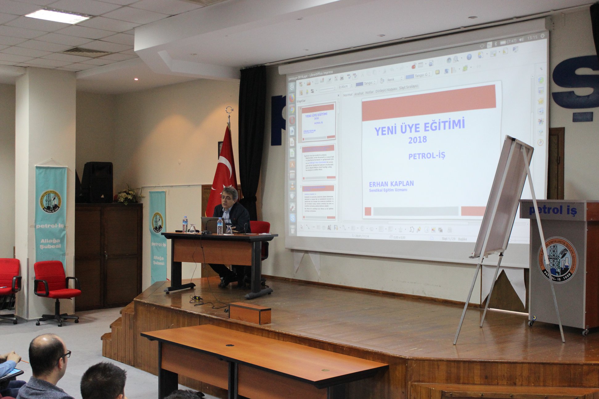 Aliağa Şubemizin örgütlü olduğu Petkim,Tüpraş ve Star Rafinerisi işyerlerinde yeni işbaşı yapan üyelerimize sendikamız eğitim uzmanı Erhan Kaplan tarafından temel sendikal konular başlıkları altında;sendika nedir,sendikal örgütlülüğün önemi, yaşamımızdaki işlevi vb. konular işlendiği eğitim verildi.