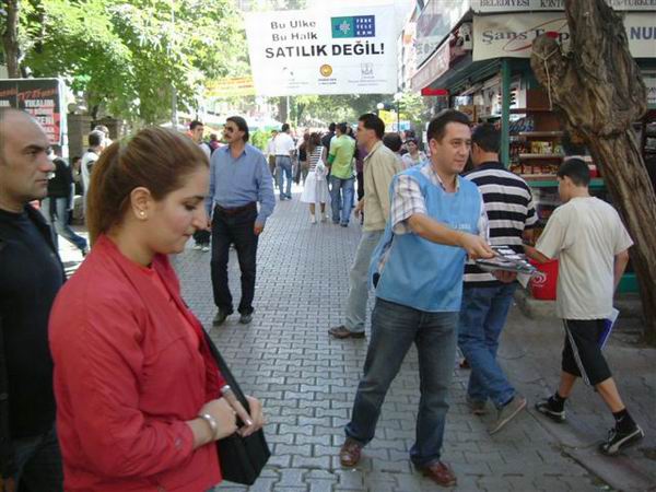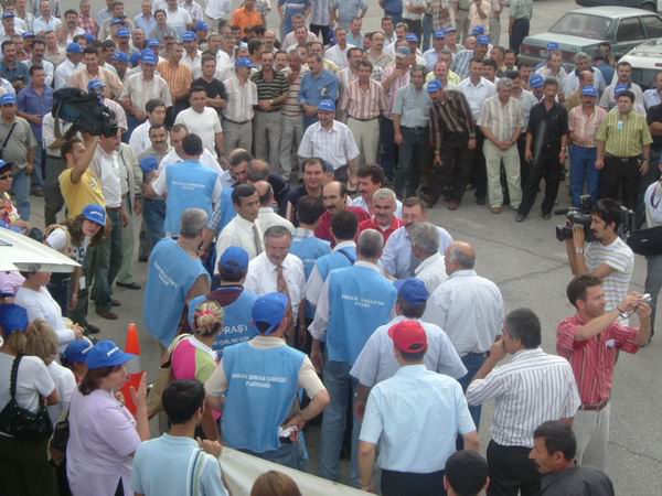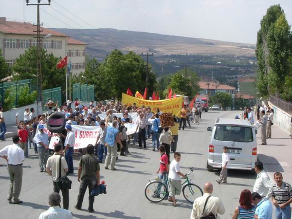 24 Ağustos 2005BOTAŞ Genel Müdürlüğü ve Bağlı İşyerlerinde TİS sürecinde, ilk işe giriş ücreti ve saha tazminatı talebimiz nedeniyle iş bırakılmıştır. 24 Ağustos 2005 tarihinde BOTAŞ Yapracık’ta konu ile ilgili Şubemiz tarafından basın açıklaması yapılmıştır. ( Petrol-İş Sendikası Ankara Şubesi ) 27 Ağustos 2005Elmadağ Halk Pazarında Çaykur ve Tüpraş Özelleştirmelerine karşı basın açıklaması yapıldı ve bildiri dağıtıldı. ( Ankara Sendika Şubeleri Platformu )28 Ağustos 2005Elmadağ Halk Eğitim Merkezinde Özelleştirmelere karşı panel gerçekleştirildi. Panel’e Kigem Yönetim Kurulu Üyesi İlter ERTUĞRUL ve Petrol-İş Sendikası Ankara Şube Başkanı Mustafa ÖZGEN konuşmacı olarak katıldı. ( Ankara Sendika Şubeleri Platformu ) 02 Eylül 200502 Eylül 2005 Tarihinde Tüpraş’ın Özelleştirilmesini durdurmak amacıyla Sendikamız rafinerilerde iş bırakma kararı almıştır. Aynı gün A.S.Ş.P, Elmadağ Çaykur İşçileri ile Elmadağ AKP İlçe Başkanlığına siyah çelenk bırakarak tüm özelleştirmeleri protesto etmiş, ardından Kırıkkale Rafineri işçilerini ziyaret ederek dostluk ve dayanışmaduygularını ifade etmişlerdir.( Ankara Sendika Şubeleri Platformu )06 Eylül 2005BOTAŞ TİS Sürecinde 6 Eylül 2005 Tarihinde yarım gün iş bırakan Şubemize bağlı BOTAŞ Yapracıktaki üyelerimize Genel Başkanımız açıklamalarda bulundu.( Petrol-İş Sendikası Ankara Şubesi )06 Eylül 2005KESK’in Toplu Görüşme sürecinde gerçekleştirdiği Eylemlere destek.( Ankara Sendika Şubeleri Platformu )08 Eylül 2005Kırıkkale Şubemizin “Memleket Çadırı” açılışına destek ve dayanışma.( Ankara Sendika Şubeleri Platformu )09 Eylül 2005Türk Metal’in örgütlü olduğu ve TİS yetkisi bulunan MİTAŞ işyerinde işverenin örgütsüzleştirme girişiminden dolayı yapılan eyleme dayanışma ziyareti.( Ankara Sendika Şubeleri Platformu )10 Eylül 2005Özelleştirmelere karşı Yüksel Caddesinde basın açıklaması yapıldı. Petrol-İş’in eylem program anlatıldı.12 Eylül’de Özelleştirme İdaresinin önünde yapılacak olan Basın açıklamasına Ankaralılar davet edildi. Erdemir ve Tüpraş Bildirileri dağıtıldı.( Ankara Sendika Şubeleri Platformu )11 Eylül 2005 12 Eylülün 25. Yıldönümünde “Darbeciler Yargılansın” Mitingi.( Ankara Sendika Şubeleri Platformu )12 Eylül 2005Tüpraş Özelleştirilmesi nedeniyle Özelleştirme İdaresi önünde Genel Merkez düzeyinde yapılan Basın Açıklaması.( Ankara Sendika Şubeleri Platformu ) 13 Eylül 2005Tüpraş Satışının iptali ve yürütmenin durdurulması nedeniyle Danıştay 13. Daireye dava açıldı. Bu nedenle Genel Başkanımız Danıştay önünde Basın açıklaması yaptı.( Petrol-İş Sendikası Ankara Şubesi )16 Eylül 2005Yataş ve Çaykur İşçileri ziyaret edildi. Ankara Sendika Şubeleri Platformu ve mücadeleyi birleştirerek büyütmemiz gerektiği anlatıldı. İşçiler Platformun kurulmasından ve çalışmalarından memnuniyetlerini ifade ettiler.( Ankara Sendika Şubeleri Platformu )
