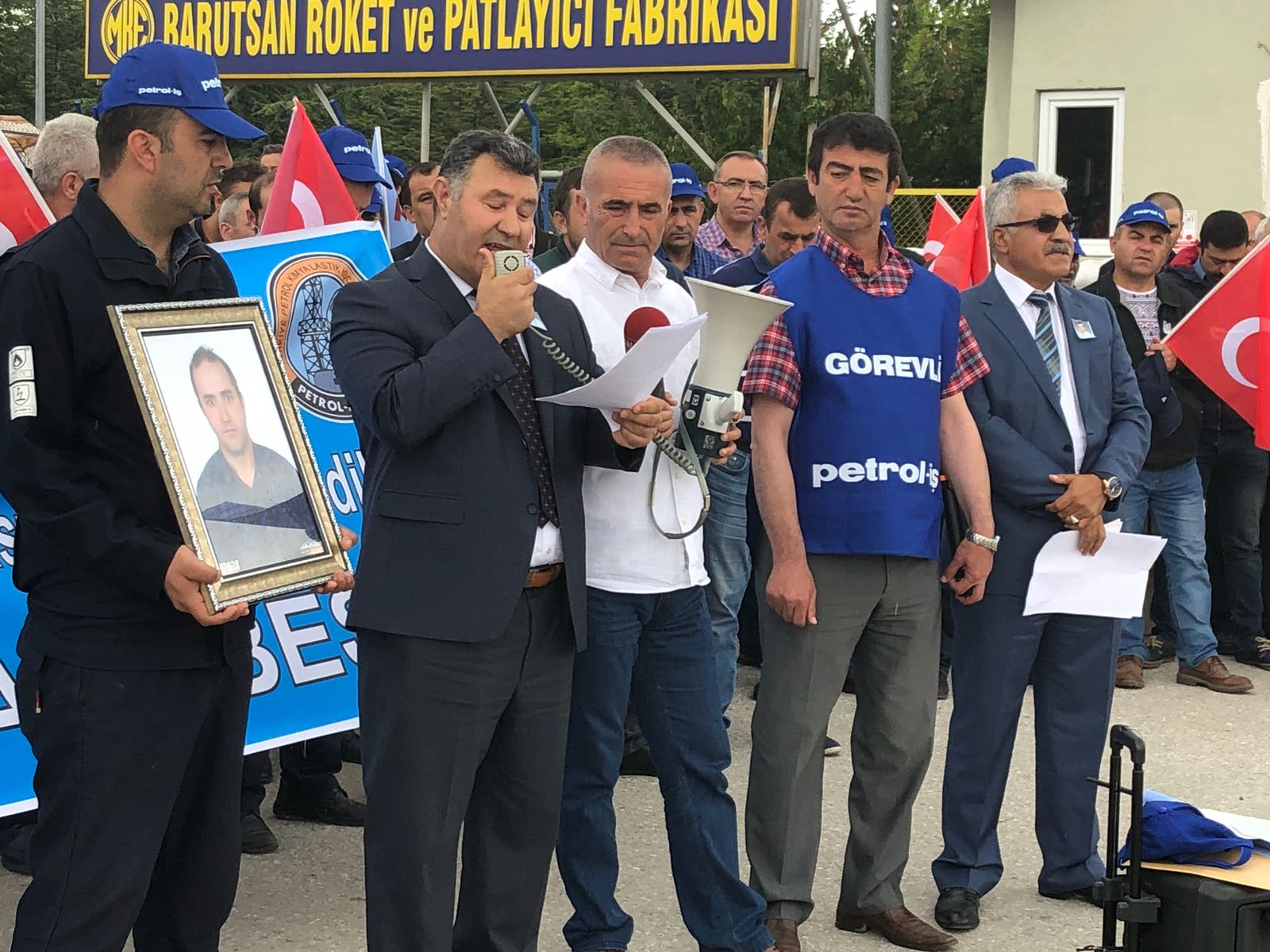 31 Mayıs Perşembe günü Saat 13:00’da Ankara’nın Elmadağ ilçesinde faaliyet gösteren MKEK Barutsan Roket ve Patlayıcı Fabrikasında meydana gelen patlamada hayatını kaybeden üyemiz Emre Özcan ve iş kazalarına önlem alınması için Fabrika nizamiye önünde basın açıklaması yapıldı.