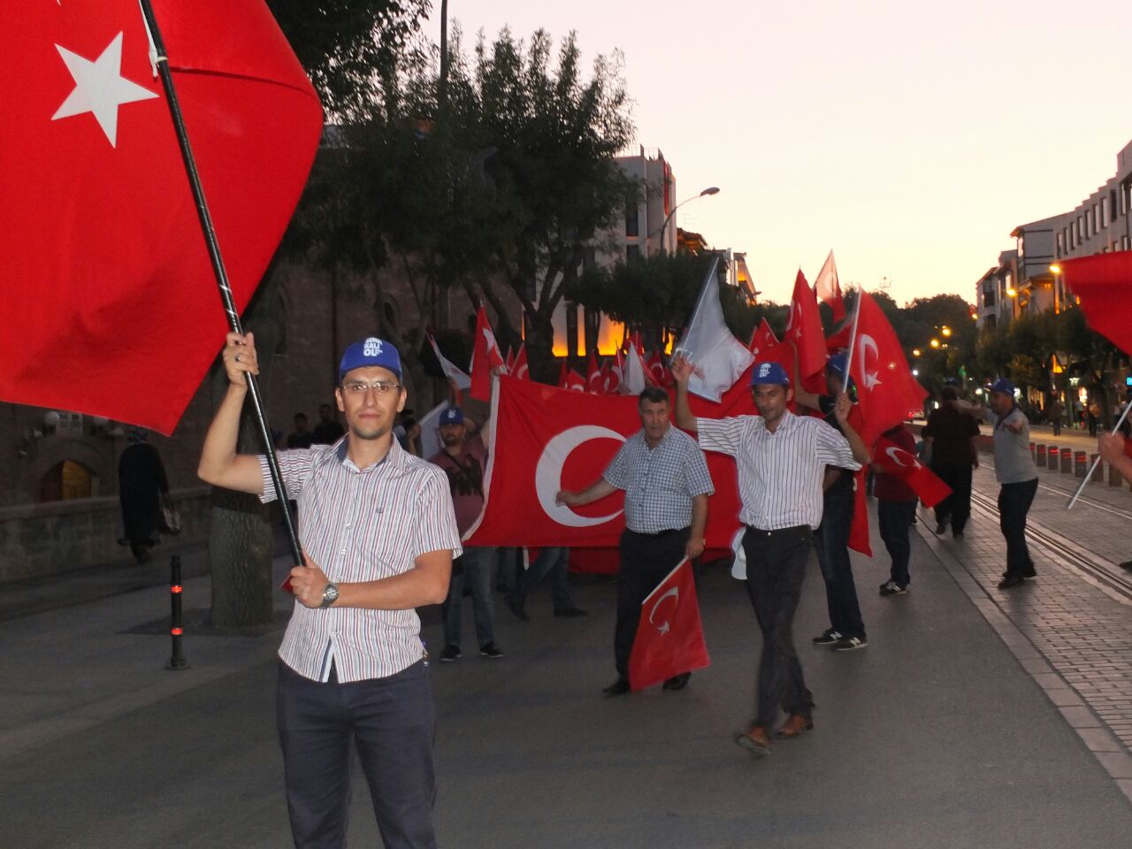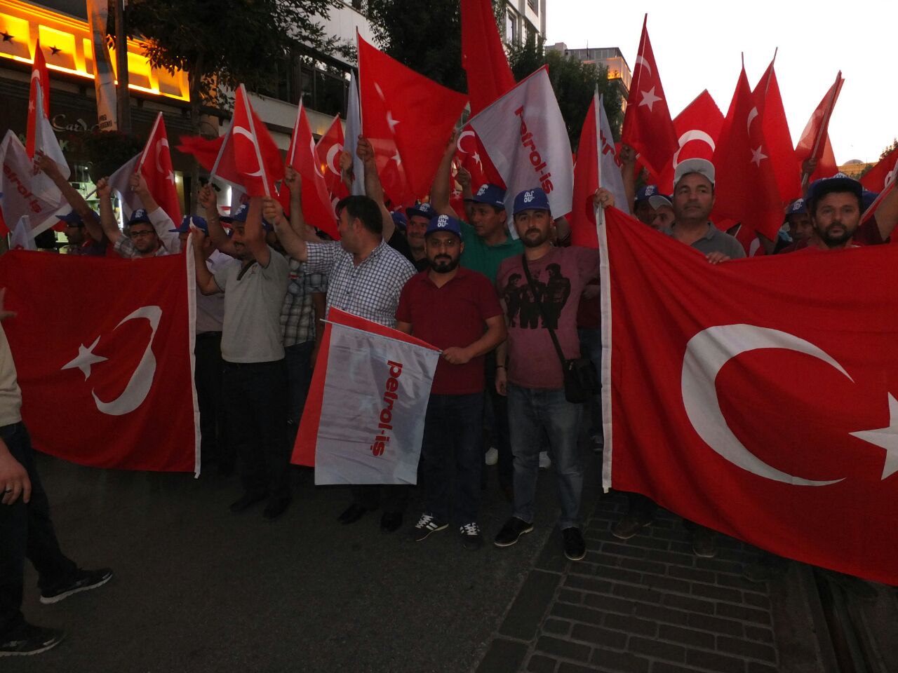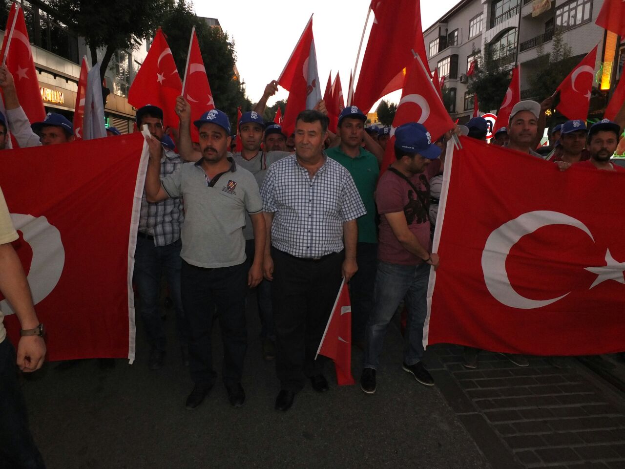 Ankara Şubemiz 15 Temmuz 2016 akşamı milletimizin iradesi yok sayılarak, demokratik düzeni yıkmak amacı ile gerçekleştirilen hain darbe girişimini protesto etmek için Ankara Şube Yöneticilerimiz, Konya Pakpen işyerimizde çalışan üyelerimiz ile birlikte 26 Temmuz Salı günü saat 20.00’de Örgütlenme Bürosu (Zenginler İş Hanı) önünde toplanarak kortej halinde Mevlana Alanı’na yürüdü.