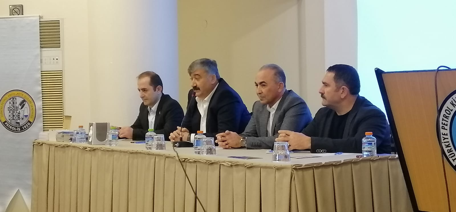 Eğitimde, Genel Örgütlenme ve Eğitim Sekreterimiz Niyazi Recepkethüda, Ankara Şube Başkanımız Ali Haluk Koşar, Başkan Yardımcılarımız Murat Yıldırım ve İsmet Özen (Mali) de yer aldı. Ankara Şube Başkanımız Ali Haluk Koşar’ın selamlaması ile başlayan yeni üye eğitimi, Genel Örgütlenme ve Eğitim Sekreterimizin açış konuşmasıyla devam etti. Niyazi Recepkethüda burada yaptığı konuşmasında Petrol-İş Sendikası’nın eğitimlere her zaman öncelik verdiğini, yaptığı eğitimlerin de bir okul işlevi gördüğünün altını çizdi. Örgütlü işçi sınıfı ve örgütlü toplum yaratılmasında sendikal eğitimlerin hayati öneme sahip olduğunu belirten Recepkethüda, tüm kademelerdeki eğitimlerin aralıksız devam edeceğini belirtti.