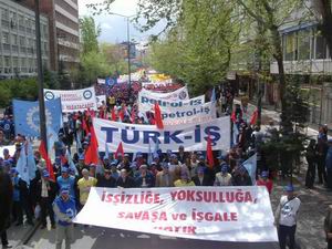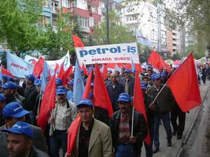 ANKARA’DA 1 MAYIS COŞKUSU01.05.2005 Ankara’da son yılların en kalabalık ve en coşkulu 1 Mayıs’ı kutlandı. Yaklaşık 15 bin emekçi Tandoğan Meydanını doldurdu. Sendikamızın Ankara ve Kırıkkale şubelerinin kitlesel olarak katıldığı 1 Mayıs kutlamaların da özelleştirmeler protesto edildi. Emekçiler ABD Emperyalizmi ve AKP Hükümetinin Emek karşıtı politikaları başta olmak üzere birçok talebini Tandoğan Meydanında haykırarak dile getirdi.Miting’de Konfederasyonumuz TÜRK-İŞ adına bir konuşma yapan Şube Başkanımız Mustafa ÖZGEN “Özelleştirmelerin Ülkemizi Sömürgeye Dönüştüreceğini ve Ülkemiz Emekçilerini Köleleştireceğini Vurguladı”; ve hemen bütün özelleştirme uygulamalarının durdurulmasını istedi. Şube Başkanımızın 1 Mayıs Konuşması:Bugün İşçi Sınıfının Uluslararası Birlik, Mücadele Ve Dayanışma Günü Olan 1 Mayıs’ı Kutlamak Amacıyla Tandoğan Meydanını Dolduran Çok Değerli İşçiler, Kamu Emekçileri, Emekliler Ve Gençler.İşgale, Sermayenin Küresel Saldırılarına, Yoksulluğa Ve Sömürüye Hayır Diyenler, Kardeşçe Bir Arada Yaşamak İsteyenler, Eşit, Özgür, Adaletli Ve Demokratik Bir Türkiye Hedefleyenler, Hepinizi Sendikam Petrol-İş Ve Konfederasyonum Türk-İş Adına Saygıyla Ve Sevgiyle Selamlıyorum.Değerli Emekçiler; Emperyalizm Küreselleşme Maskesiyle Ülkemizde Ve Bölgemizde Gerek Fiili Gerek Ekonomik Gerekse Siyasi İşgallere Devam Etmektedir.Komşumuz Irak’ta İki Yılı Aşan İşgal Hala Devam Ediyor.Bütün Dünyanın Gözleri Önünde, Birleşmiş Milletler Kararı Dahi Olmadan, Uluslar Arası Hukuk Kuralları İhlal Edilerek, Komşumuz Irak İşgal Edilmiştir. Bu İşgalin Gerçek Nedeni Ne Saddam’ın Diktatörlüğü, Ne De Irak’ın Elindeki Nükleer Silahlardır. Bu İşgal Emperyalist Bir Saldırıdır. Bu İşgal Çokuluslu Petrol Şirketlerinin İşgalidir. Bu İşgal Ortadoğu’nun Enerji Kaynaklarını Ele Geçirmenin İşgalidir. Kısacası Bu İşgal Irak Petrollerinin “Özelleştirilmesi Harekâtıdır.”Değerli Dostlar;ABD Emperyalizmi Kanlı Ellerini Ortadoğu’dan Çekmelidir. Bölgede En Kısa Sürede, Sürekli Barış Ve Demokrasi Tesis Edilmelidir. Suriye Ve İran Hedef Gösterilerek Yaratılmak İstenen Yeni Çatışma Ortamlarına Asla İzin Verilmemelidir.AKP Hükümeti İncirlik Üssünün Kullanımını Bir Yıl Daha Uzatmıştır. Bu Karar ABD İşgaline Ortak Olma Kararıdır. Bu Karardan Vazgeçilmeli, Sadece İncirlik Değil Ülkemizdeki Tüm Üsler Kapatılmalıdır.Değerli Emekçiler;Ülkemiz 1 Mayıs 2005’te Şöyle Bir Tabloyla Karşı Karşıyadır.300 Milyar Dolar İç Ve Dış Borç.IMF Ve Dünya Bankası Politikalarına Teslim Edilmiş Bir Ekonomi.Avrupa Birliğine Girmeye Endekslenmiş İç Ve Dış PolitikaAyaklar Altına Alınmış Ulusal Onur Ve Ampulü Yanmadan Patlamış, Balonu Sönmüş, Seçmenini Dahi Hayal Kırıklığına Uğratmış Bir Siyasi İktidar.Türkiye Halkı, Bu Zulme, Bu İşkenceye Mecbur Değildir. Emekçilerin Sınıf Mücadelelerinde Kendilerine Siyasal Bir Rota Belirlemelerinin Zamanı Gelmiştir. Ülkemiz, Önce AKP’den Kurtulmalı, Ardından Emek Yanlısı Siyasi Bir İradeyi İktidar Yapmalıdır.Değerli Emekçiler;Sendikam Petrol-İş Tam 20 Yıldır Özelleştirme İle Mücadele Etmektedir. Özelleştirmelerin Basit Bir Mülkiyet Değişimi Olmadığı, “Sosyal Devleti” Ortadan Kaldırmaya Yönelik Sistematik Bir Operasyon Olduğu Ve Kamusal Alanın Tasfiyesi Olduğu Artık Anlaşılmıştır. Özelleştirmeler İdeolojik Bir Saldırıdır. Bugün, 20 yıldır Kitler Halkındır Satılamaz Diyenlerin Yanında, Sağlık Emekçileri, “ Sağlık Haktır Özelleştirilemez; Hastaneler İşyeri, Hastalar Müşteri Olmasın Diyor.Eğitim Emekçileri, Eşit, Adil Ve Ücretsiz Bir Eğitim Haktır; Okullar İşyeri, Öğrenciler Müşteri Olmasın Diyor.Değerli Emekçiler; Artık Takke Düşmüş Kel Görünmüştür. Bütün Bu Uygulamalar Ülkemizi Ekonomik Ve Siyasal Anlamda Bağımlı Hale Getirerek, Bir Sömürge Ülkesi Yapmaya Ve Bu Ülke Emekçilerini Köle Yapmaya Yönelik Bir Uygulamadır. Biz Asla Köle Olmayacağız. Biz Asla Bu Oyuna Gelmeyeceğiz.Çünkü;Tüpraş Vatandır.Tekel Vatandır.Petkim Vatandır.Telekom Vatandır.Erdemir Vatandır.Seka Vatandır.Milli Piyango Vatandır.Seydişehir Alüminyum Tesisleri Vatandır.Biz Vatan Savunmasında Ne Yapmamız Gerekiyorsa, Halkın Malı Olan Kit’leri Korumak İçin Aynı Mücadeleyi Hayata Geçireceğiz.Buradan Tekrar Haykırıyorum. Ülkemizin Toplumsal Barış’a Her Zamankinden Daha Fazla İhtiyacı Var.Hükümet Bütün Özelleştirme Uygulamalarından Vazgeçmelidir. Eğitim, Sağlık Ve Sosyal Güvenliğe Ayrılan Paylar Arttırılmalıdır. Yağma Ve Talan’a Dönüşen Bu Uygulamalar Ülke Emekçilerini İşsiz, Yoksul Ve Güvencesizliğe sürüklemektedir.Hangi Yurtsever, Yeniden Edinme Değeri 7,5–8 Milyar Dolar Olan, 2004 Yılında Ülke Ekonomisine 8,2 Milyar Dolar Katkı Sağlayan Tüpraş Gibi Bir Sanayii Devini, Bir Kamu Tekelini Satmayı Düşünebilir. Bu Geleceğimizi Satmak, Yarınlarımızı Yok Etmek Demektir.Değerli Emekçiler;Biz Birlikte Üreten Ve Birlikte Yöneten Eşit, Özgür, Adil Ve Refah Bir Türkiye İstiyoruz. Bu Mümkün. Hepinizi Sendikam Petrol-İş Ve Konfederasyonum Türk-İş Adına Saygıyla Ve Sevgiyle Selamlıyorum.Yaşasın 1 Mayıs.Yaşasın İşçilerin Birliği. Petrol-İş Sendikası Ankara Şube Başkanı Mustafa ÖZGEN