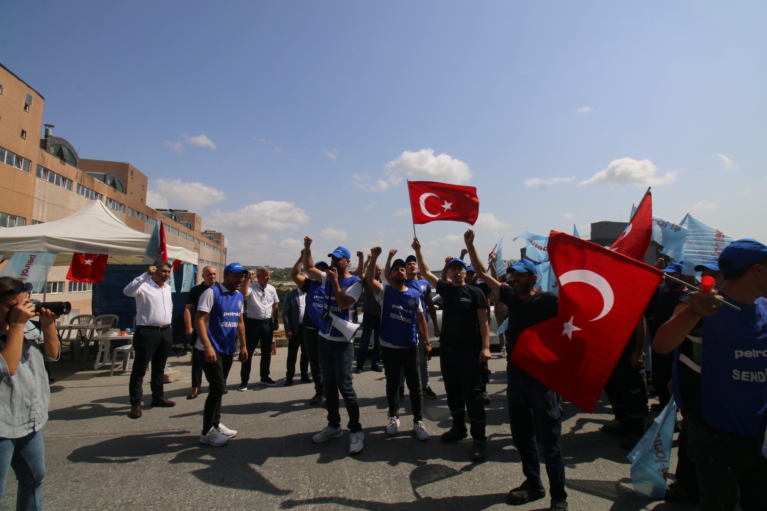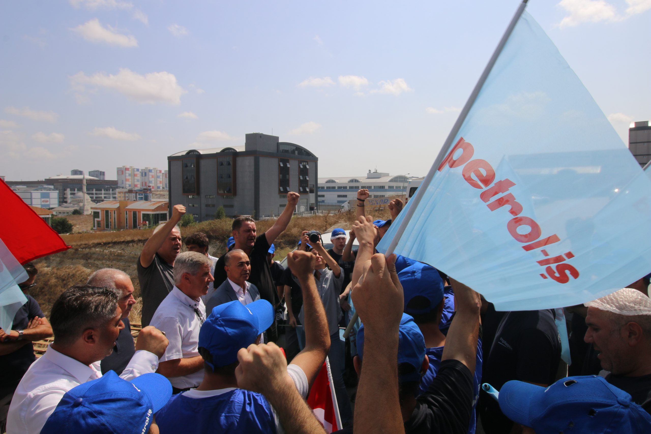 Sendikamız Genel Merkez Yönetimi 5 Eylül Perşembe günü direniş alanını ziyaret ederek üyelerimizle bir araya geldi. Fabrikada çalışmaya devam eden ve öğlen molasında olan üyelerimiz de fabrika dışına çıkarak sendikalarıyla bir araya geldi. Genel Başkanımız Süleyman Akyüz burada yaptığı konuşmasında işvereni bir kez daha pazarlık masasına davet ederek Petrol-İş Sendikası’nın diyaloğa açık olduğu mesajını yineledi. Atılan işçilerin geri alınması ve sözleşme masasına dönülmesinin Petrol-İş’in öncelikli talebi olduğunu belirten Genel Başkan Akyüz işverenin uzlaşmaz tutumunu devam ettirmesi durumunda mücadeleden kaçınmayacaklarını da sözlerine ekledi.