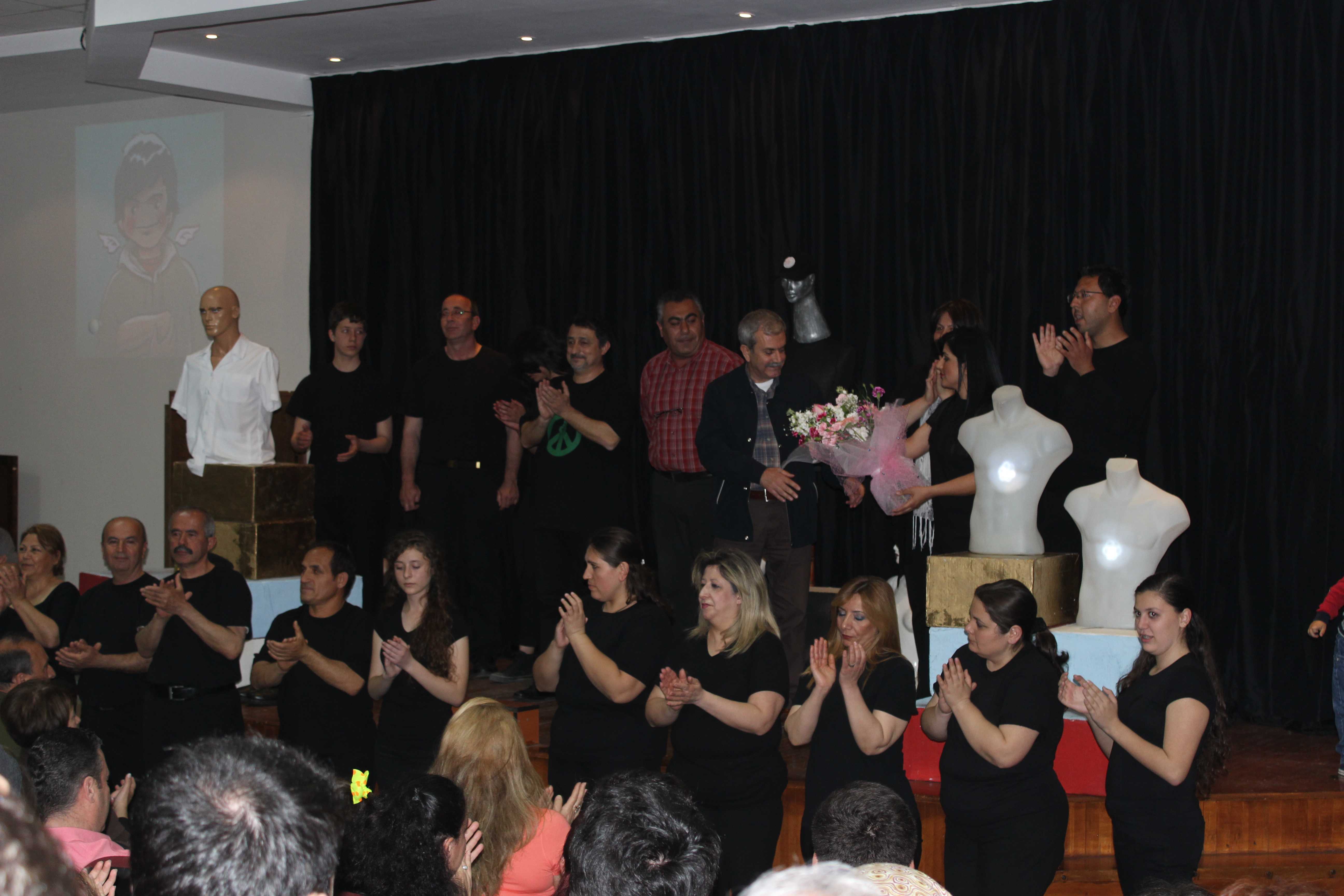 Oyunun ardından sahneye çıkan Genel Mali Sekreterimiz İbrahim Doğangül ve Şube Başkanımız Ahmet Oktay, oyuncuları kutlayarak sanatın ve sanatçının önemine vurgu yaptı.