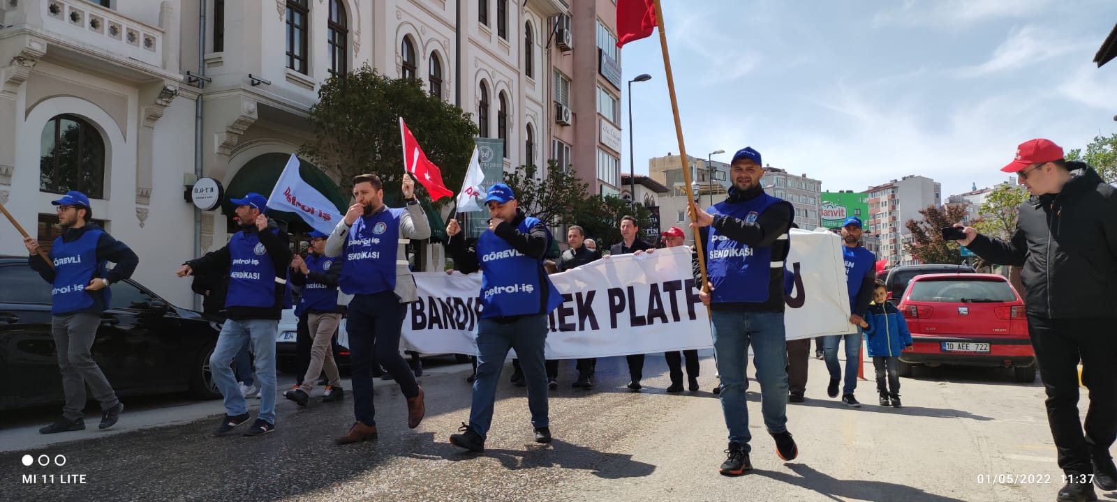 İlk olarak Bandırma İDO iskelesi önünde toplanan sendika, siyasi parti, sivil toplum örgütleri ve vatandaşlar buradan sloganlarla Cumhuriyet Meydanı’na yürüdü. Günün anlam ve önemini belirten konuşmayı Bandırma Emek Platformu Dönem Sözcüsü Serkan Ünlü Yaptı. Açıklamanın ana temasını her geçen gün ağırlaşan ekonomik koşullar, zamlar ve bunlara karşı durabilmek adına örgütlü mücadele etmenin önemi oluşturdu.