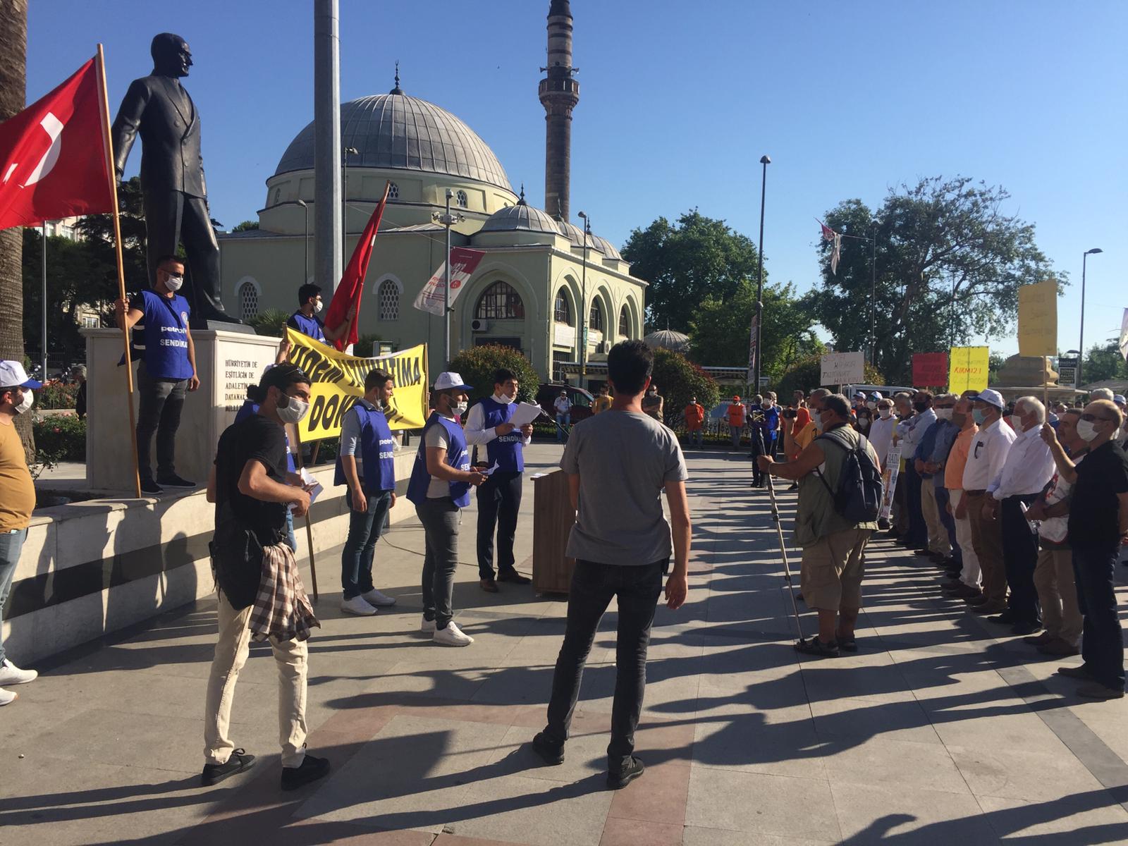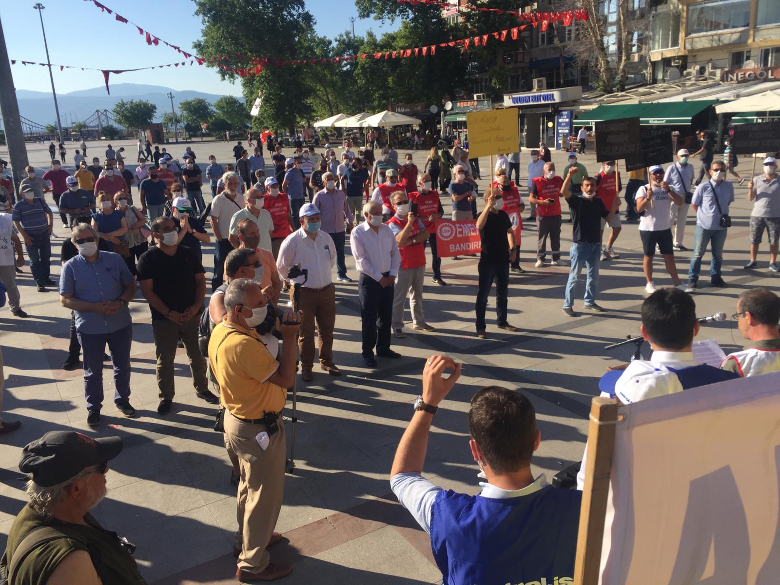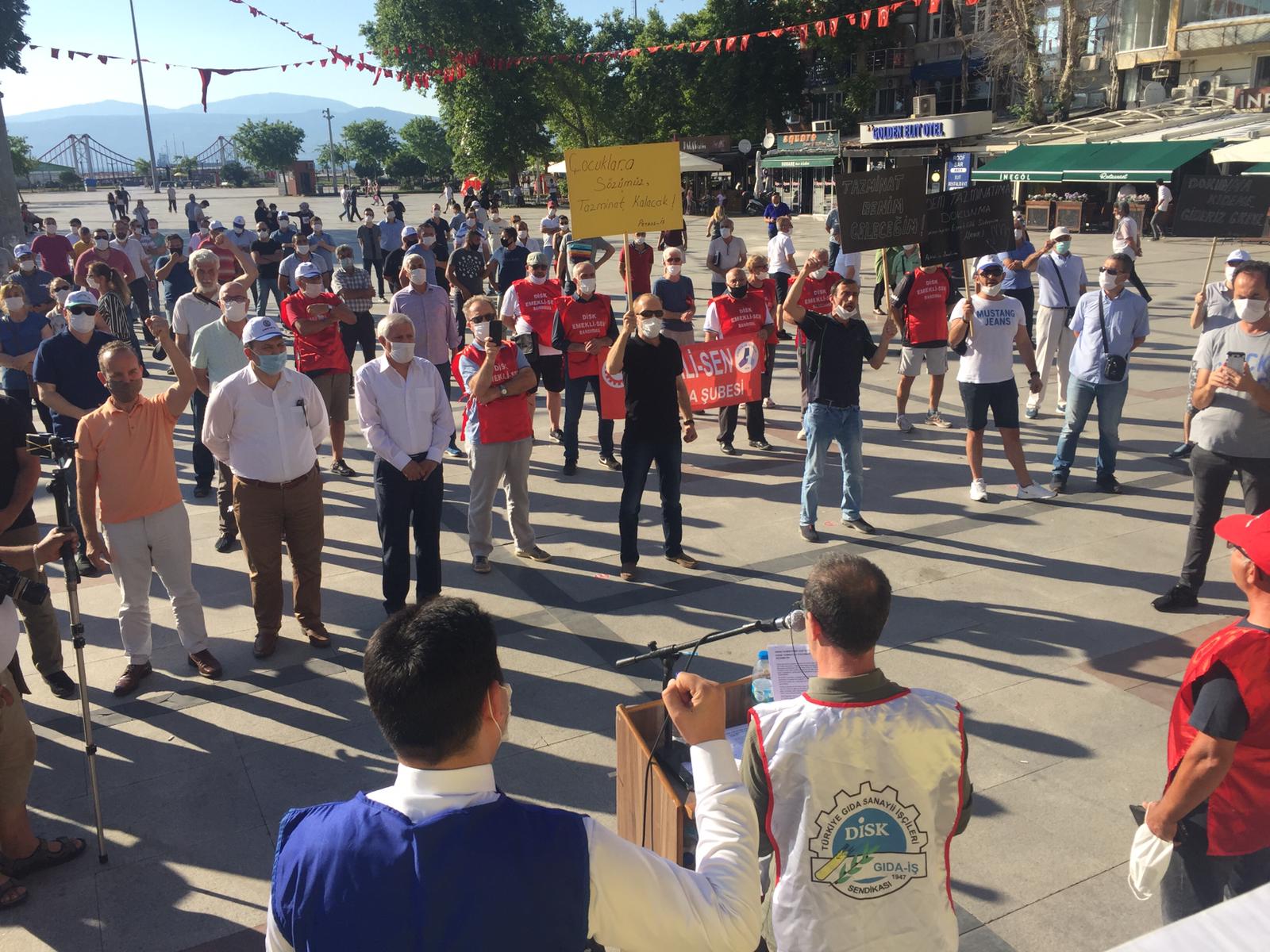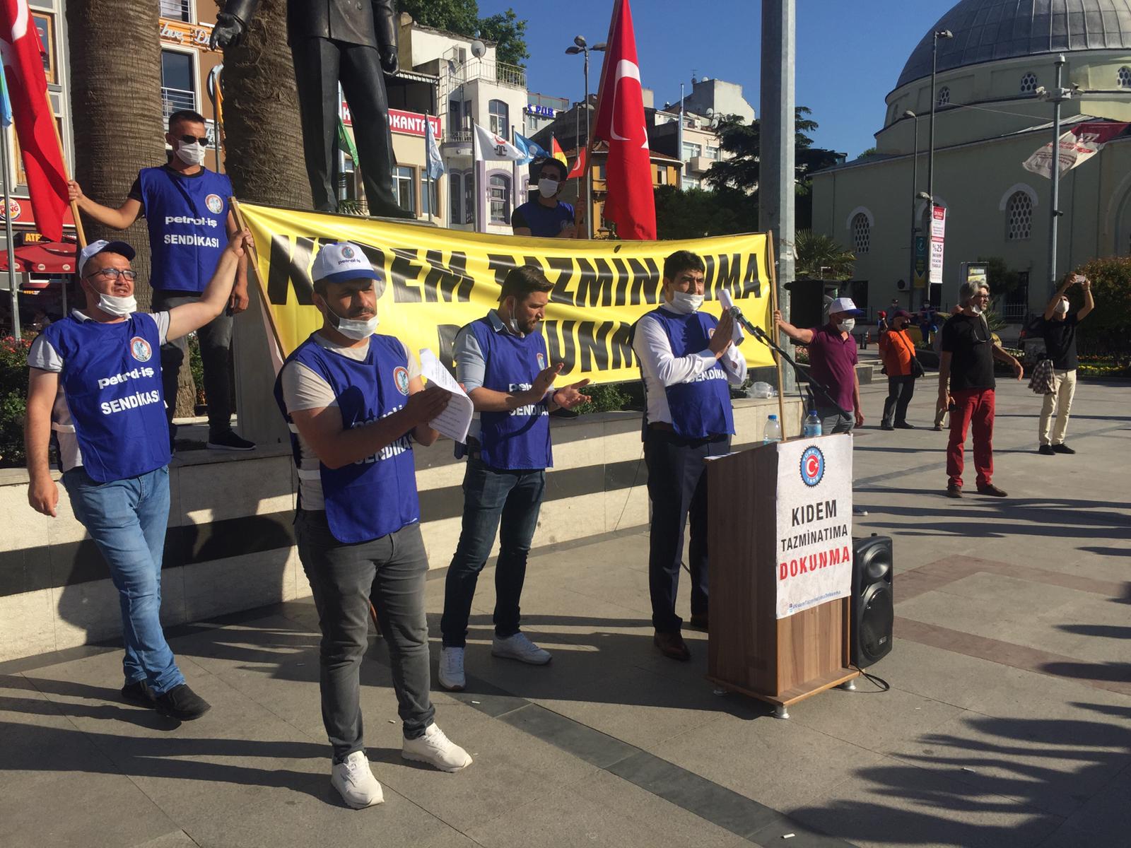 Konfederasyonumuz Türk-İş’in almış olduğu karar neticesinde 29 Haziran Pazartesi günü tüm Türkiye’de emekçiler sokağa çıkarak “Kıdem Tazminatıma Dokunma” dedi. Sendikamız Bandırma Şubesi de, Bandırma’daki Emek Platformu Bileşenleri ile birlikte Pazartesi saat 18.00’de biraraya gelerek, kıdem tazminatında herhangi bir geriye gidişe dur demek için basın açıklaması yaptı. Cumhuriyet Meydanı’nda, sosyal mesafe kuralını gözeterek yapılan basın açıklamasını Bandırma Şube Başkanımız İlyas Satırlı okudu.