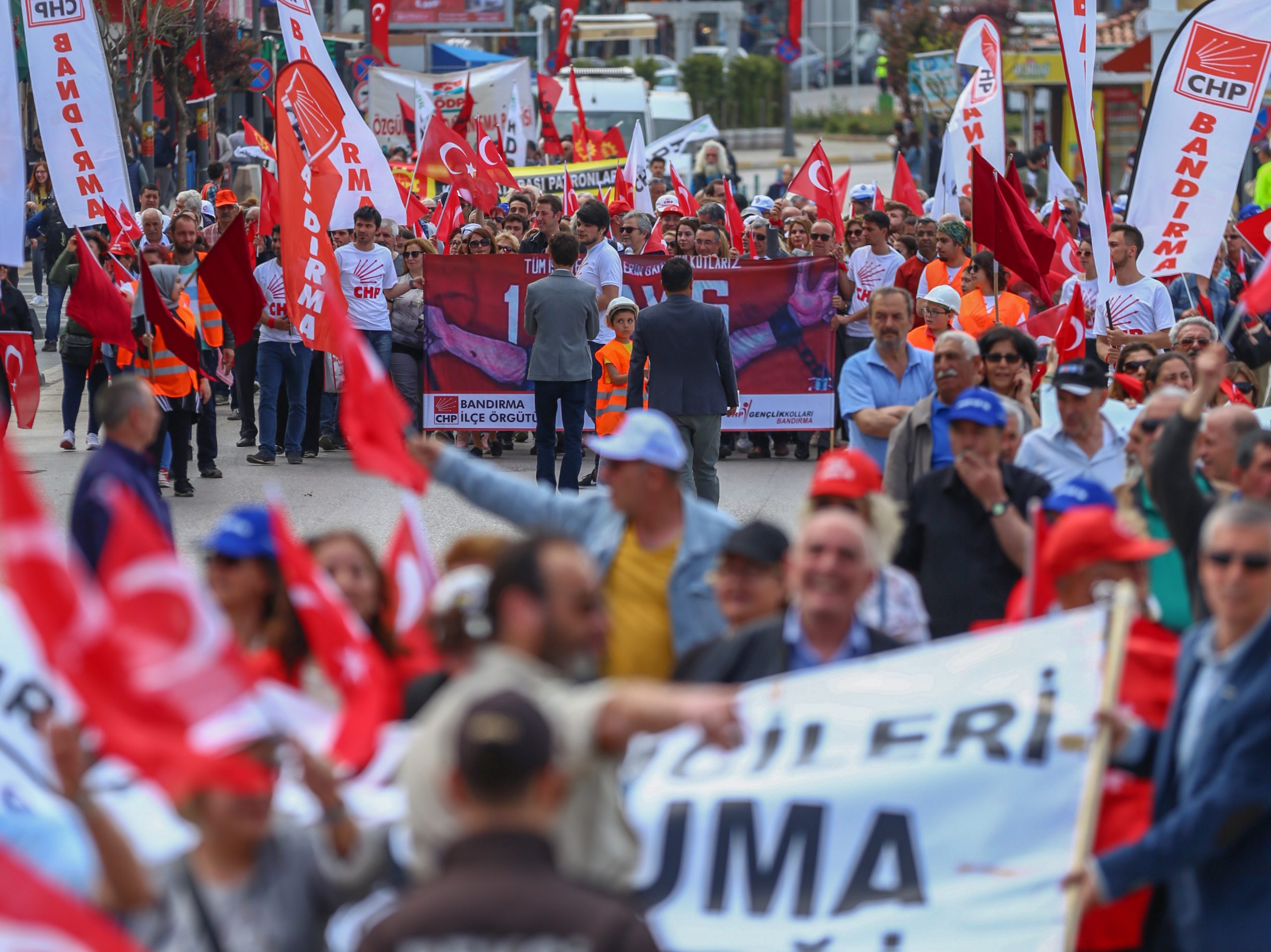 Bandırma Şubemizde düzenlenen üyelerimizin yoğun katılım sağladığı ‘1 Mayıs Emek ve Dayanışma Günü’, renkli görüntülere sahne oldu. İDO iskelesi önünde toplanan yaklaşık 3 bin kişi, kortej oluşturarak 200 metre uzaklıktaki Cumhuriyet Meydanı’na yürüdü. Bandırma Emek ve Demokrasi Platformu’nun düzenlediği 1 Mayıs kutlamalarında aileler, çocuklarını da miting alanına getirdi, onlarla birlikte flamalar ve bayraklar salladı.