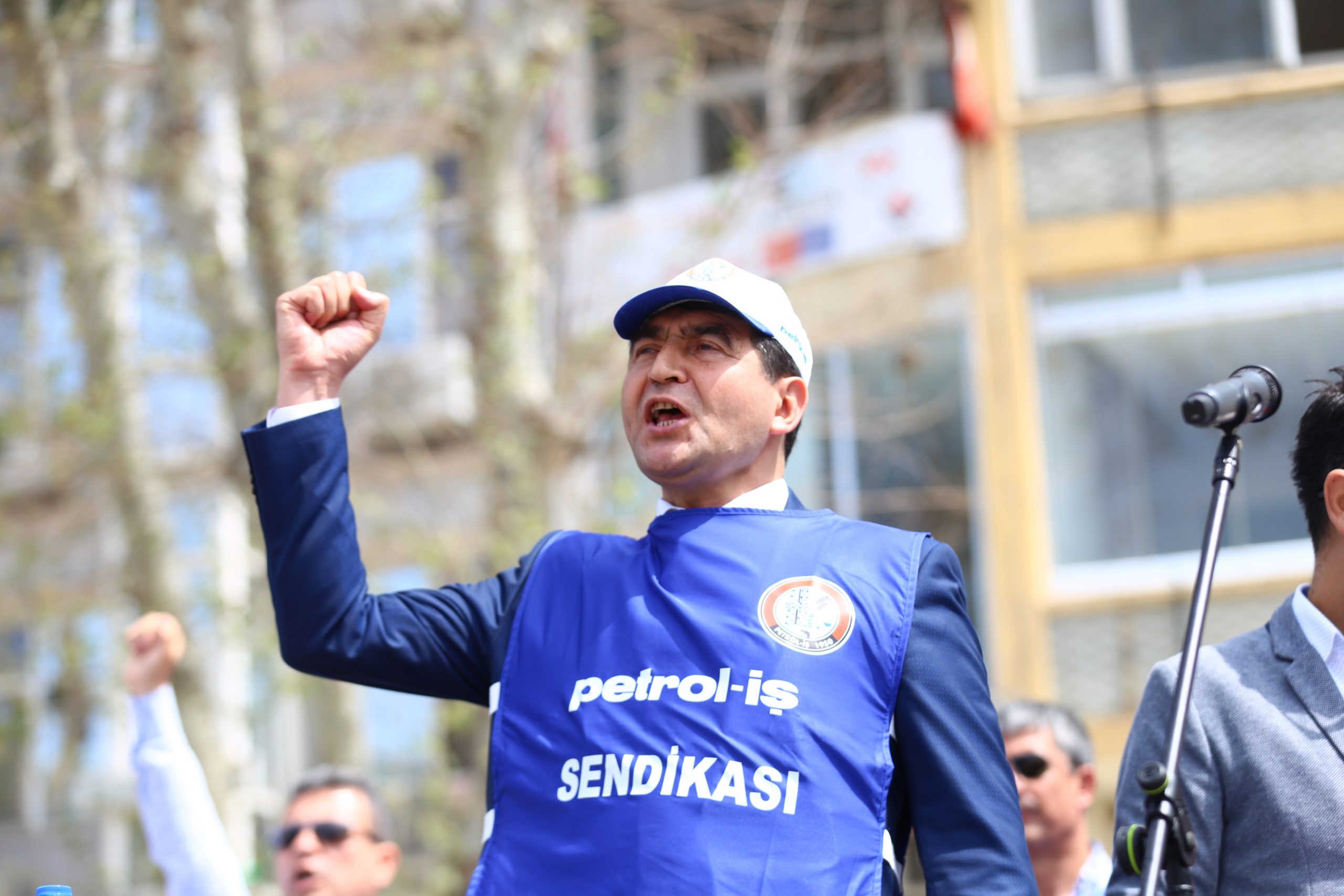 Konuşmasının devamında günübirlik politikalar, özelleştirmeler, emek karşıtı düzenlemeler nedeniyle bugün işsizlik ve yoksulluğun had safhaya ulaştığını dile getiren Satırlı, “İşsizlerin gerçekte sayısı yedi buçuk milyonu geçmiş, işsizlik oranlarında rekor kırılmıştır. İş bulabilen şanslı emekçilerin çoğu ise asgari ücrete talim etmektedir. Taşeron çalışma yaygınlaşmaktadır. İş cinayetleri artmaktadır. 1 Mayıs’ta düşük ücretlere, sefalet ücreti olarak belirlenen asgari ücrete, kötü çalışma koşullarına, iş cinayetlerine, özelleştirme ve serbestleştirme politikalarına karşı sesimizi yükseltiyoruz. İşçiyiz, emekçiyiz, onurumuzla ve insana yaraşır bir şekilde çalışmak istiyoruz” dedi.