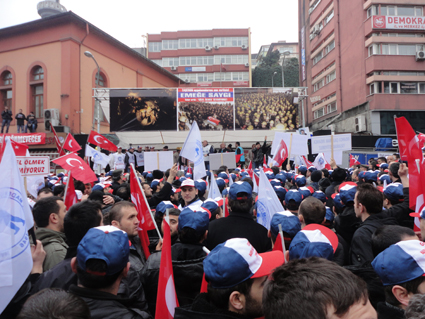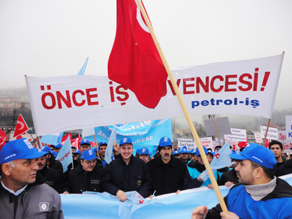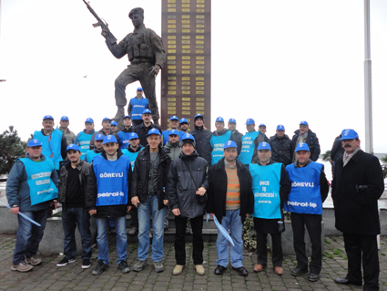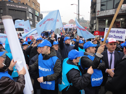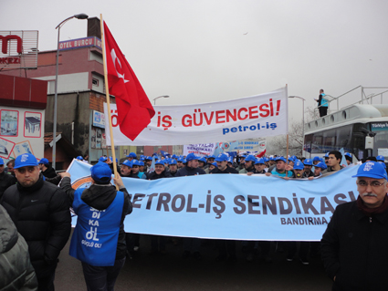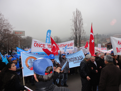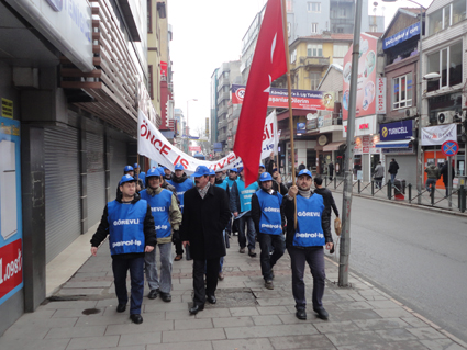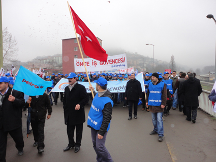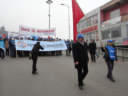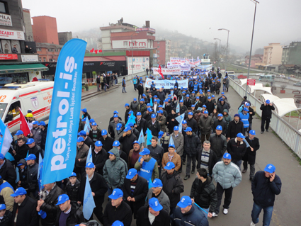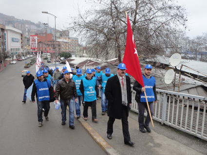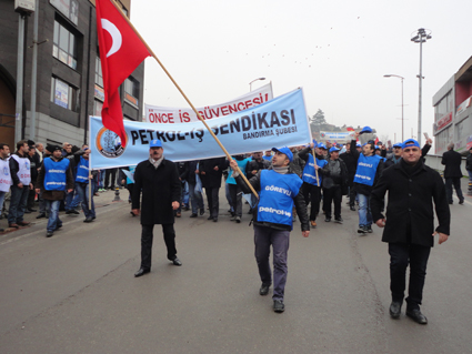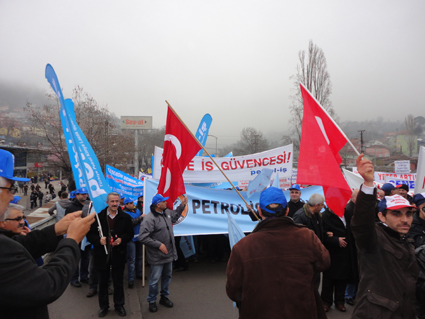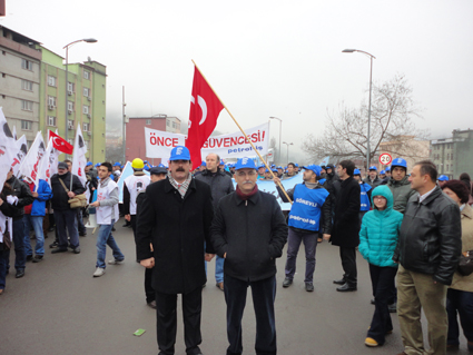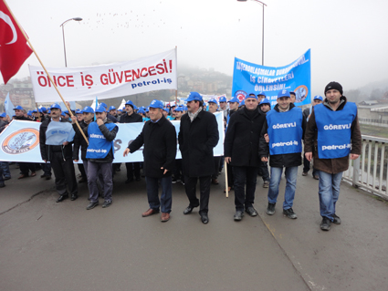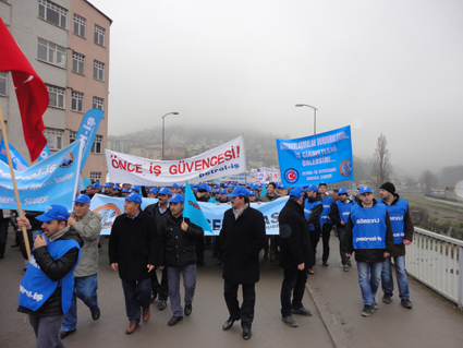 GMİS, yaşanan son kazanın ardından insanca çalışma koşulları ve insanca yaşam için eylem çağrısı yaparak taşeron uygulamalarına son verilmesi talebiyle 27 Ocak 2013 Pazar günü Zonguldak’ta “Emeğe Saygı” Mitingi düzenlendi. Sendikamız adına Genel Başkanımız Mustafa Öztaşkın ve Genel Sekreterimiz Ali Ufuk Yaşar’ın da katıldığı mitinge, Petrol-İş Ankara Şubemiz, Bandırma Şubemiz, Kocaeli Şubemiz ile Düzce Örgütlenme Bürosu’na bağlı üyelerimiz de yoğun bir katılımla destek vermiştir. “EMEĞE SAYGI ve TAŞERONA HAYIR” mitinginde, Zonguldak İstasyon Caddesi’nde toplanan binlerce kişi Madenci Anıtı Alanı’na yürüdü. Yürüyüş sırasında “Madenci Feneri Sönmeyecek, Yaşasın Emek Dayanışması, Emeğin Başkenti Şanlı Zonguldak, Yaşasın İşçilerin Birliği, Yaşasın Sınıf Dayanışması, Zafer Direnen Emekçinin Olacak, Susma Haykır, Taşerona Hayır, Maden İşçisi Demokrasi Bekçisi, Susma Sustukça Sıra Sana Gelecek, Geliyor, Geliyor, Madenciler Geliyor, Emeğe Uzanan Eller Kırılsın, İşçi Alınsın, Üretim Artsın Direne Direne Kazanacağız, Emekçiyiz Haklıyız, Kazanacağız” sloganları atıldı.