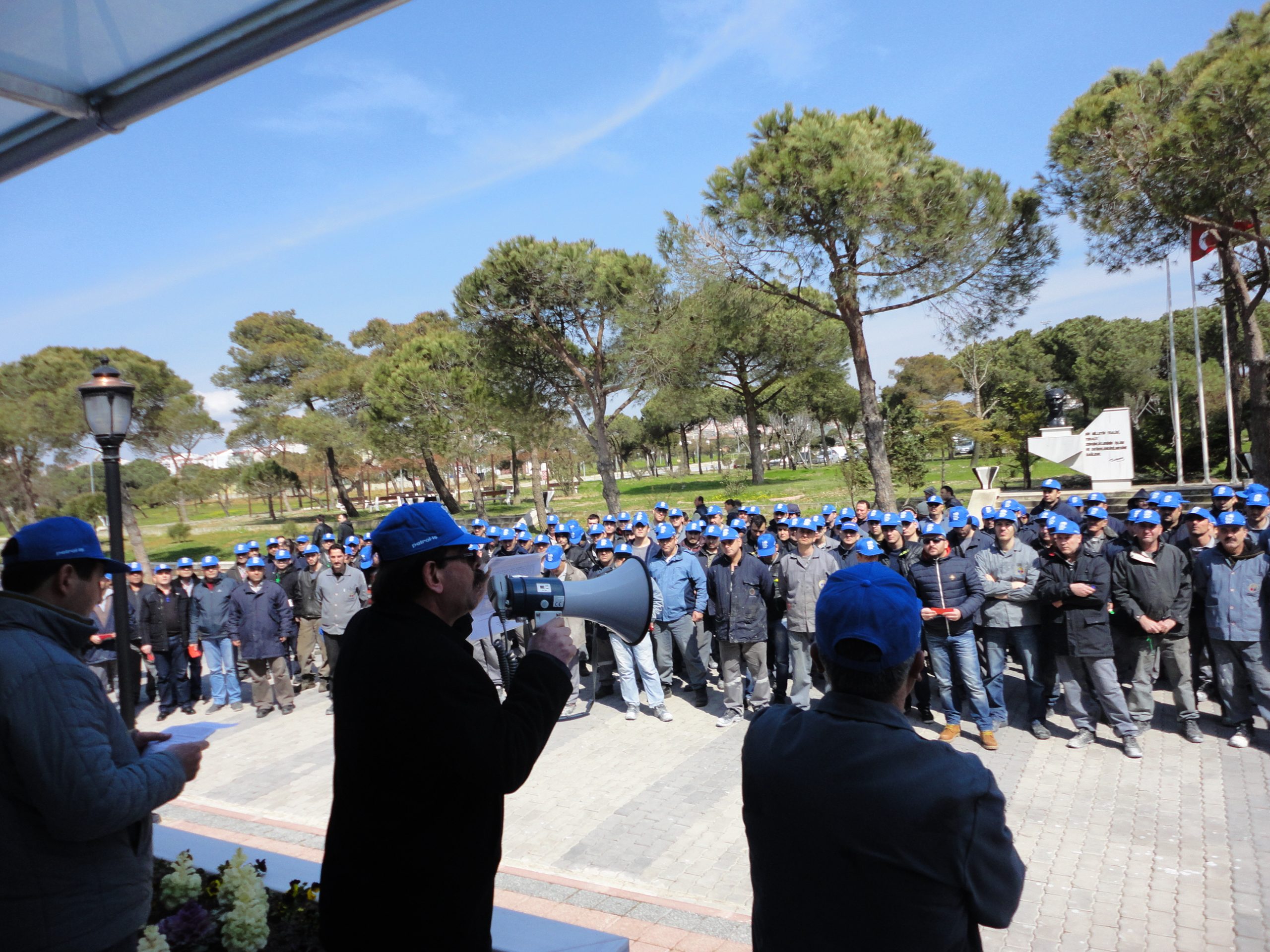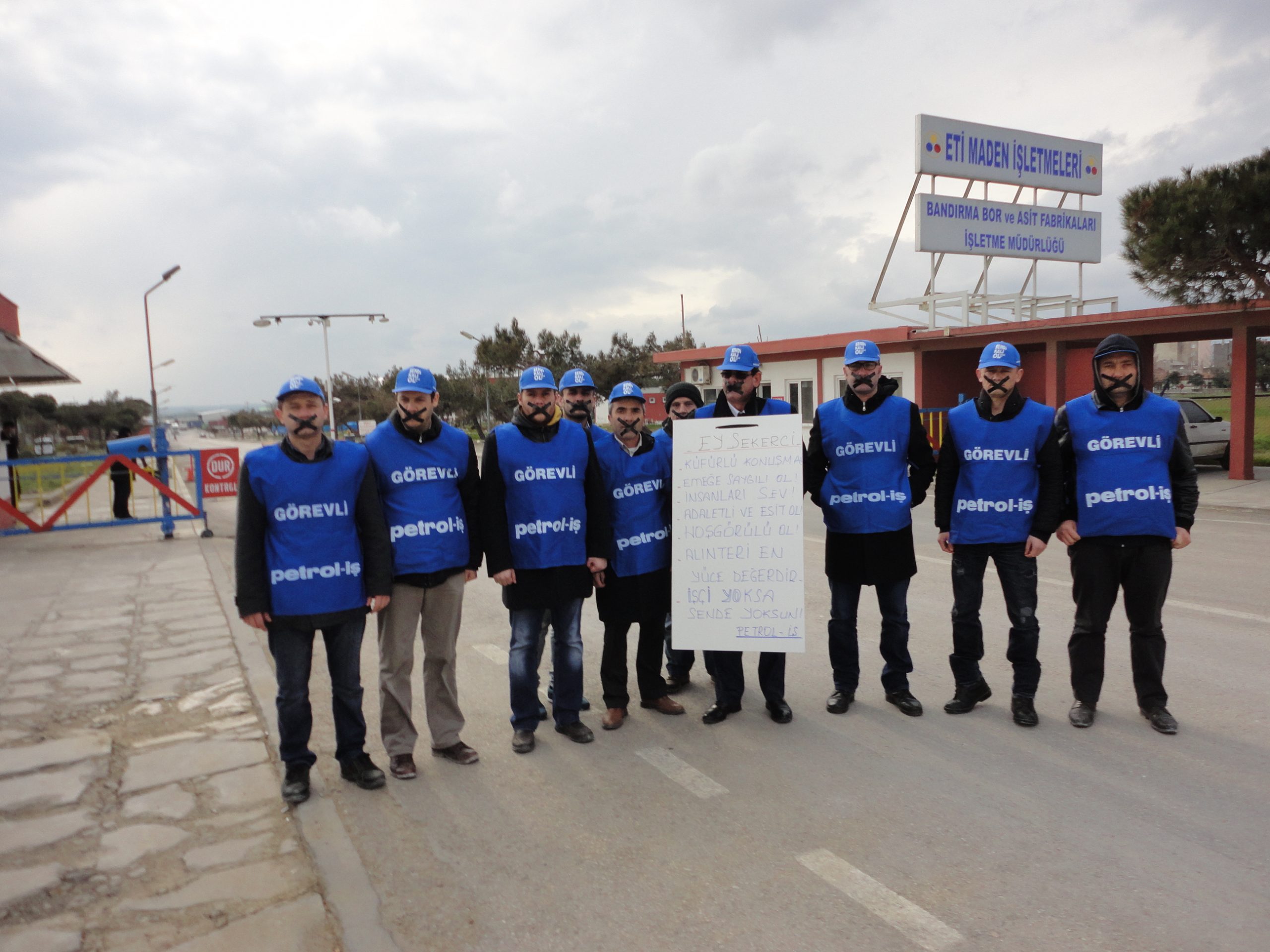 Eti Maden işletme müdürünün işçilere karşı haksız tutumu 19 Mart Perşembe günü Petrol-İş üyelerince işyerinde protesto edildi. Bandırma şube yönetiminin de katıldığı eyleme Bandırma Şube Başkanı İsmail Kayan bir açıklama yaptı.