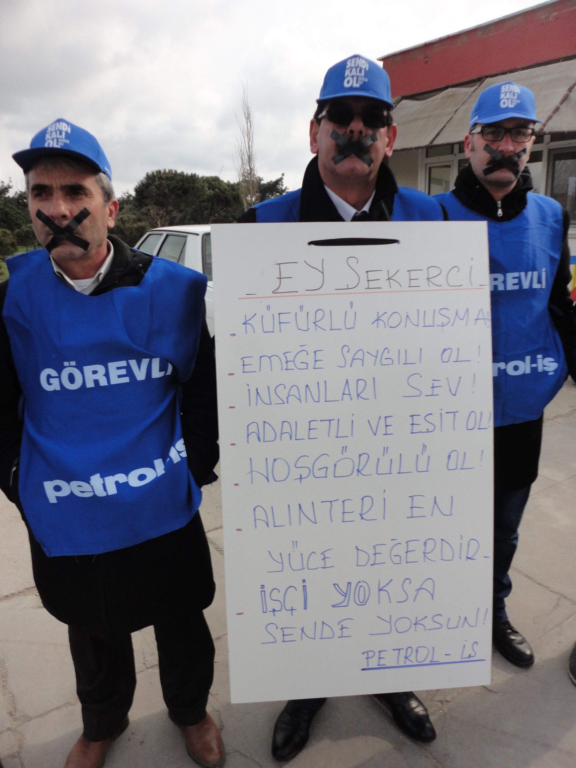 Eti Maden işletme müdürünün haksız tutumuna karşı yapılan eylemler daha sonraki günlerde de devam etti. İşletme müdürlüğü önünde yapılan “Sessiz eylem”e Petrol-İş Sendikası Bandırma şube yönetimi ve üyelerimiz katıldı.