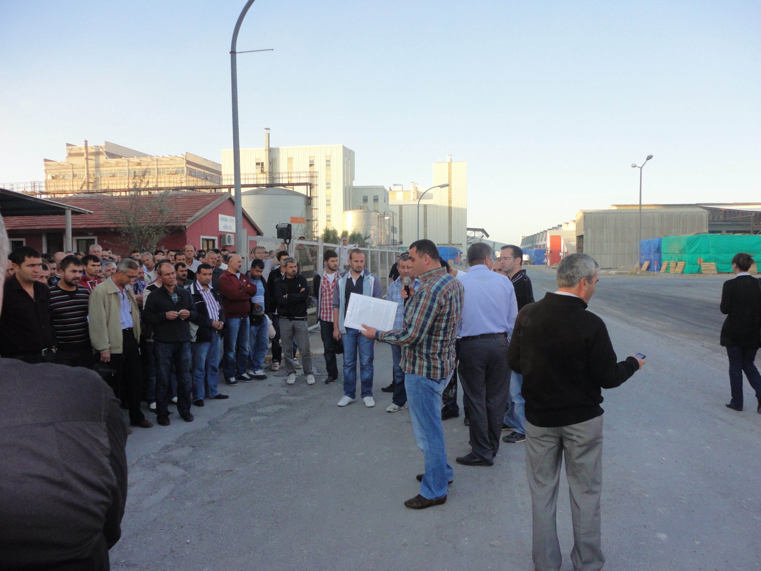 Bandırma Şube Başkan Yardımcısı İsmail Eryılmaz’ın üyelerimize hitaben SGBP’nin hazırladığı bildiriyi okumasının ardından çalışanlar toplu halde alkışlarla yasa tasarısını protesto ettiler ve 1 saat iş bıraktılar. Daha sonra alkışlarla fabrika kapısına yürüyerek kart bastılar.