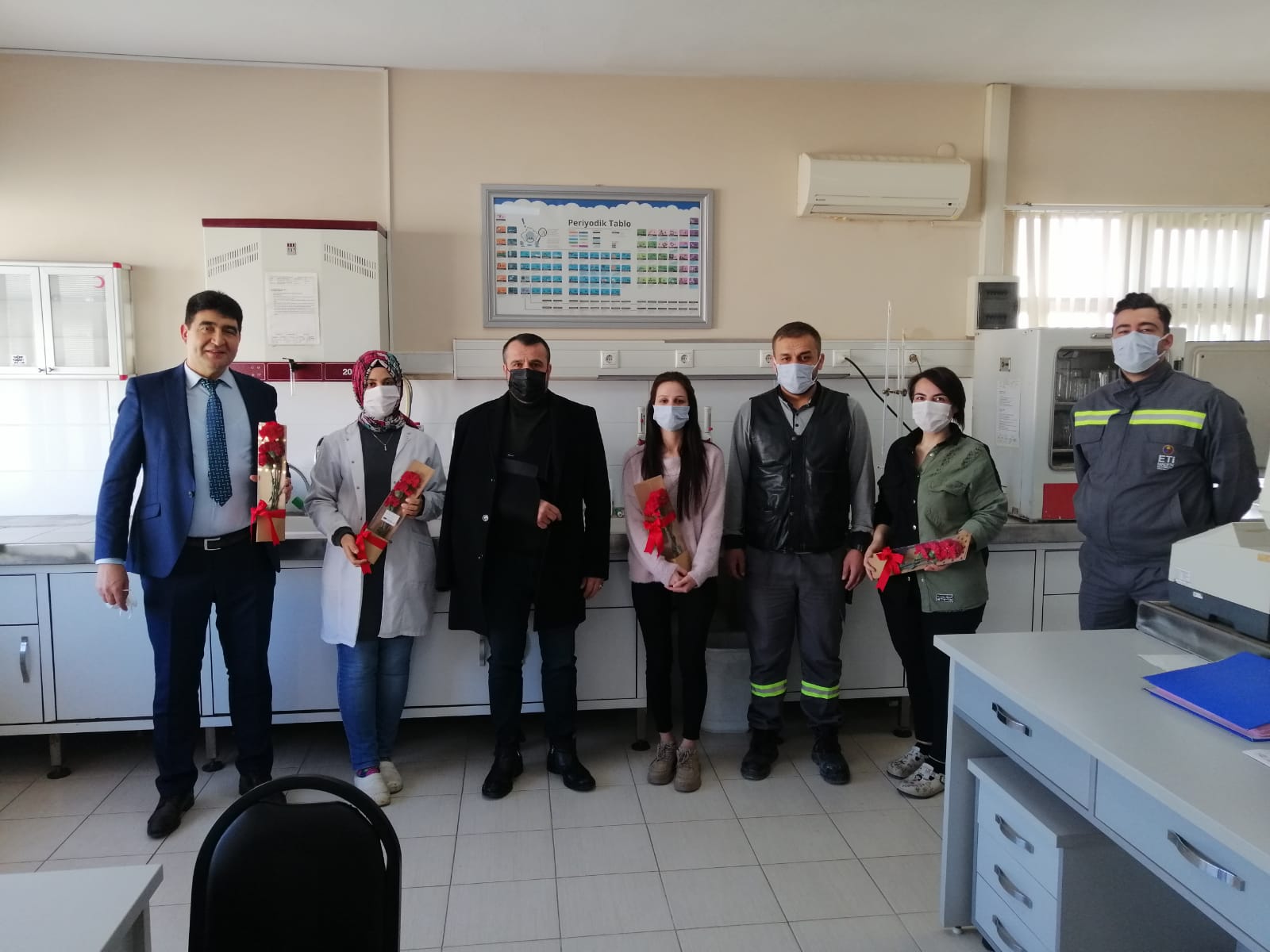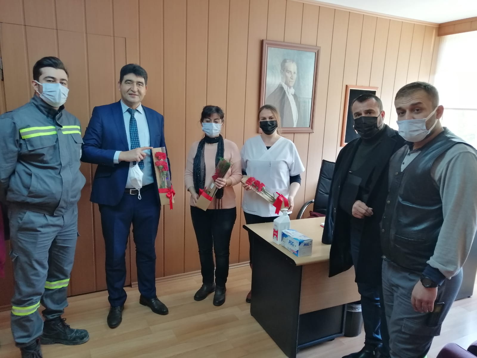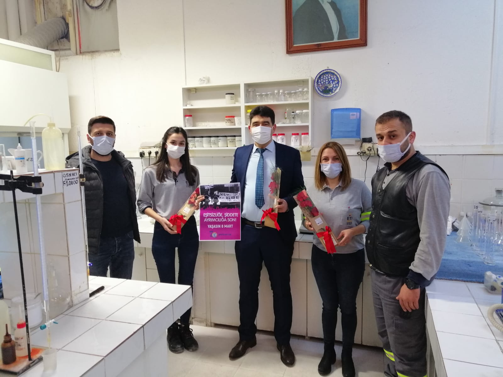 Kadınların Uluslararası Mücadele ve Dayanışma Günü 8 Mart, Bandırma Şubemizin örgütlü olduğu Etimaden ve Hidrojen Peroksit işyerlerinde kutlandı. Şube Başkanımız İlyas Satırlı, Başkan Yardımcımız Ayhan Çetin ve Etimaden işyeri Baştemsilcimiz Faruk Güldalı ile Hidrojen Peroksit Baştemsilcimiz Ergün Uzunoğlu, kadın üyelerimizin 8 Mart’ını tebrik ederek, 8 Mart’ın birlik ve dayanışmayı güçlendirmesi temennisinde bulundular.