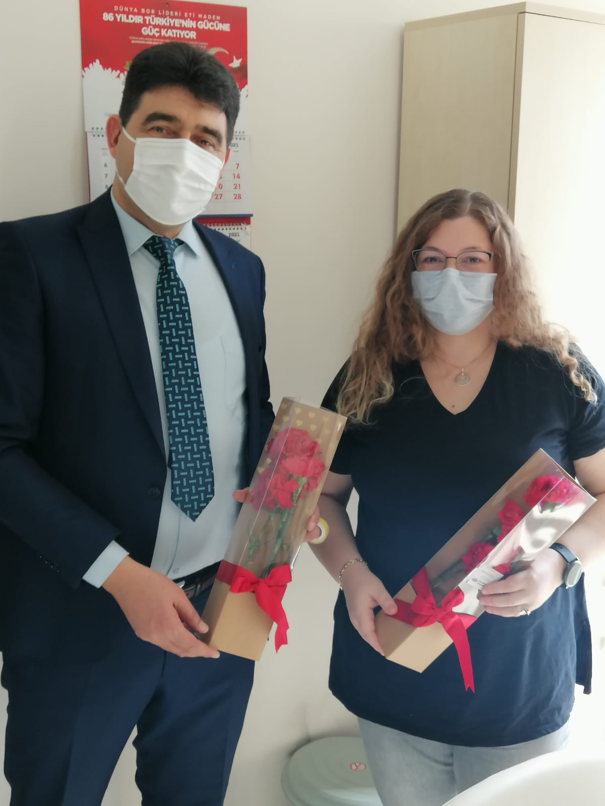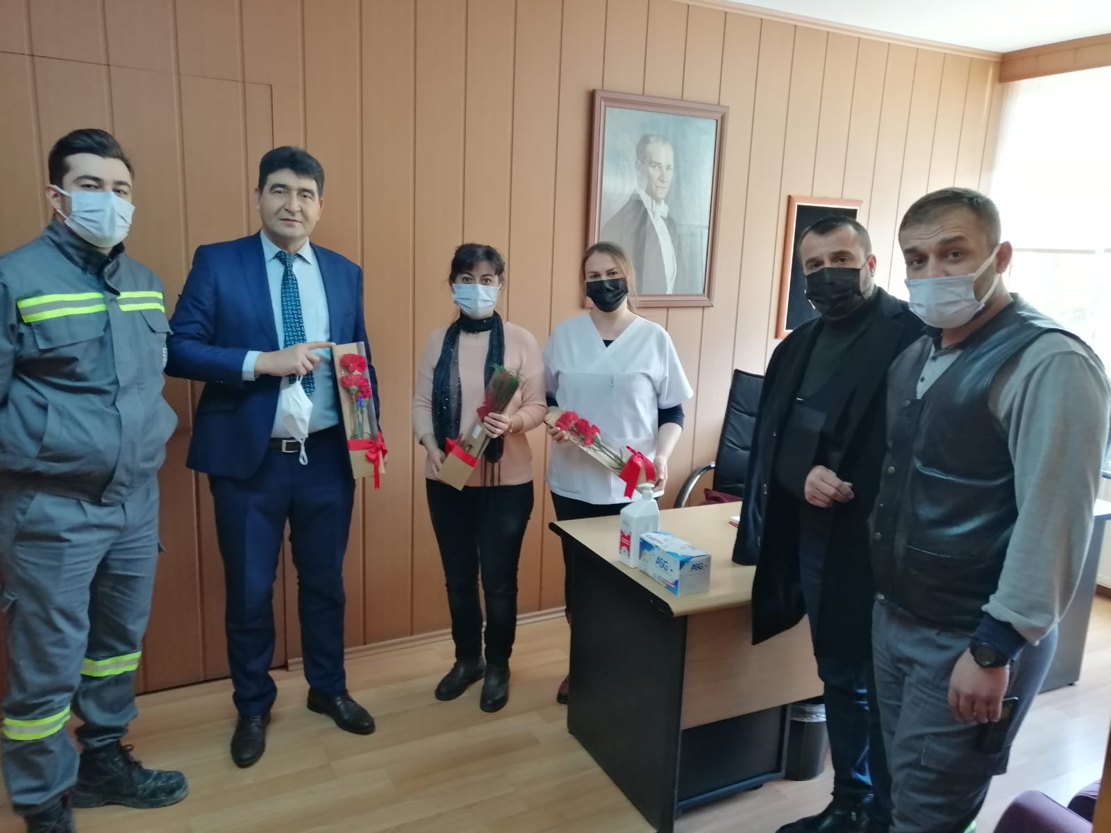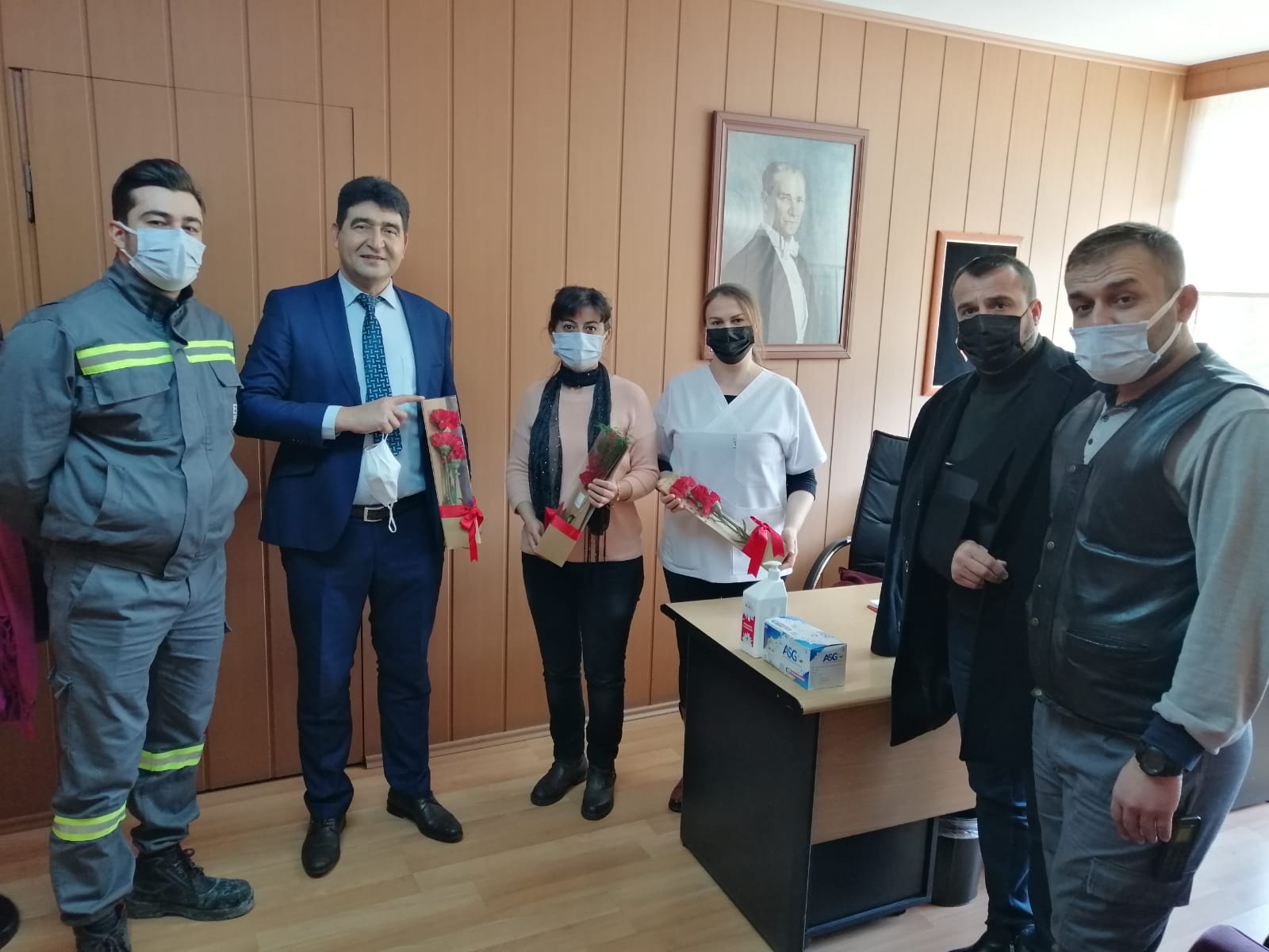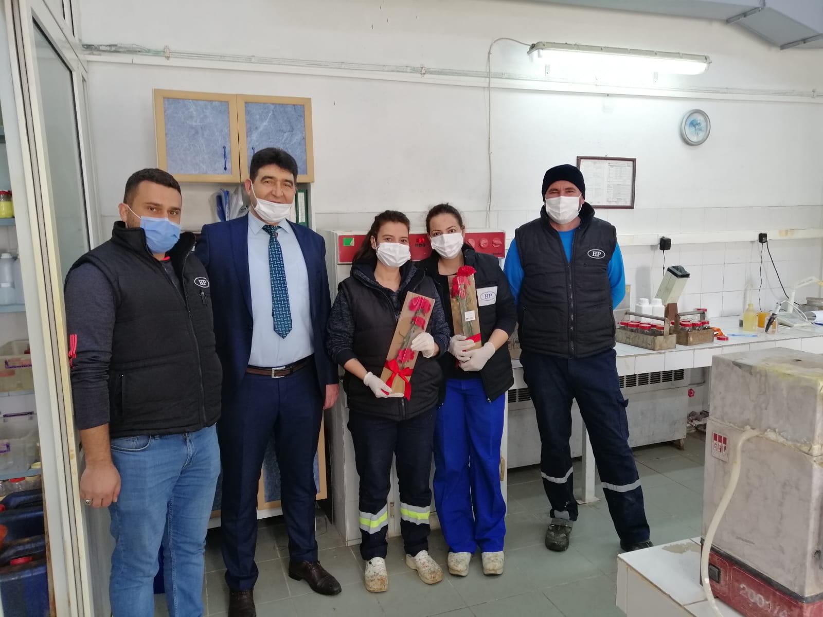 Kadınların Uluslararası Mücadele ve Dayanışma Günü 8 Mart, Bandırma Şubemizin örgütlü olduğu Etimaden ve Hidrojen Peroksit işyerlerinde kutlandı. Şube Başkanımız İlyas Satırlı, Başkan Yardımcımız Ayhan Çetin ve Etimaden işyeri Baştemsilcimiz Faruk Güldalı ile Hidrojen Peroksit Baştemsilcimiz Ergün Uzunoğlu, kadın üyelerimizin 8 Mart’ını tebrik ederek, 8 Mart’ın birlik ve dayanışmayı güçlendirmesi temennisinde bulundular.