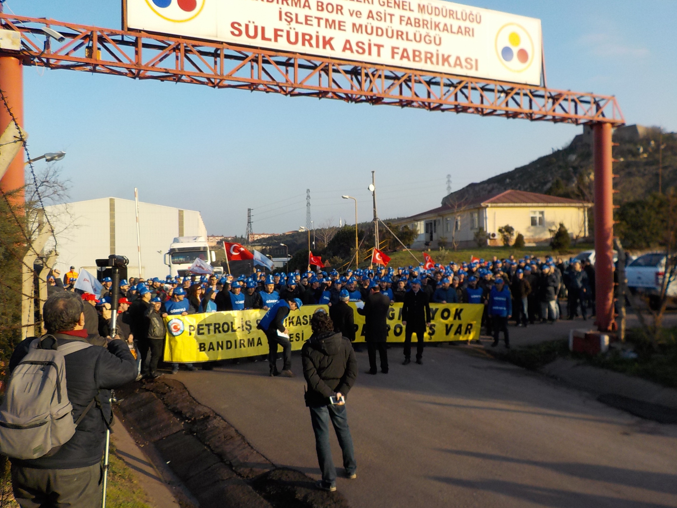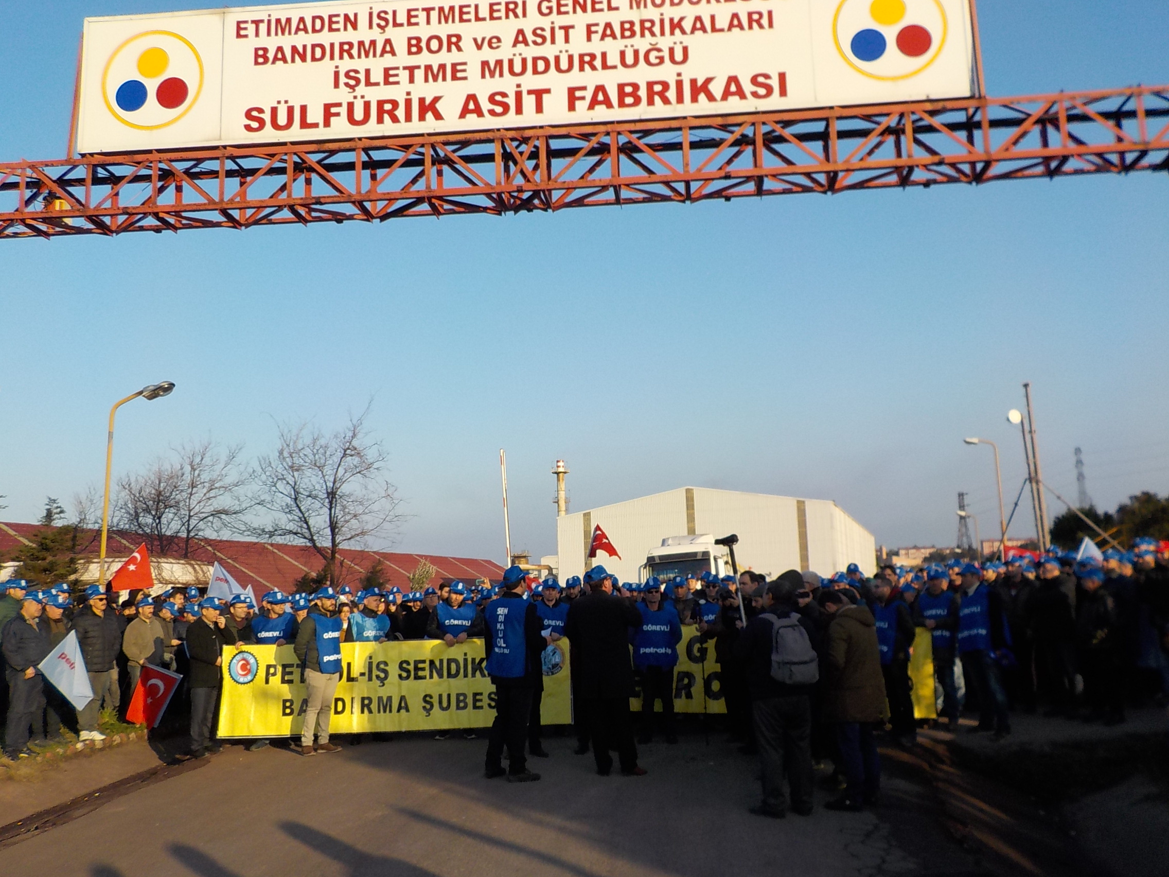 Bandırma Şubemizin örgütlü olduğu Eti Maden İşletmeleri Genel Müdürlüğü’ne bağlı Bandırma Sülfürik Asit Fabrikası ve Boraks Fabrikasında çalışan üyelerimiz 6 Şubat tarihinde bir protesto eylemi gerçekleştirdiler. Sülfürik Asit Fabrikası önünde toplanan Petrol-İş üyeleri, Şube Başkanı İsmail Kayan’ın yaptığı basın açıklamasının ardından yürüyüşe başladı. Yaklaşık 500 kişinin katıldığı, Sülfürikasit fabrikasından kent merkezine doğru gerçekleşen 5 kilometrelik yürüyüşte işçiler sloganlarla seslerini Bandırma’ya ve tüm Türkiye’ye duyurmaya çalıştı.