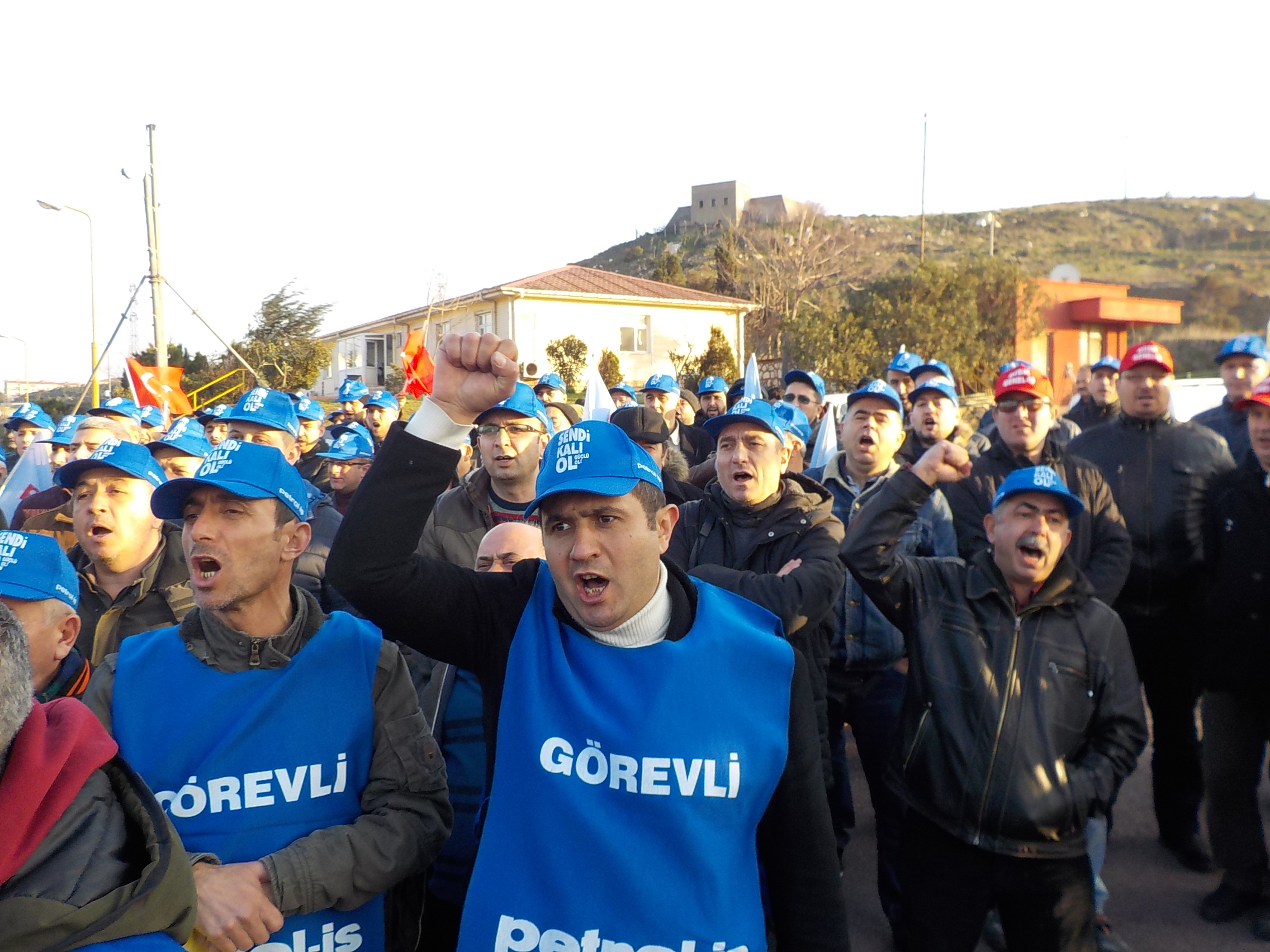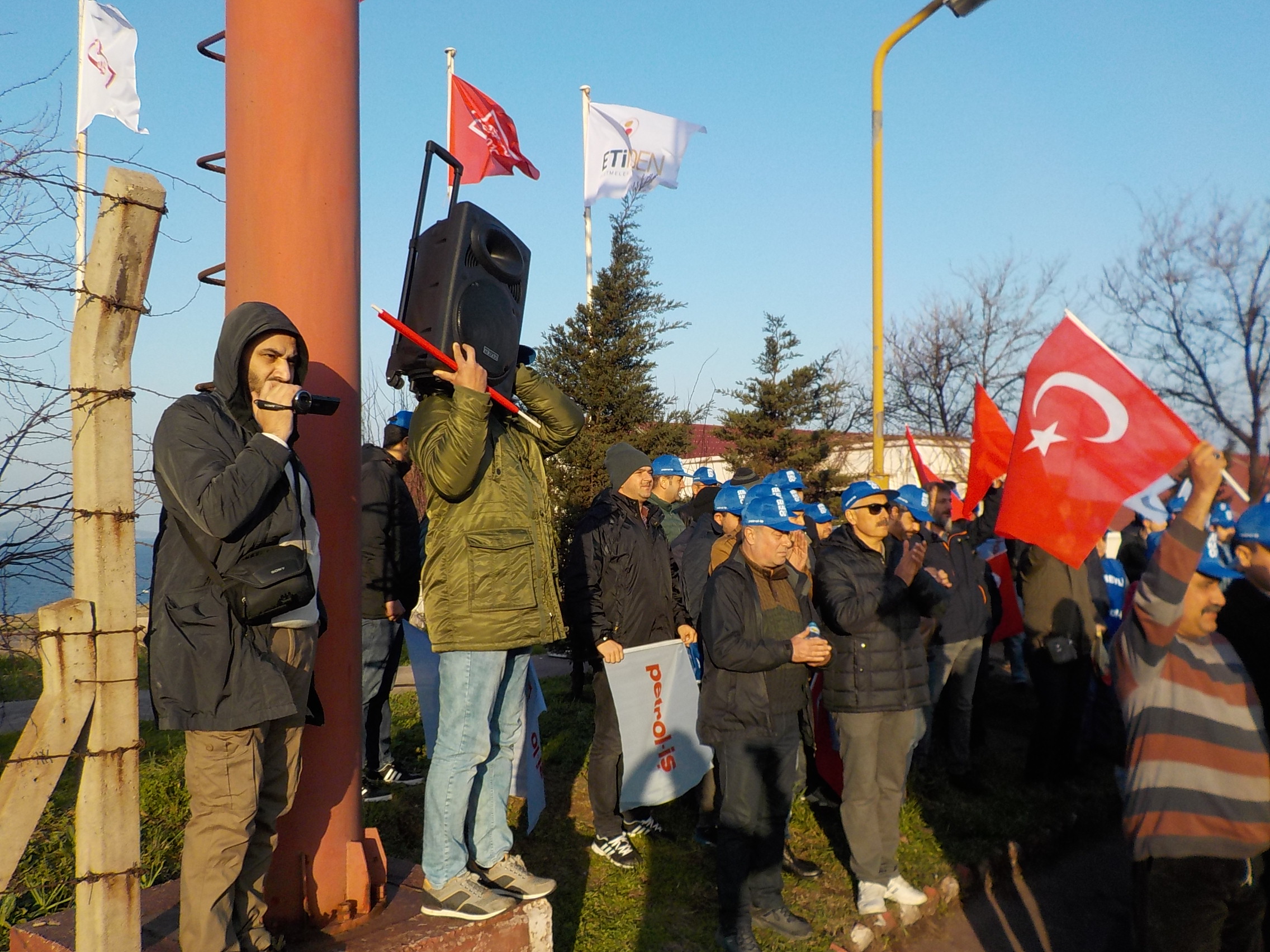 Fabrika önünde üye işçilere seslenen Bandırma Şube Başkanımız İsmail Kayan, Sülfürik Asit Fabrikasında hammadde olarak kullanılan piritin tedariğini gerçekleştiren Cengiz Holding’in sözleşmelere aykırı davrandığını söyledi.