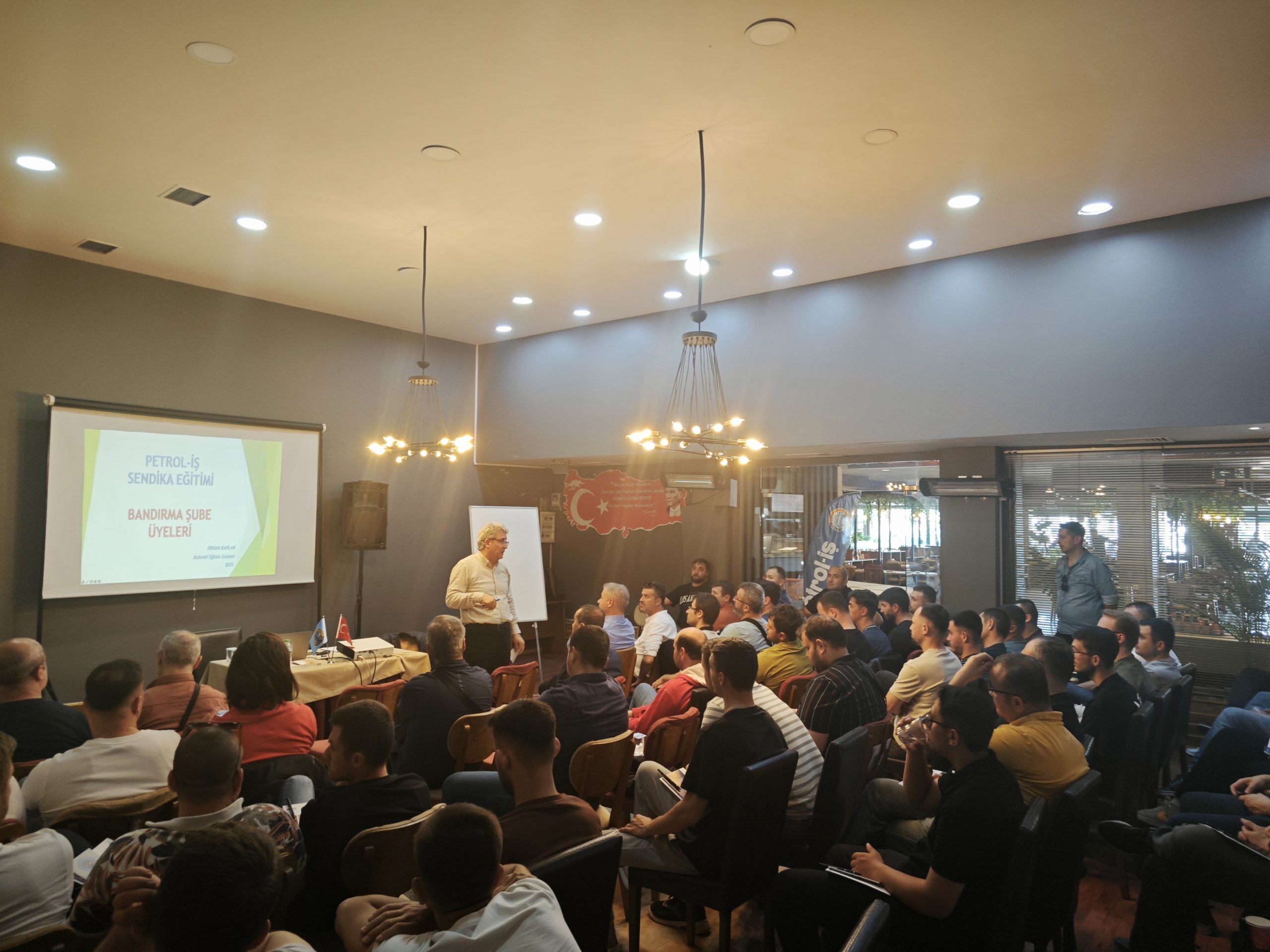 Eğitime, Petrol- İş Merkez Yönetim Kurulu adına Genel Örgütlenme ve Eğitim Sekreteri Niyazi Recepkethüda, Bandırma Şube Başkanı Tuncay Topuz, Şube Başkan Yardımcıları Ahmet Kınay ve Yalçın Karacaoğlu, Eğitim Uzmanı Erhan Kaplan, Uzman Yardımcısı İbrahim Polat, işyeri temsilcilerimiz ve çok sayıda üyemiz katıldı.